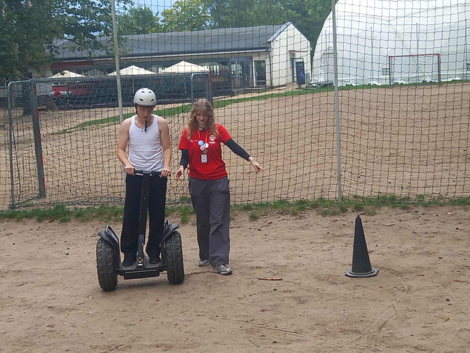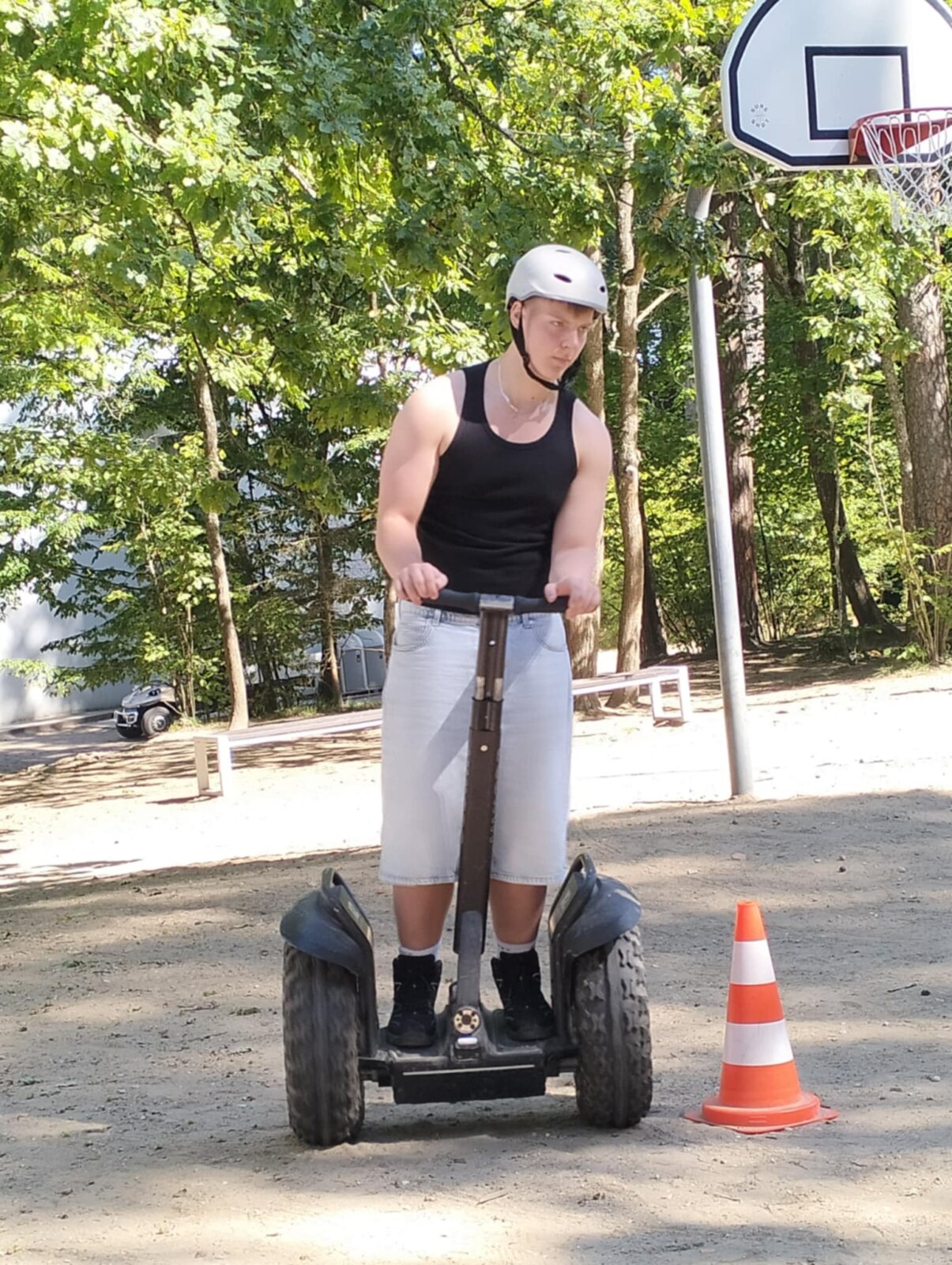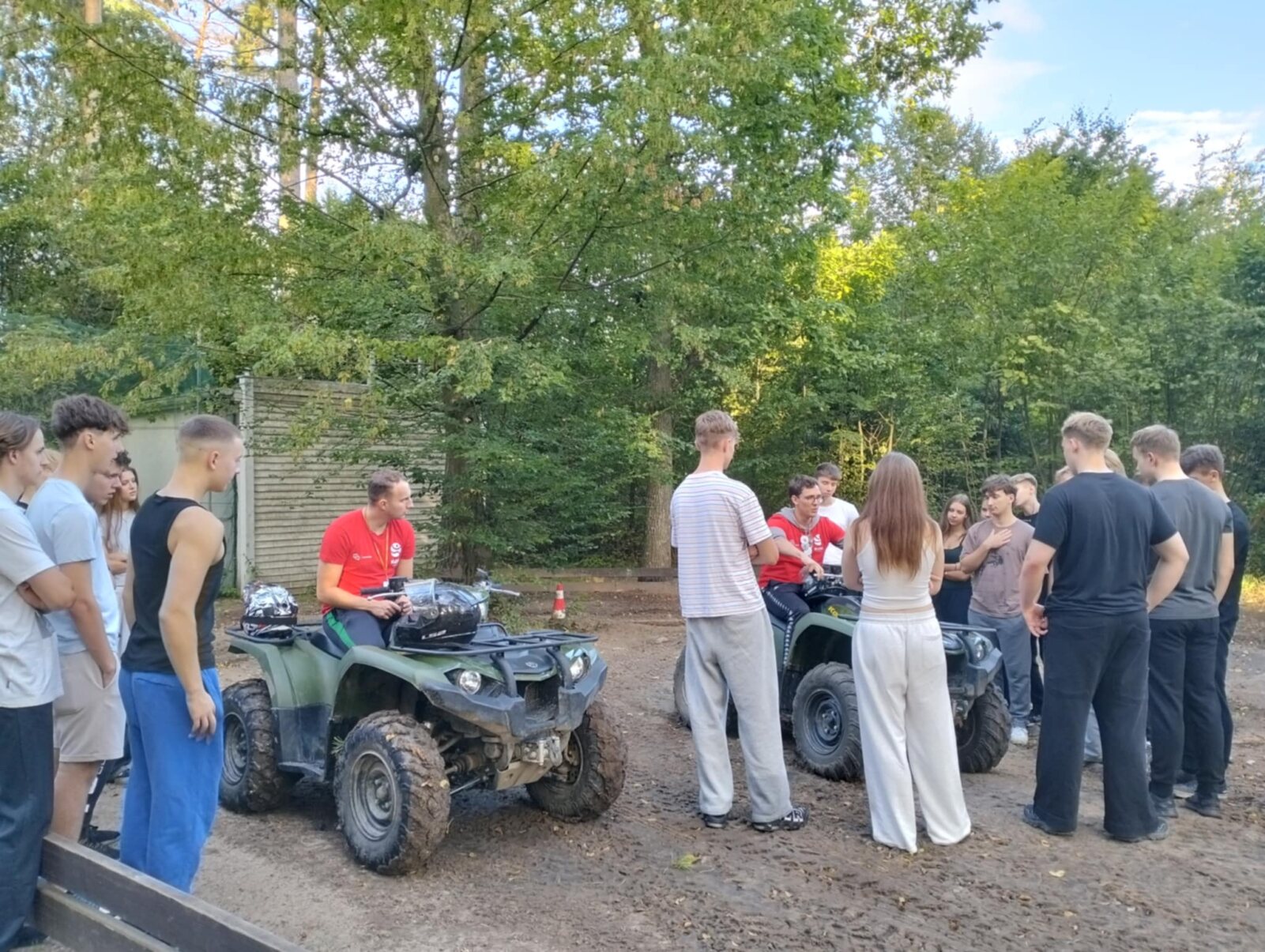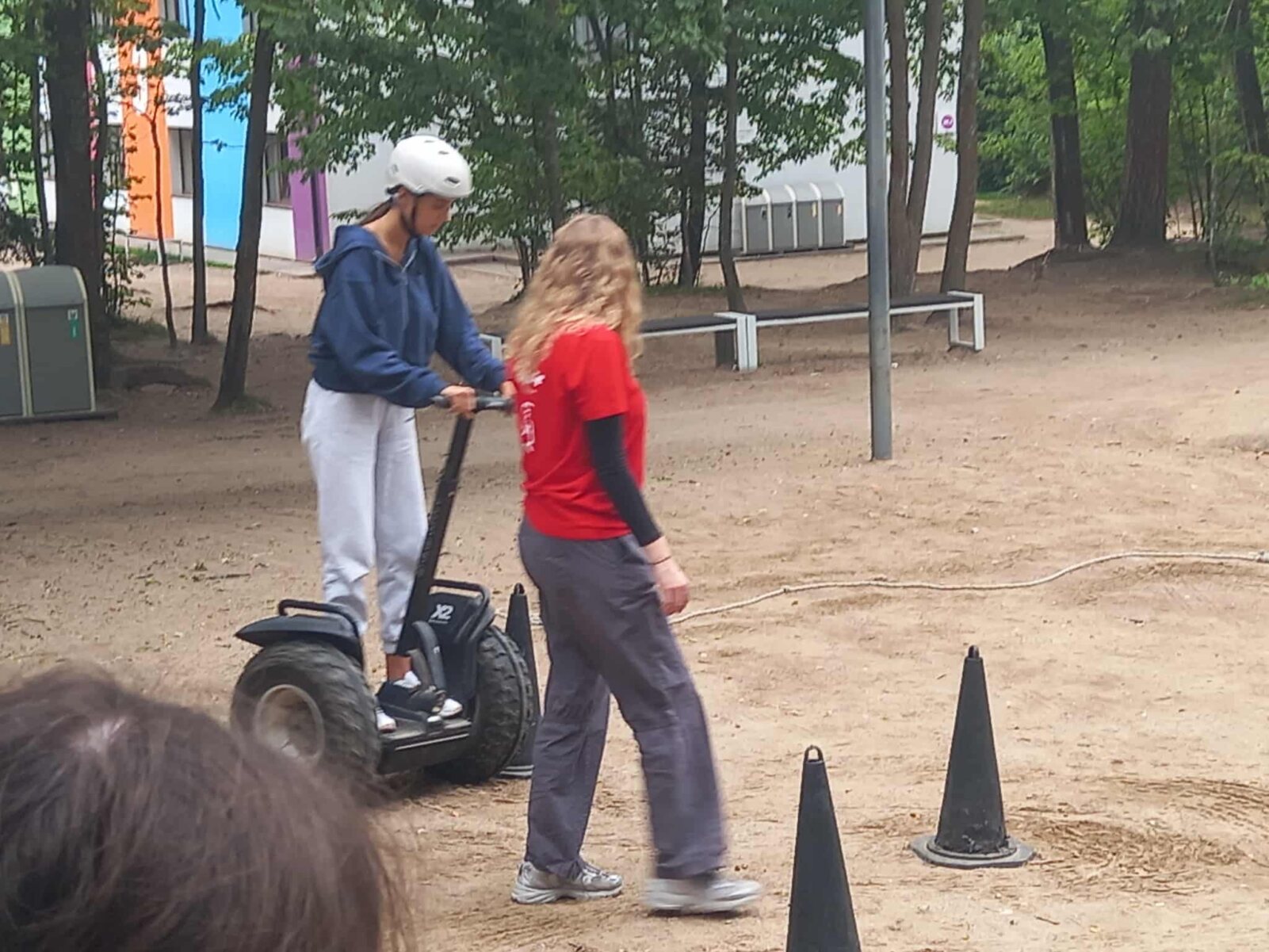 Uczestnicy wyjazdu zostali podzieleni na 2 stałe grupy, które pod opieką instruktorów oraz animatorów korzystały naprzemiennie z niektórych atrakcji widniejących w ofercie ośrodka. Podczas gdy jedna grupa ruszyła nad pobliskie jezioro aby wytężać muskuły w czasie rejsu na pokładzie smoczej łodzi (a utrzymanie równowagi podczas wiosłowania w dużym ścisku nie należy do rzeczy łatwych), druga ekipa doskonaliła swoje umiejętności na placu manewrowym, gdzie tor stacjonarnych przeszkód trzeba było przejechać bezbłędnie na dwukołowym pojeździe elektrycznym lepiej znanym wszystkim miłośnikom ekologicznego transportu jako segway (pomimo początkowych oporów z tytułu konieczności zachowania równowagi oraz precyzji manewrowania, okazało się, że ta konkurencja zachęciła wiele osób do kilkukrotnego pokonania toru z coraz to lepszymi skutkami bezkolizyjności). Po 1,5 godzinnym wysiłku nastąpiło 15 minut przerwy, po której segwayowcy ruszyli na zmagania na pokładzie smoczej łodzi, a grupa, która wodne przygody już zaliczyła… udała się na tor przeszkód, który musiała pokonać na tym razem czterokołowych quadach (wszystko pod opieką siedzącego z tyłu instruktora). Po zakończeniu dwóch bloków wyścigowo-manewrowych, nadszedł czas na wieczorną kolacją, po której młodzież mogła się wyszaleć na wieczornej dyskotece, na której królowały dobrze znane młodzieży współczesne hity w rytmie muzyki pop, rock czy hip-hop. Pierwszy dzień zakończyły długie rozmowy nocne w pokojach, które były regularnie kontrolowane przez pełniących czujną opiekę wychowawców trwających na posterunku do późnych godzin nocnych.