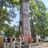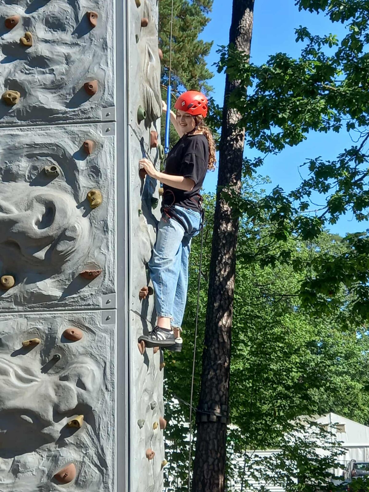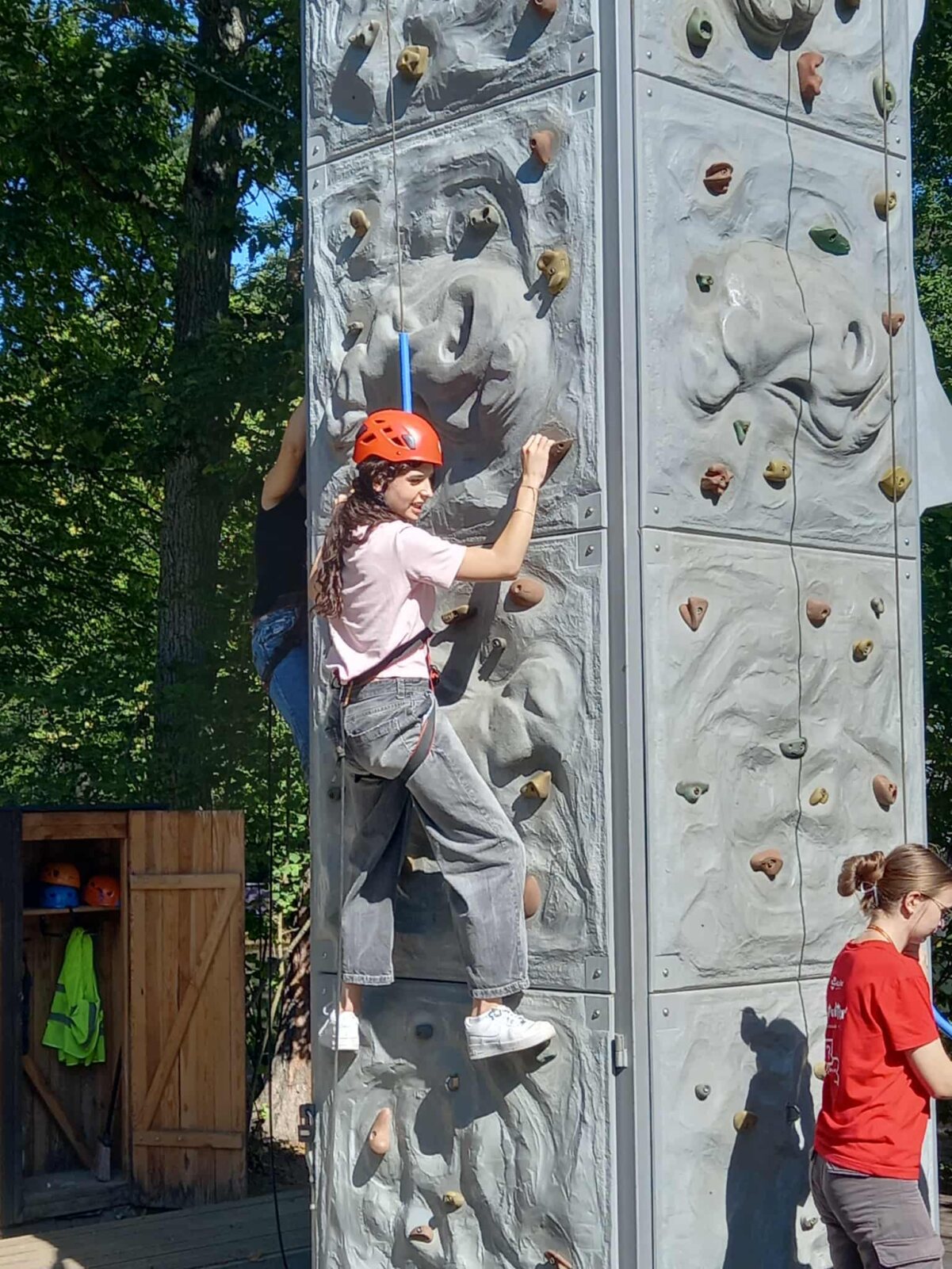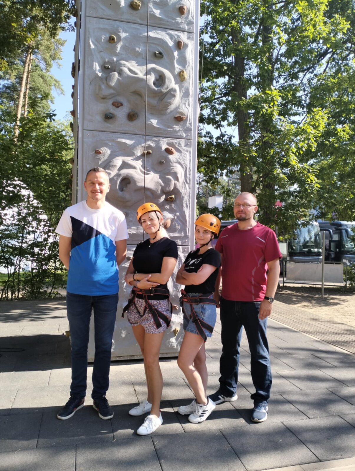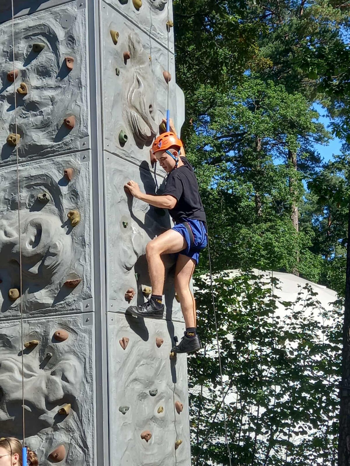 Czwartek rozpoczęliśmy śniadaniem o godz. 8:30 , aby następnie skorzystać z „powietrznych” atrakcji. Pierwsza grupa zmierzyła się z lękiem wysokości oraz wyzwaniami akrobatycznymi podczas wędrówki wśród drzew po parku linowym. Krótkie szkolenie dotyczące zasad bezpieczeństwa, założenie odpowiedniego sprzętu i już pierwsi śmiałkowie przedzierali się przez kolejne elementy toru przeszkód, który sprawdzał ich gibkość, szybkość, zręczność, ale nader wszystko umiejętności takie jak opanowanie oraz analityczne myślenie. Druga grupa osiągała, dosłownie, szczyty swych fizycznych możliwości korzystając z rywalizacji na ściance wspinaczkowej (pod okiem instruktora oraz z zabezpieczeniem nośnym). Wstępne niepowodzenia nie zniechęciły żądnych wyzwań maturzystów do przezwyciężania własnych ograniczeń, które istnieją tylko w naszej głowie. Wsparcie koleżeńskie wyrażane czy to przez pomocne porady, czy też przez element ambicjonalnej rywalizacji, skutecznie zmotywowały kilka osób do ukończenia tej wymagającej fizycznej wytrzymałości, jak i psychicznej wytrwałości, czynności wspinaczkowej.