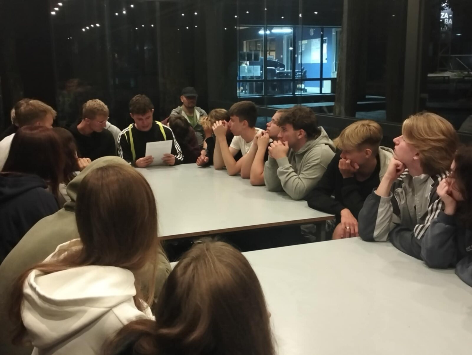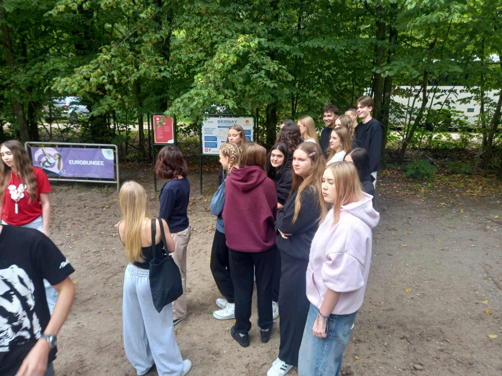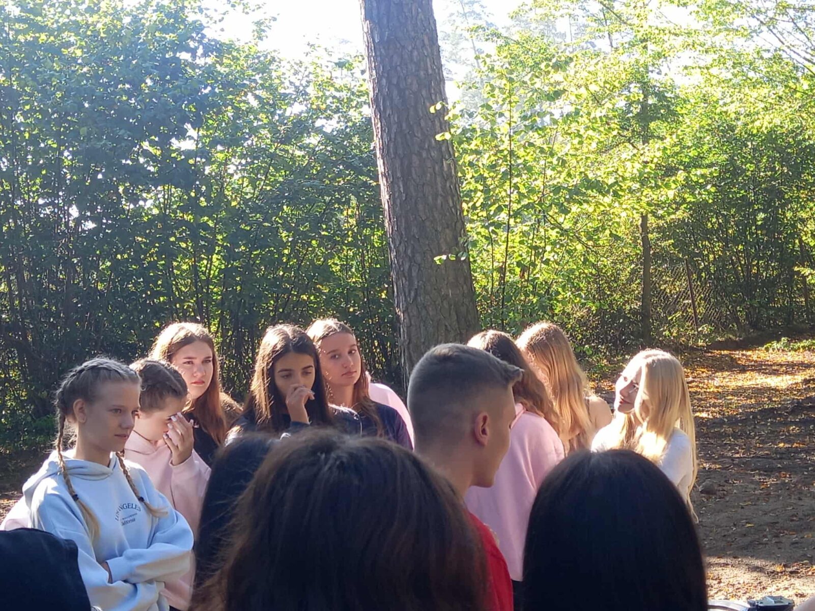 Wyjazd rozpoczął się w środę od zbiórki pod szkołą o godz. 8:30. Po zapakowaniu walizek, sprawdzeniu listy obecności oraz zajęciu miejsc w autokarze, równo o godz. 9:00 ruszyliśmy w stronę Mazur, które miały zagwarantować nam ostatni relaksujący oddech lata w pięknych, słonecznych okolicznościach pogodowych. Kilka godzin drogi z dwoma postojami upłynęło w mgnieniu oka, choć niektórzy musieli odespać nieprzespaną z nadmiaru emocji noc, i krótko po godz. 13:30 dotarliśmy do celu podróży – kompleksu rekreacyjnego skrytego z dala od zakłóceń transportowych oraz komunikacji, w głębi sosnowego lasu oraz tuż obok urokliwego jeziora Łęsk. Po zakwaterowaniu, udaliśmy się wspólnie na obiad na stołówce, aby przygotować się na czekające na nas wyzwania.
