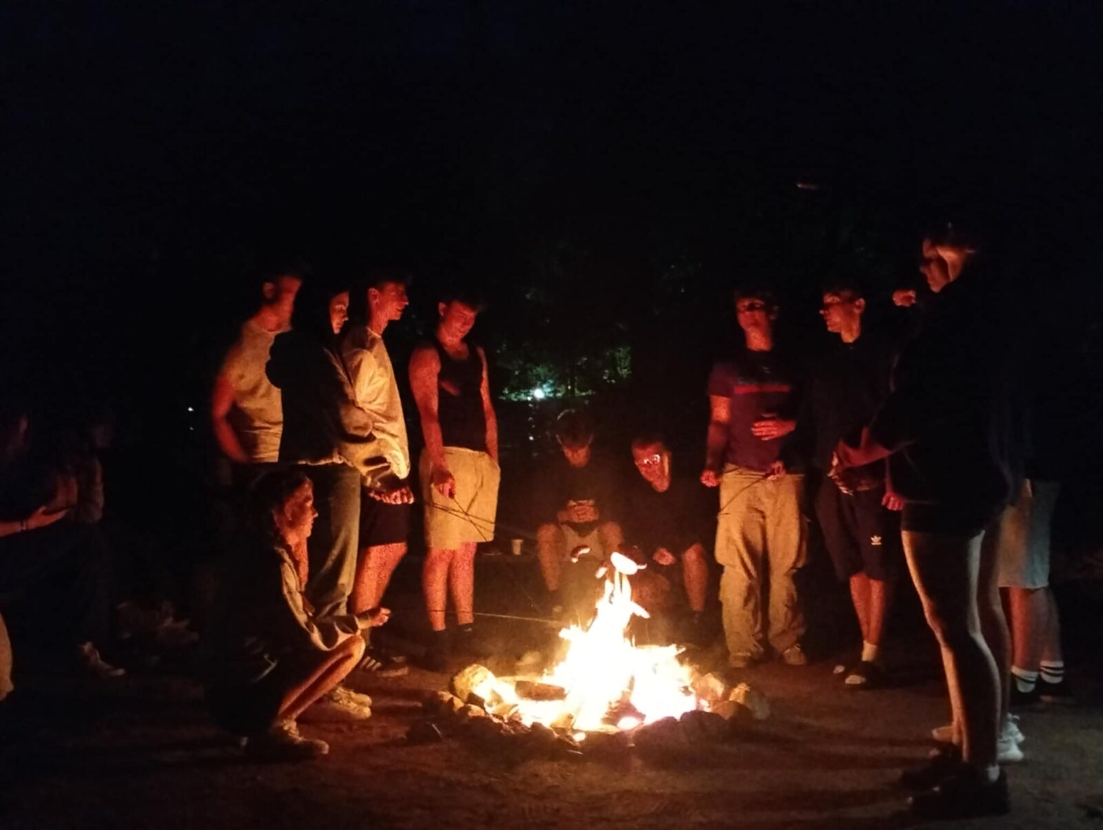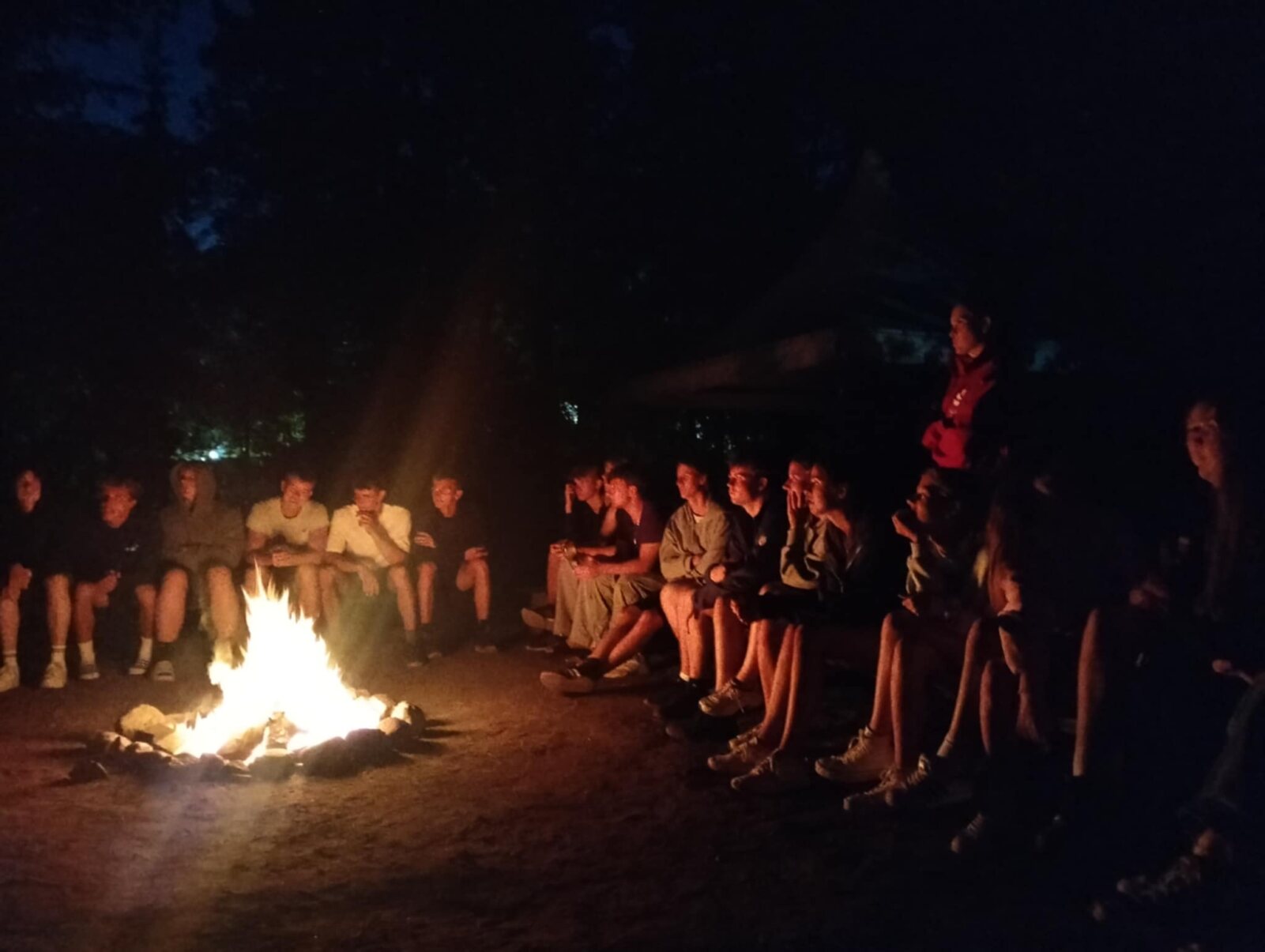Sesję czasu wolnego wykorzystaliśmy na odpoczynek w pokojach, grze w siatkówkę, czy też wizytę przy pomoście nad jeziorem aby raz jeszcze skorzystać z unikatowych okoliczności krajobrazowych oraz wodnej ochłody. Po wieczornej kolacji, udaliśmy się na ognisko z animatorem, gdzie w rytmie przyśpiewek tematycznych oraz zagadkowych łamigłówek oddawaliśmy się swobodnym rozmowom oraz degustacji kiełbasek wpatrując się w blask żywo trzaskającego ognia. Na sam koniec tego intensywnego dnia, tuż przed godz. 22, wyruszyliśmy na grę terenową świetliki. Długi leśny spacer przy bezchmurnym niebie, blasku gwiazd oraz niemal pełni księżyca przeplatały przystanki na których zbieraliśmy drogowskazy prowadzące na sam koniec do słodkiej kapsuły.