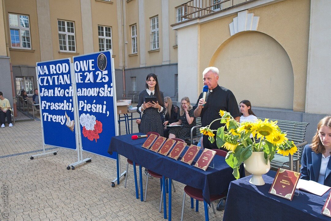 Ks. dr Piotr Dykowski, proboszcz parafii św. Jana, odczytał „Pieśń o spustoszeniu Podola”, natomiast nauczyciel języka polskiego p. Piotr Tomaszewski zaprezentował „Pieśń III (Nie wierz fortunnie co siedzisz wysoko…)”. Szczególnym momentem uroczystości była recytacja absolwentki szkoły Katarzyny Matusiak, która z wrażliwością i skupieniem przedstawiła utwór „Nie porzucaj nadzieje”. Całość zakończyły podziękowania oraz refleksja nad ponadczasową mądrością i pięknem poezji z Czarnolasu.