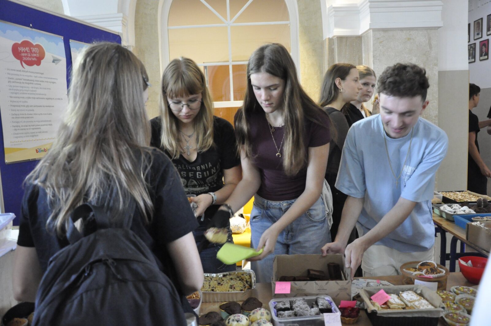 Szkolne Koło Wolontariatu „Mały Książę”, pod kierunkiem pani wicedyrektor Bożeny Sobierajskiej, zorganizowało 10 i 11 września br. kiermasz ciast dla Pani Anny Budczan. O Jej trudnej sytuacji zdrowotnej opowiedziała Wolontariuszom pani Małgorzata Jaworska – Pomirska, która także całym sercem włączyła się w akcję.