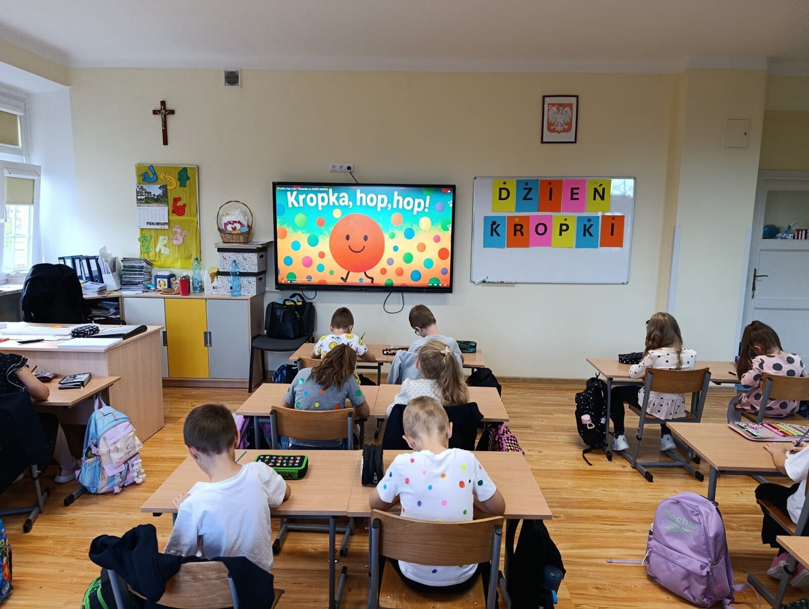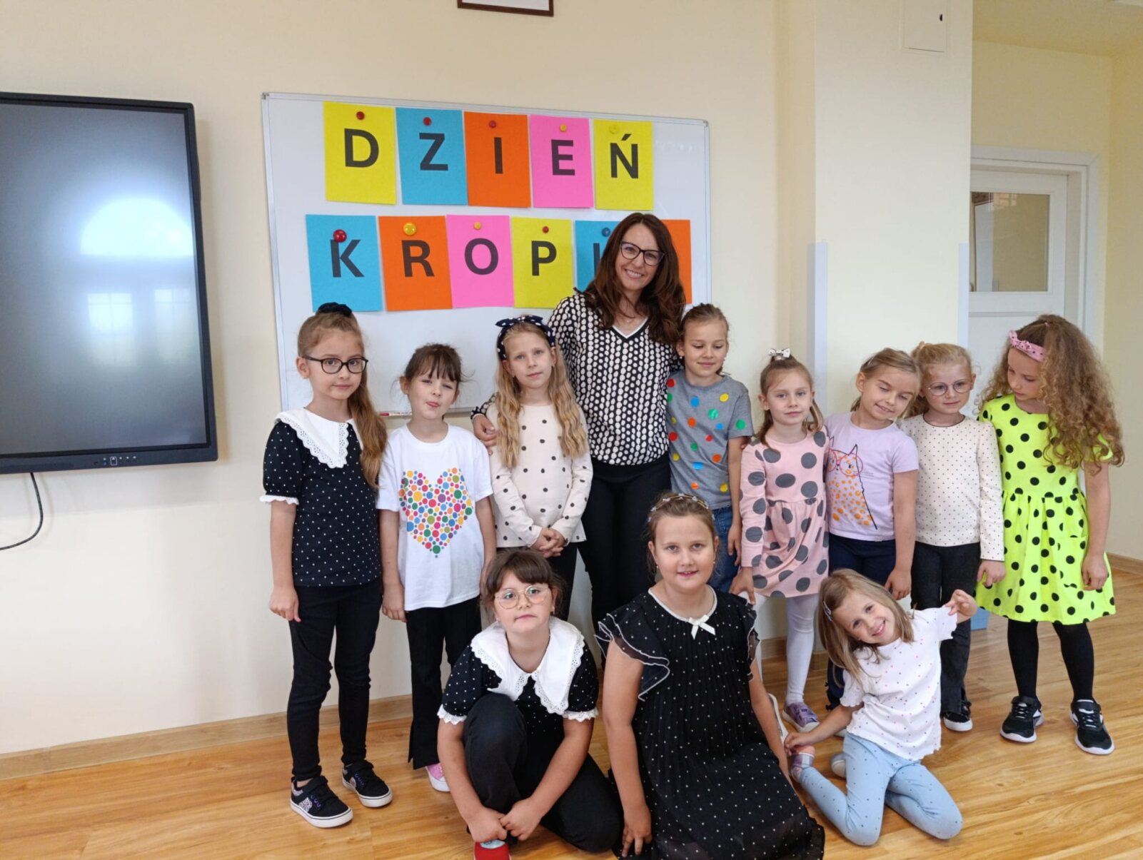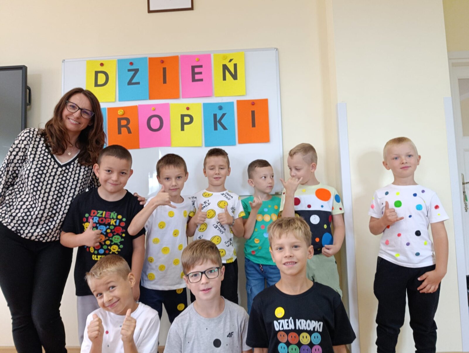 Uczniowie klasy 1a aktywnie włączyli się w świętowanie tego dnia. Ich ubrania ozdabiały różnokolorowe punkty. Tworzyli ciekawe prace plastyczne z wykorzystaniem kropek. Z odwagą prezentowali swoje umiejętności. W tym dniu było radośnie, kolorowo i twórczo. Międzynarodowy Dzień Kropki promuje kreatywność, pewność siebie i otwarcie na wyrażanie siebie poprzez sztukę. To święto ma na celu nie tylko celebrowanie sztuki, ale także promowanie pozytywnego podejścia do nauki, rozwijanie kreatywności i wiarę w siebie.