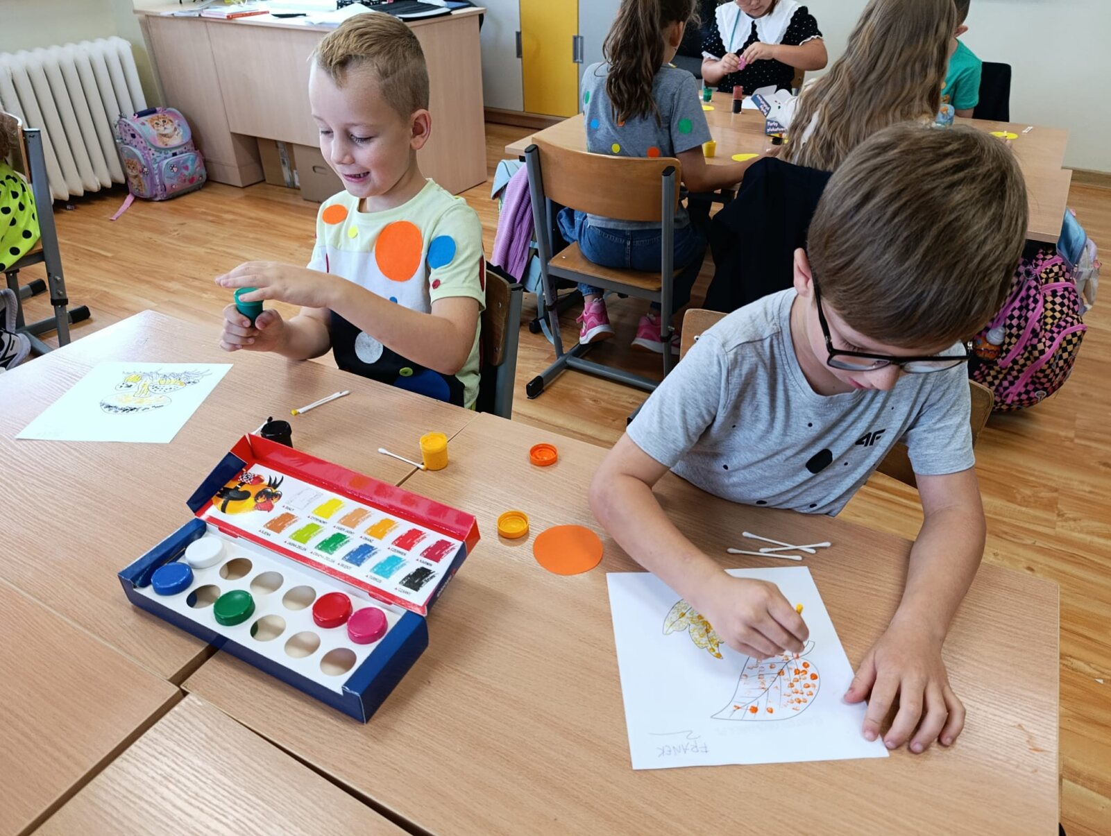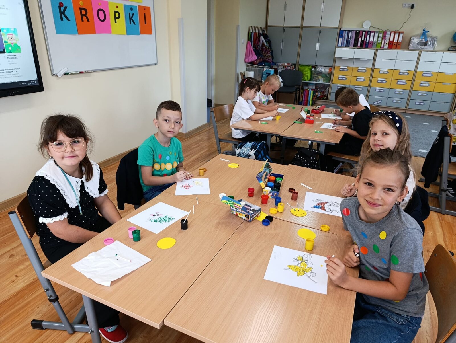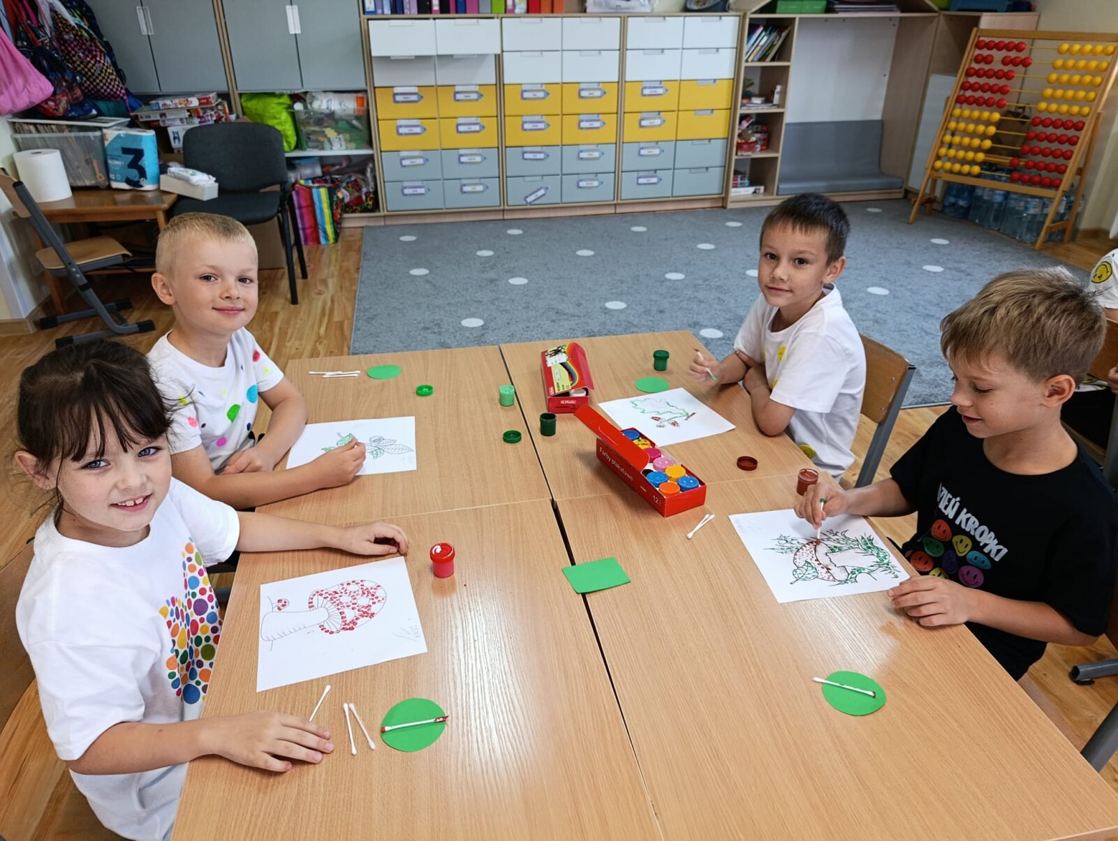 Uczniowie klasy 1a aktywnie włączyli się w świętowanie tego dnia. Ich ubrania ozdabiały różnokolorowe punkty. Tworzyli ciekawe prace plastyczne z wykorzystaniem kropek. Z odwagą prezentowali swoje umiejętności. W tym dniu było radośnie, kolorowo i twórczo. Międzynarodowy Dzień Kropki promuje kreatywność, pewność siebie i otwarcie na wyrażanie siebie poprzez sztukę. To święto ma na celu nie tylko celebrowanie sztuki, ale także promowanie pozytywnego podejścia do nauki, rozwijanie kreatywności i wiarę w siebie.
