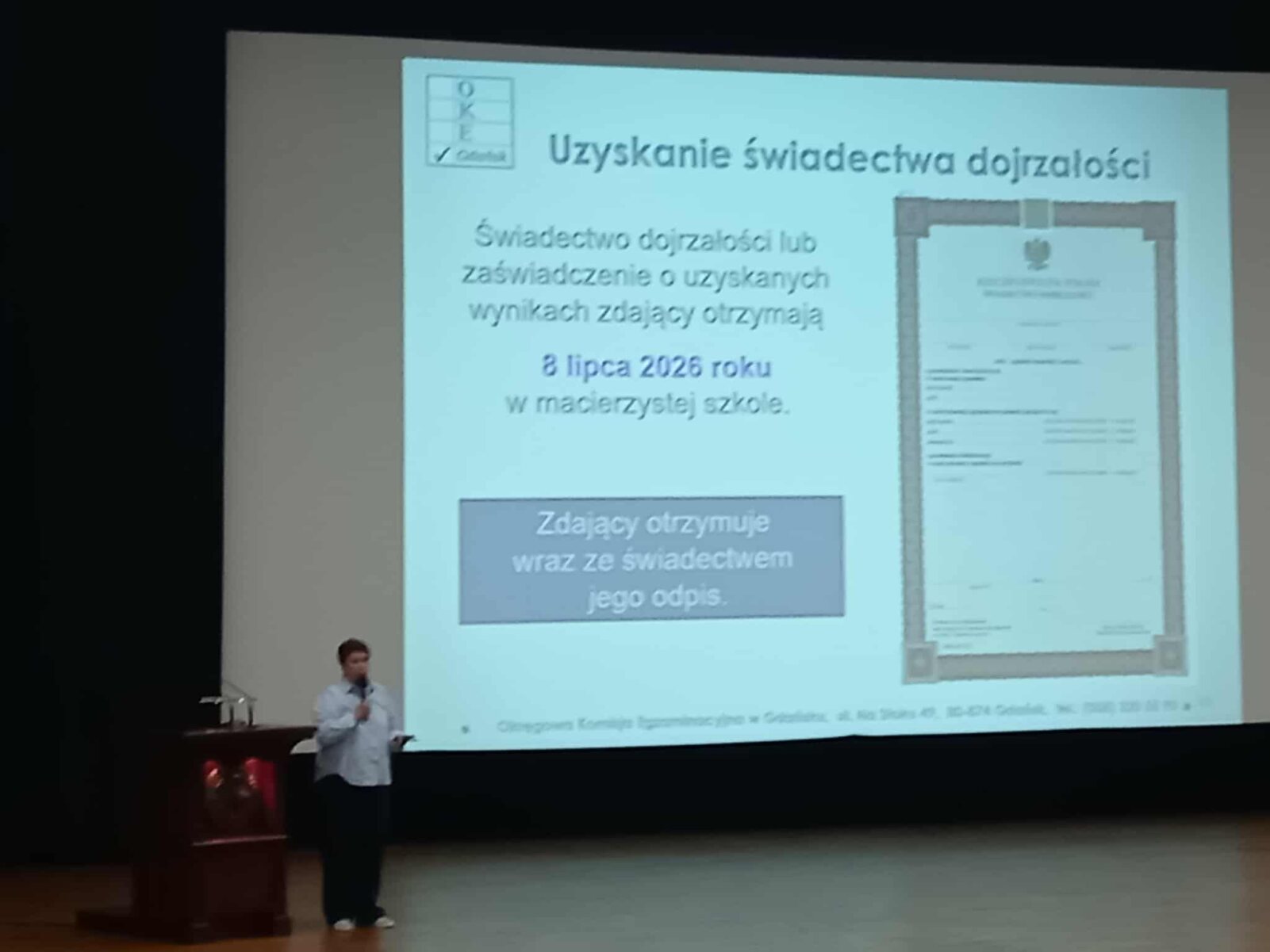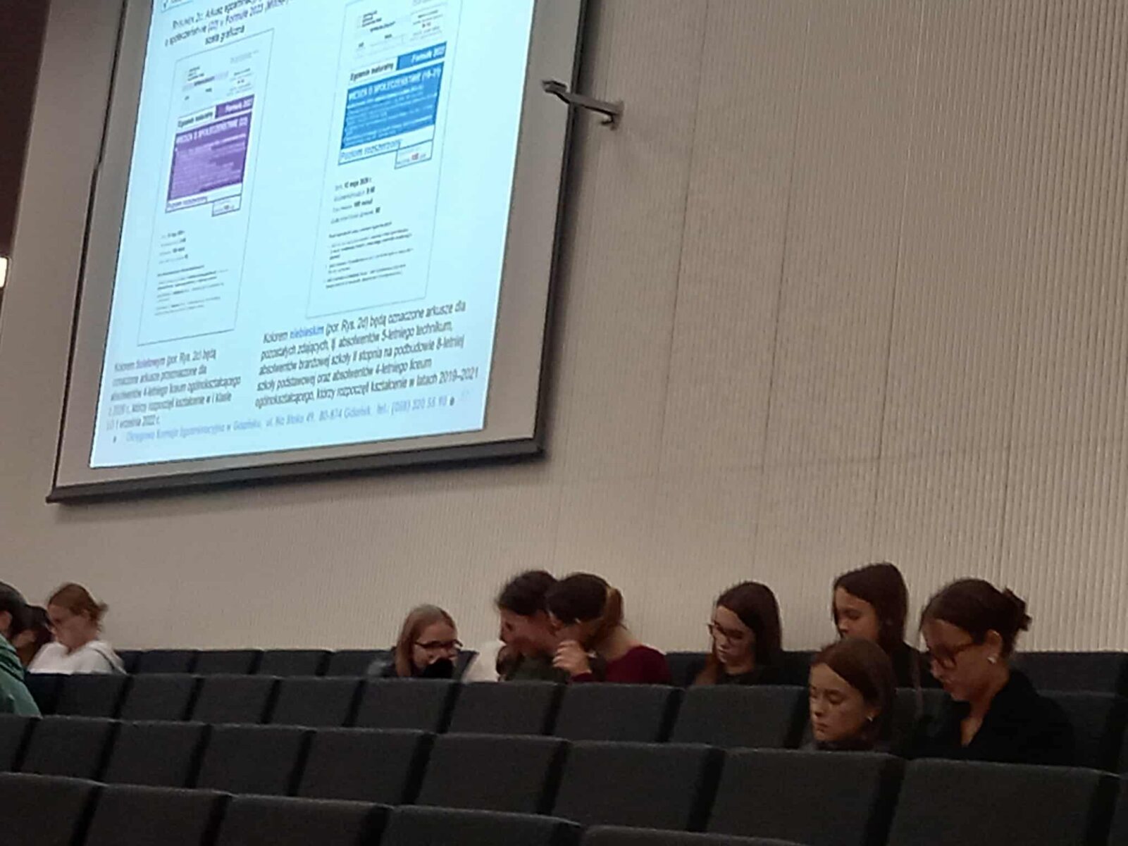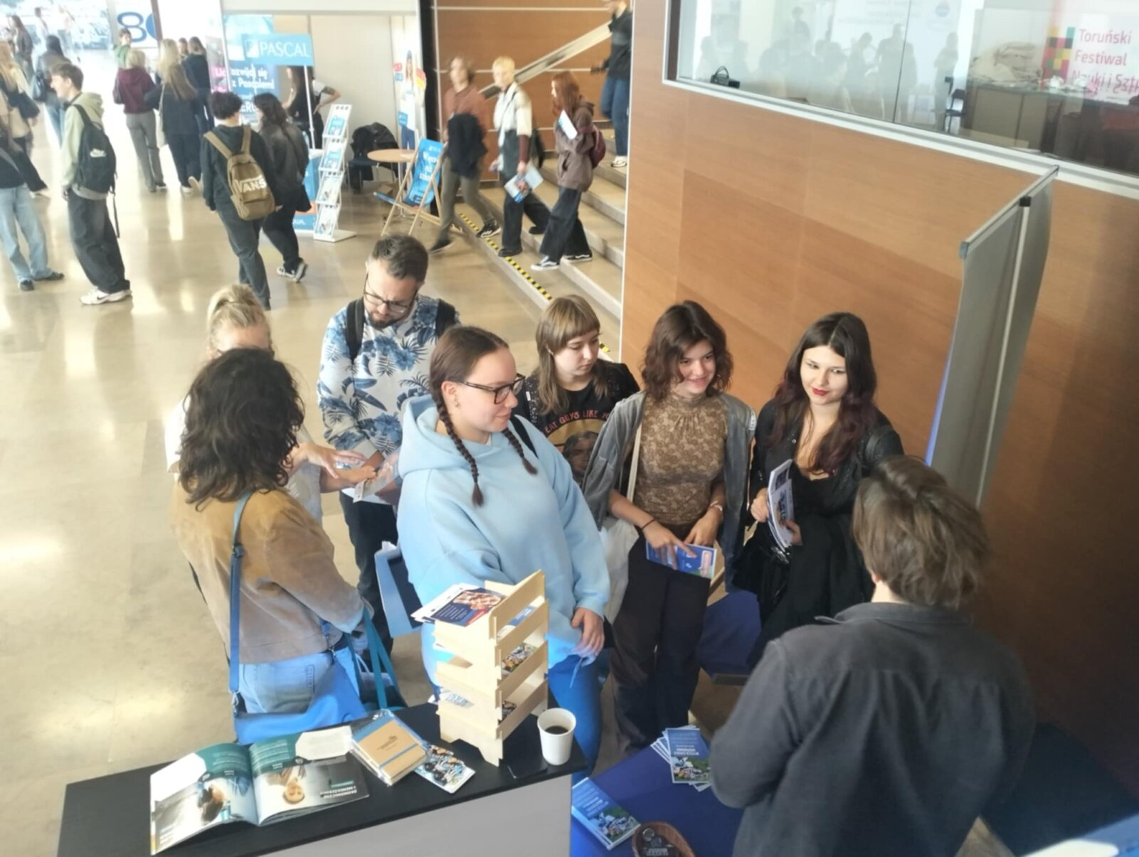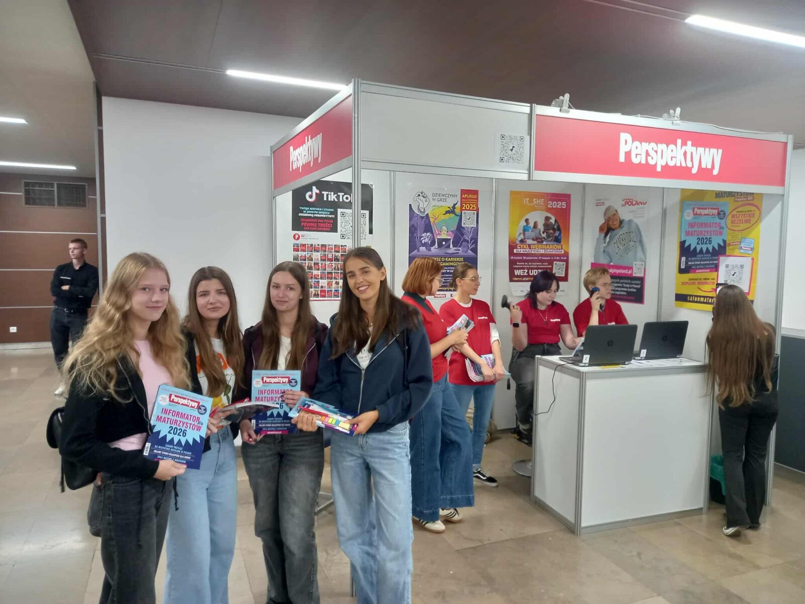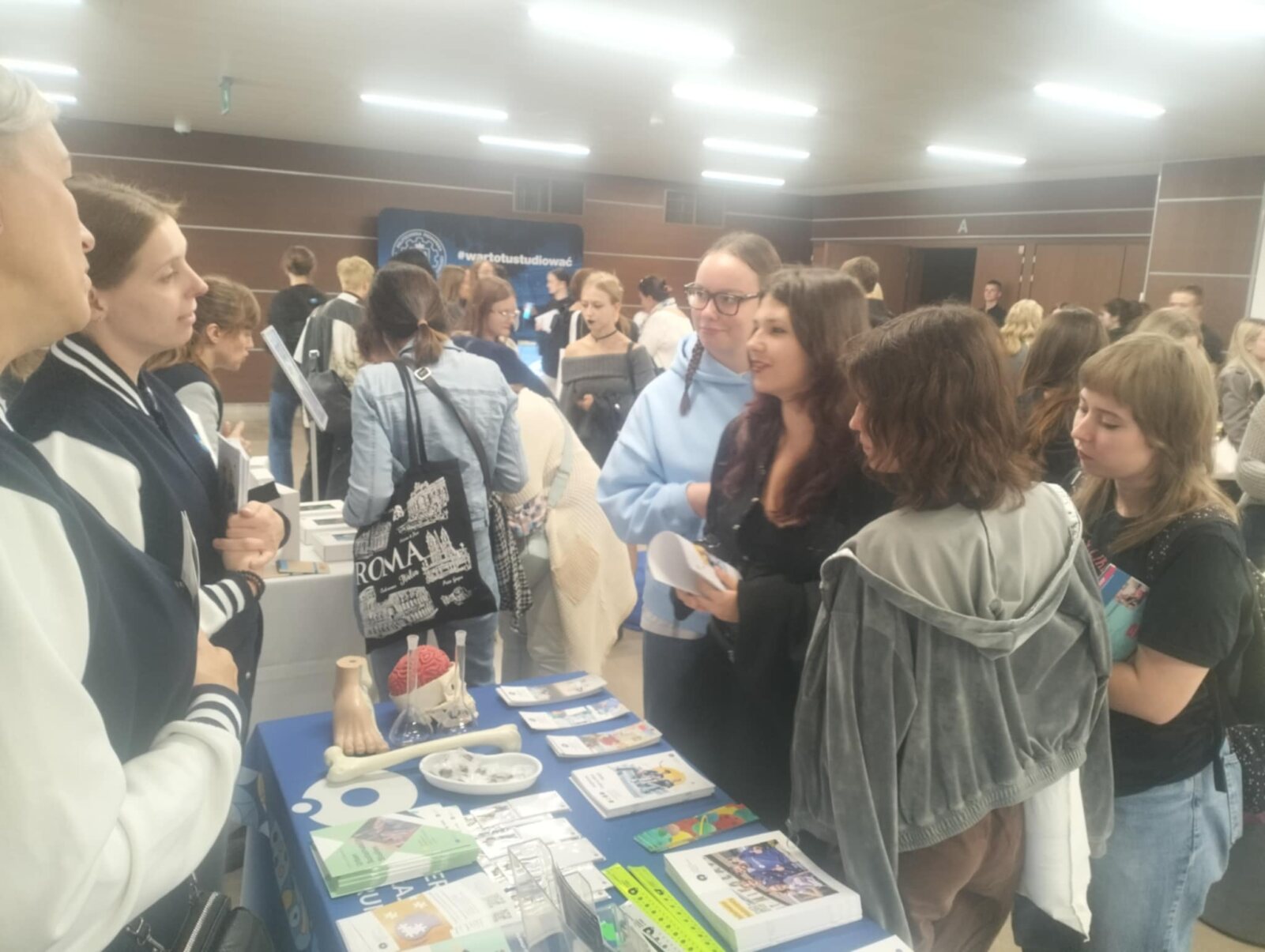 W międzyczasie w holu auli uniwersyteckiej na przyszłych studentów czekały stoiska uczelni regionalnych oraz krajowych prezentujące ofertę uniwersytetów, politechnik, innych szkół wyższych oraz szkół policealnych. Cennym nabytkiem był pokaźnych rozmiarów Informator dla Maturzystów 2026, przygotowany przez wydawnictwo Perspektywy, zawierający informacje dotyczące zasad przyjęć na wszystkie uczelnie wyższe w Polsce, ranking najpopularniejszych kierunków studiów, dekalog maturzysty, cenne porady w zakresie doradztwa zawodowego, kwestii logistycznych związanych ze studiowaniem poza domem lub poza granicami rodzimego kraju, a także cenne porady tych, którzy maturę mają już za sobą. Nie zabrakło stoiska wydawnictw oferujących pozycje księgarskie ułatwiające przekrojowe powtórki przedmiotowe oraz przykładowe arkusze maturalne zgodne z tegorocznymi wymogami egzaminacyjnymi dostępne w atrakcyjnych cenach.