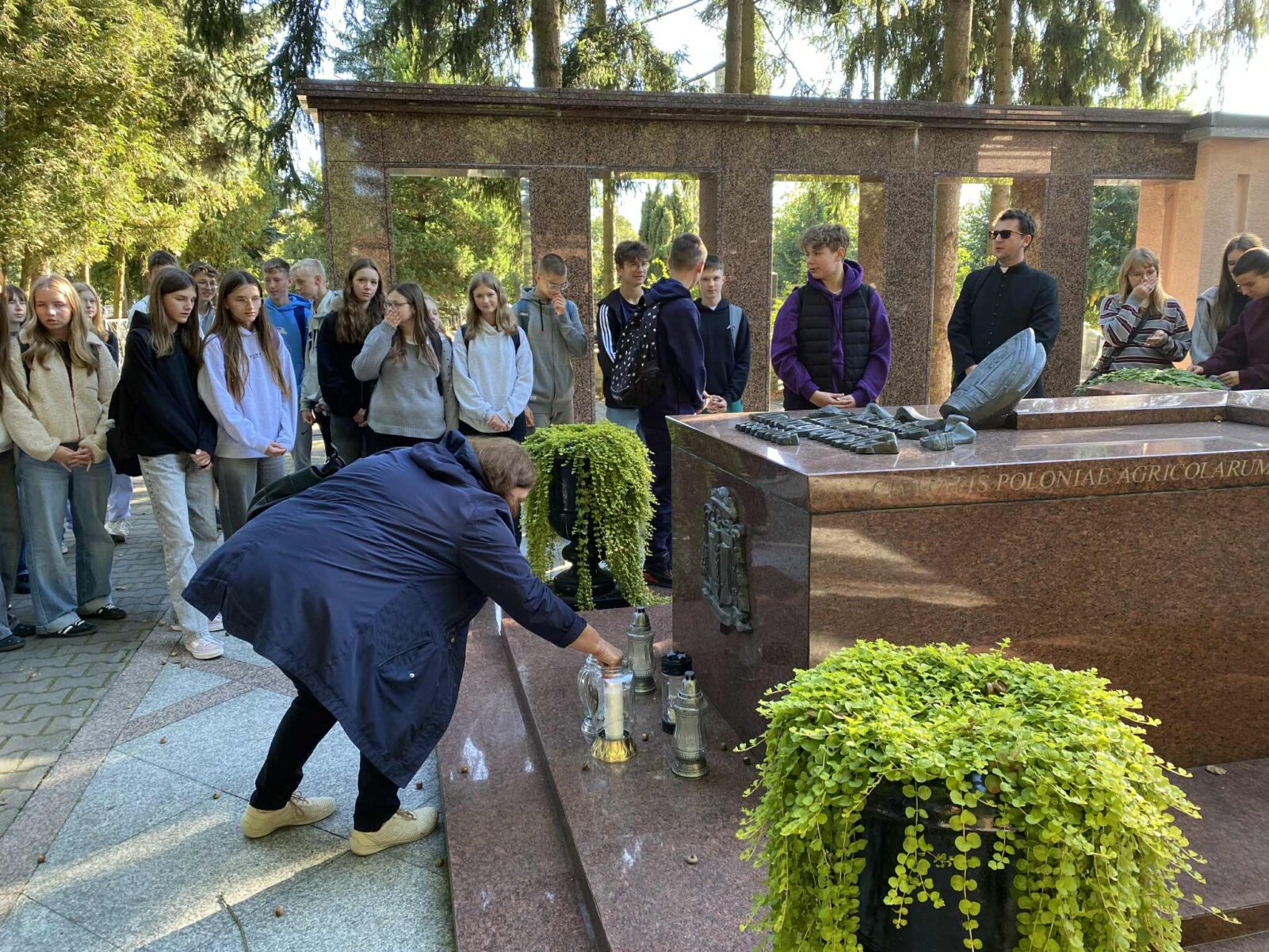 Pielgrzymkę rozpoczęliśmy przy grobie ks. bpa Romana Andrzejewskiego — wielkiego przyjaciela naszej szkoły oraz katolickiego szkolnictwa, którego troska o wychowanie młodzieży w duchu wiary i patriotyzmu pozostaje dla nas ważnym wzorem. Następnie zwiedziliśmy teren sanktuarium, by kolejno potem udać się do bazyliki i wysłuchać konferencji ks. Dominika Stępina oraz świadectwa Dominiki Staniewskiej.