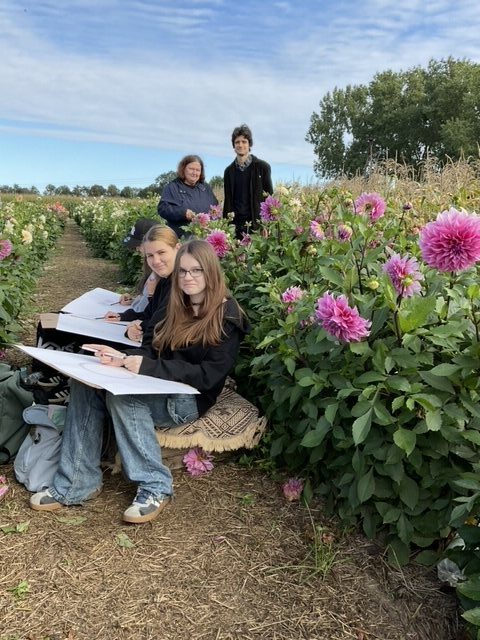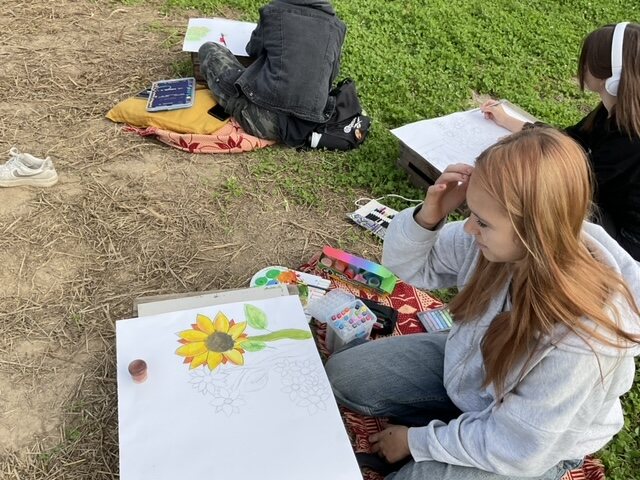 Plener, którego organizatorką była pani wicedyrektor Bożena Sobierajska, był nie tylko okazją do rozwijania umiejętności artystycznych, ale również do przypomnienia sylwetki Henryka Sokołowskiego – malarza, pedagoga, przedwojennego nauczyciela rysunku i plastyki w Gimnazjum Długosza. Był on człowiekiem niezwykle wrażliwym na piękno natury, którą umiejętnie potrafił przenosić na płótno. Jego twórczość wyróżniała się subtelnością i głębokim realizmem, a działalność pedagogiczna pozostawiła trwały ślad w sercach wielu długoszaków. Atmosfera wydarzenia sprzyjała artystycznym inspiracjom. Rozległe pola kwiatów – pełne barwnych dalii, kosmosów i majestatycznych słoneczników – mieniły się w promieniach jesiennego słońca, tworząc naturalną galerię, jakiej nie sposób odtworzyć w murach szkoły. Brzęczące wśród płatków owady, lekki szum wiatru i ciepła, słoneczna pogoda dodawały uroku całemu spotkaniu.