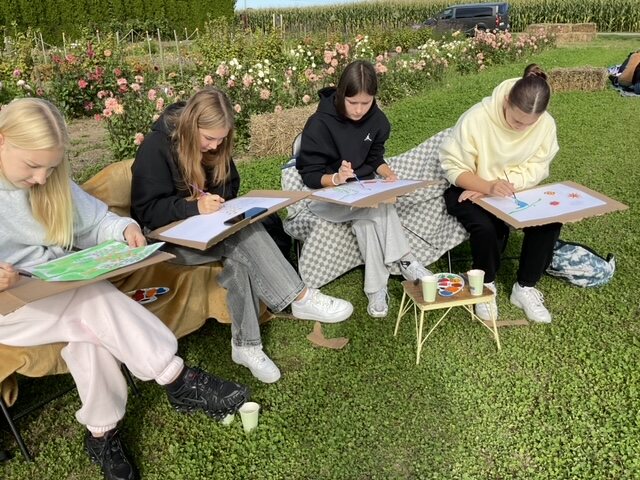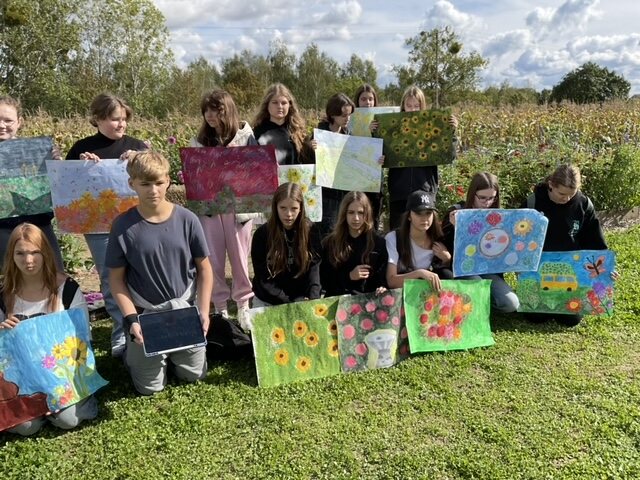 We wtorek 23 września br. na farmie kwiatów ciętych Forest Studio u pani Agnieszki Ligowskiej w Krojczynie odbył się II Plener Malarski im. Henryka Sokołowskiego pt. „Kolory pamięci”. W wydarzeniu wzięło udział 37 uczniów, którzy pod opieką nauczycieli mogli oddać się twórczej pracy w otoczeniu niezwykłego piękna przyrody.