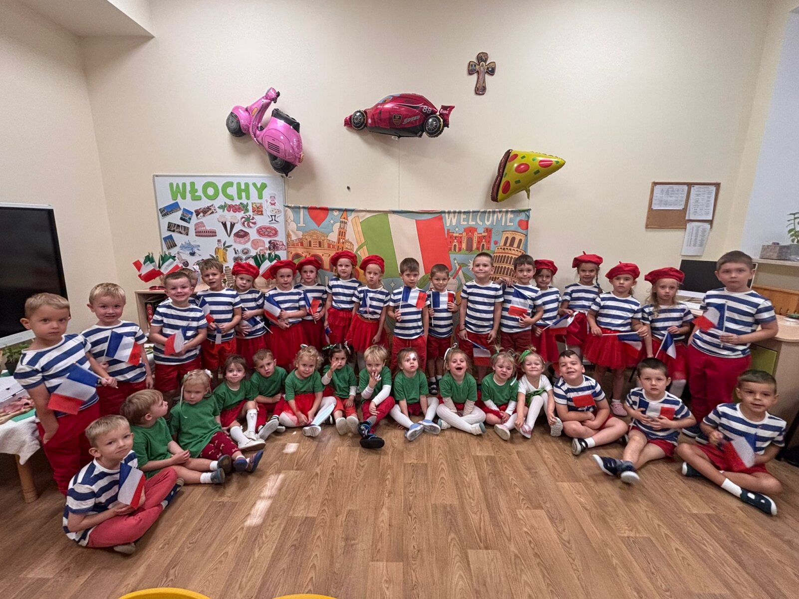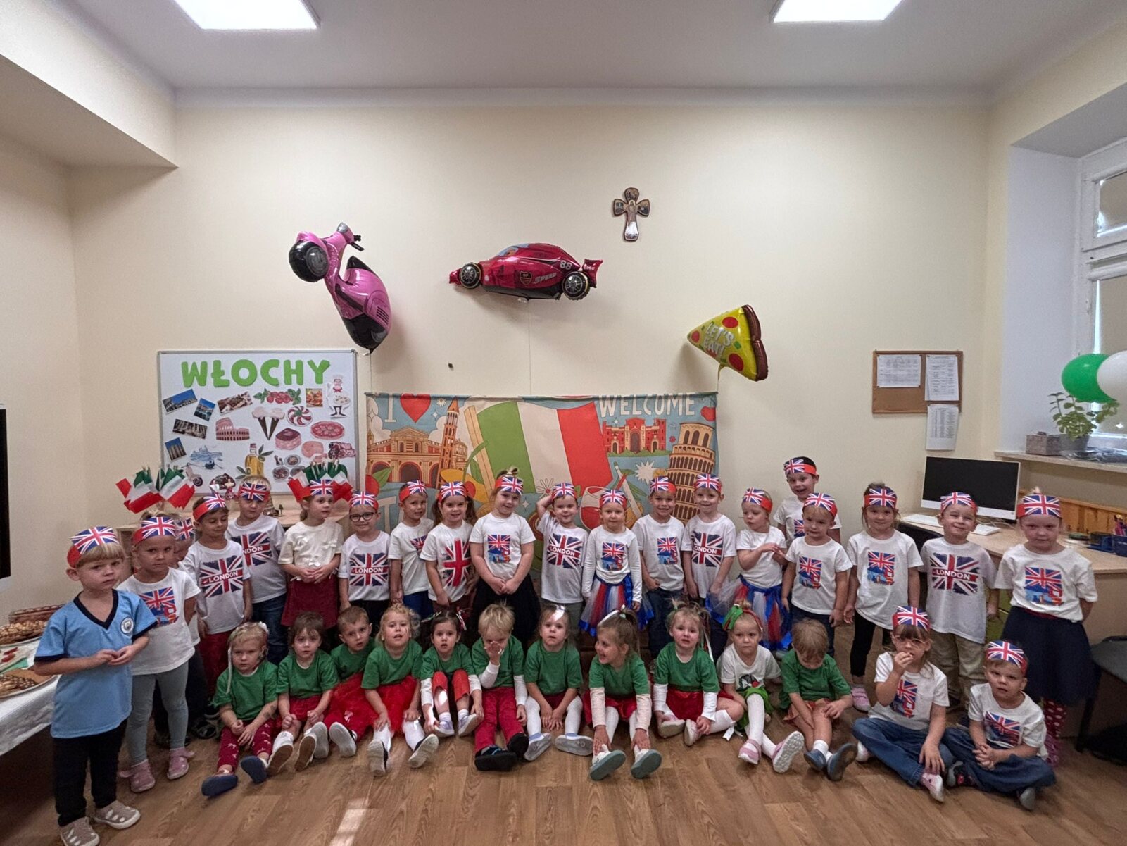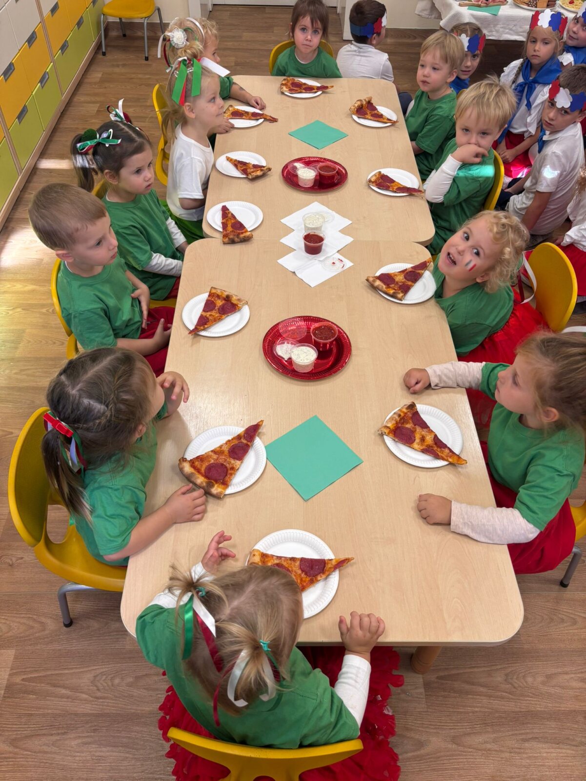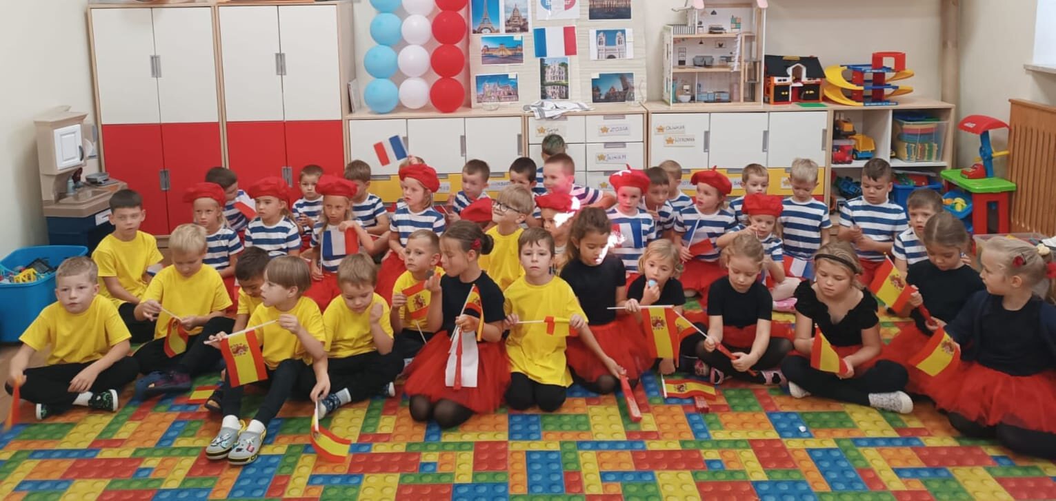 Dziś w naszym przedszkolu świętowaliśmy Dzień Języków Obcych. Każda grupa przygotowała wyjątkowe wystąpienie: trzylatki przeniosły nas do słonecznych Włoch, czterolatki zaprezentowały Wielką Brytanię, pięciolatki przybliżyły Francję, sześciolatki „A” przedstawiły Czechy, a sześciolatki „B” Hiszpanię. Nie zabrakło regionalnych przekąsek, ciekawostek i dużej dawki wiedzy o kulturze oraz tradycjach różnych krajów. Na zakończenie każda z grup zaśpiewała znaną piosenkę „Panie Janie” w języku państwa, które reprezentowała. Serdecznie dziękujemy Pizzerii Venezia z Włocławka za pyszną pizzę oraz Rodzicom za ogromne zaangażowanie i wsparcie w przygotowaniu tego wyjątkowego przedsięwzięcia. To był dzień pełen radości, smaków i nauki!