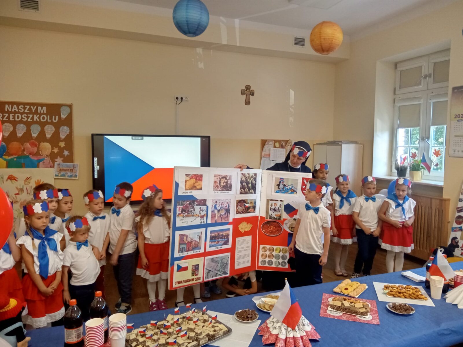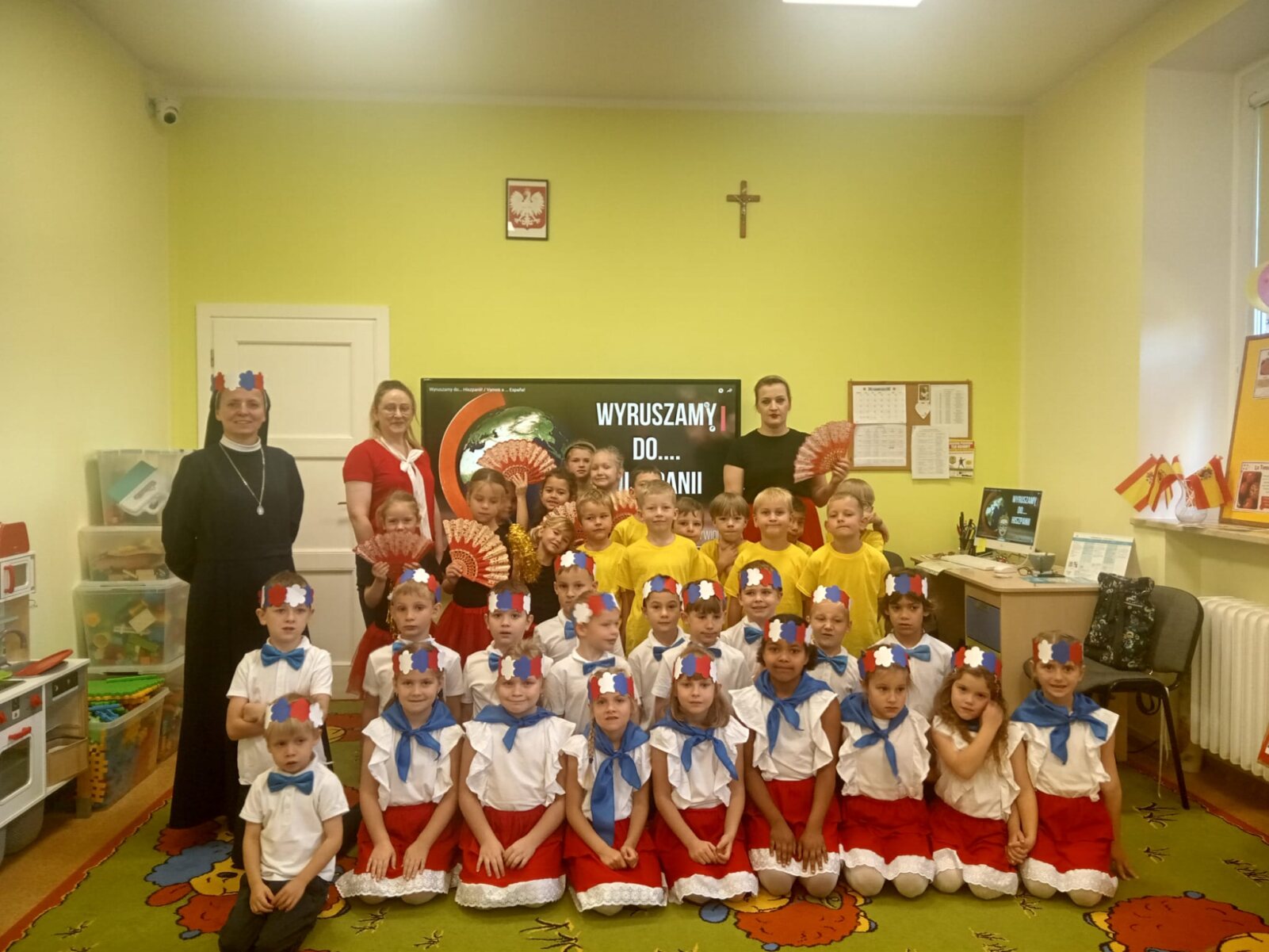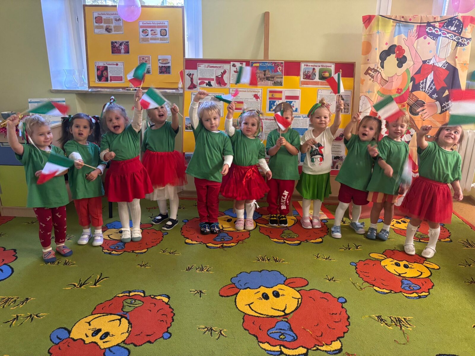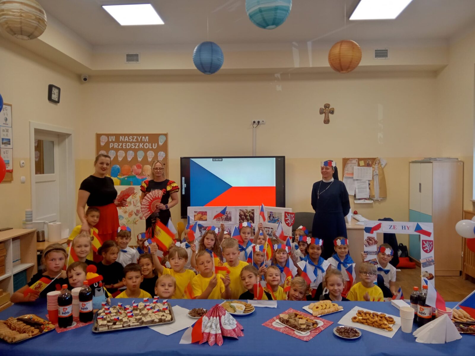 Dziś w naszym przedszkolu świętowaliśmy Dzień Języków Obcych. Każda grupa przygotowała wyjątkowe wystąpienie: trzylatki przeniosły nas do słonecznych Włoch, czterolatki zaprezentowały Wielką Brytanię, pięciolatki przybliżyły Francję, sześciolatki „A” przedstawiły Czechy, a sześciolatki „B” Hiszpanię. Nie zabrakło regionalnych przekąsek, ciekawostek i dużej dawki wiedzy o kulturze oraz tradycjach różnych krajów. Na zakończenie każda z grup zaśpiewała znaną piosenkę „Panie Janie” w języku państwa, które reprezentowała. Serdecznie dziękujemy Pizzerii Venezia z Włocławka za pyszną pizzę oraz Rodzicom za ogromne zaangażowanie i wsparcie w przygotowaniu tego wyjątkowego przedsięwzięcia. To był dzień pełen radości, smaków i nauki!