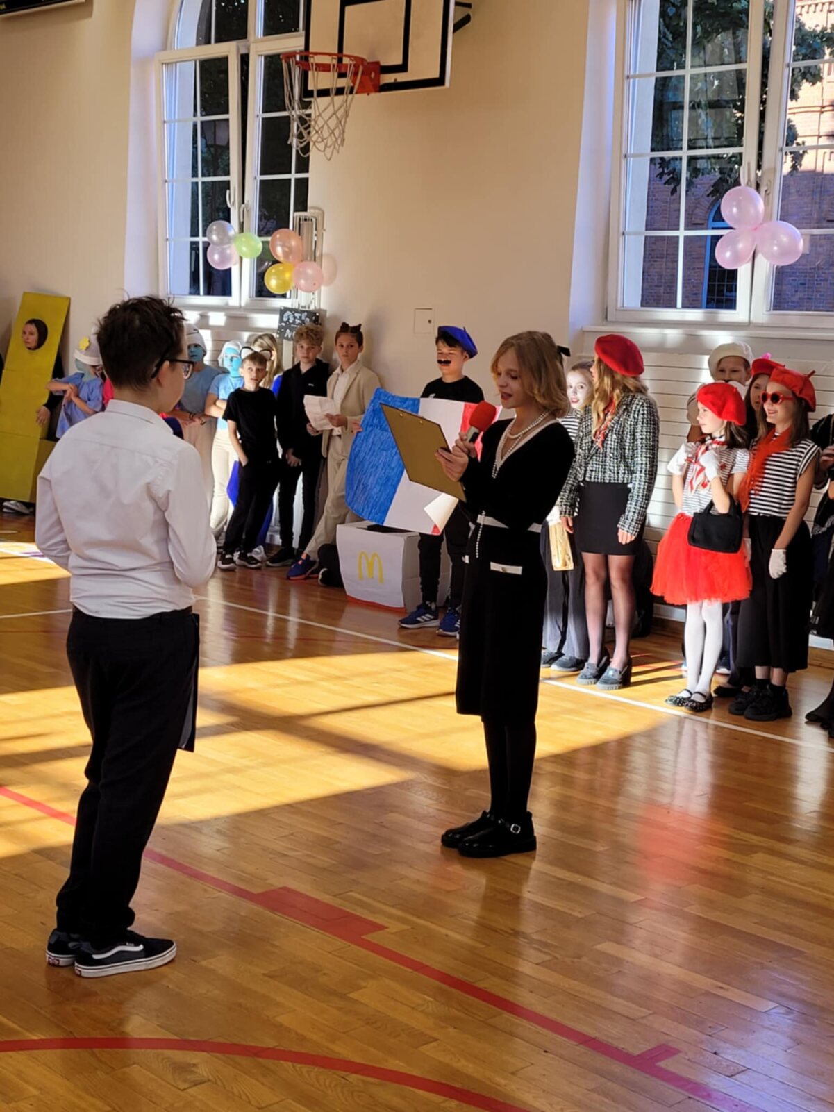 Pokaz mody – uczniowie w kreatywny sposób przedstawili kulturę, historię i ciekawostki o wylosowanym państwie. Pojawiły się tańce ludowe i prezentacje, w których padały takie zdania jak: “Je suis une baguette magique!” („Jestem magiczną bagietką!” – po francusku) oraz “¡No tengo idea, pero suena bien!” („Nie mam pojęcia, ale brzmi dobrze!” – po hiszpańsku).