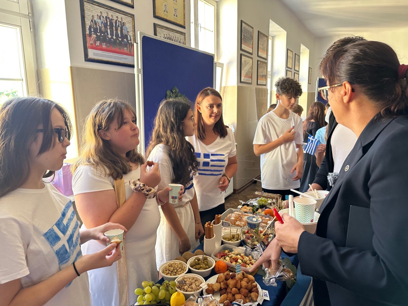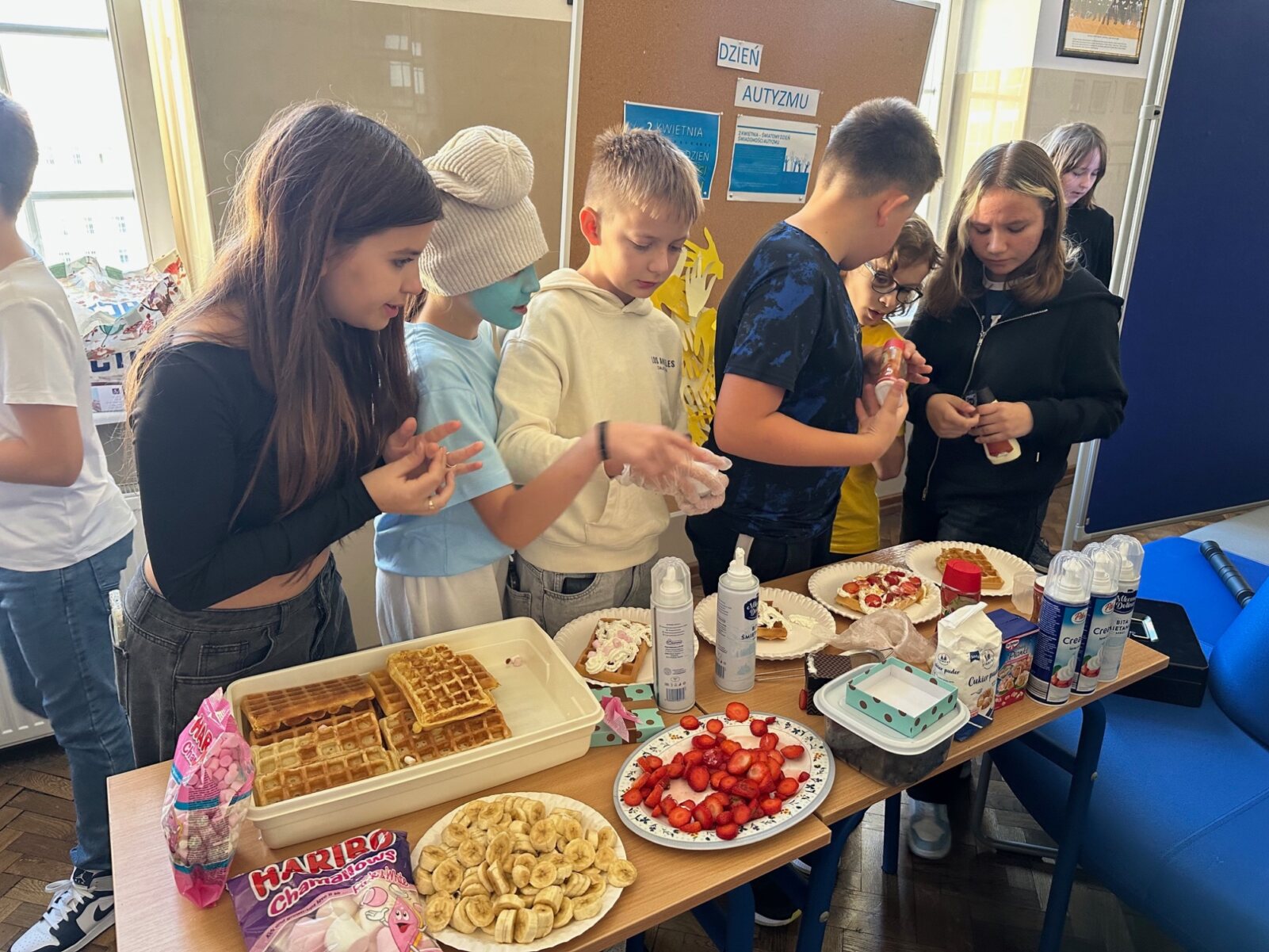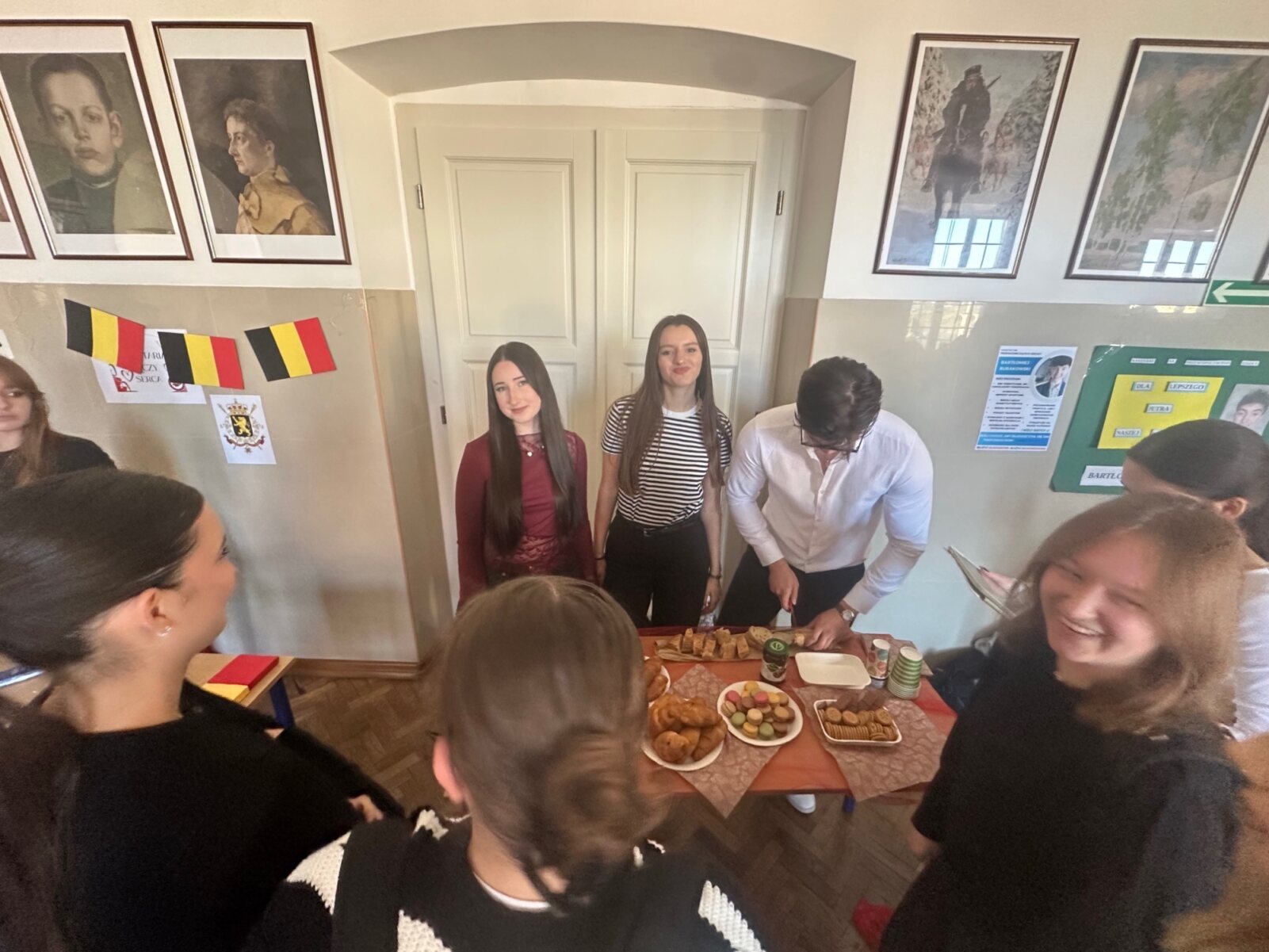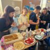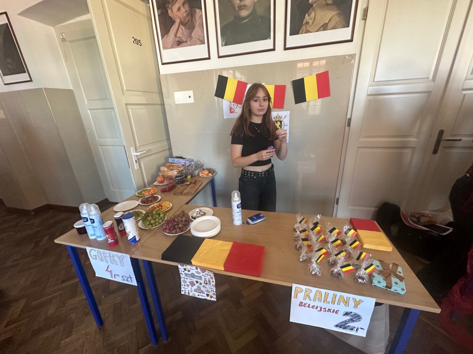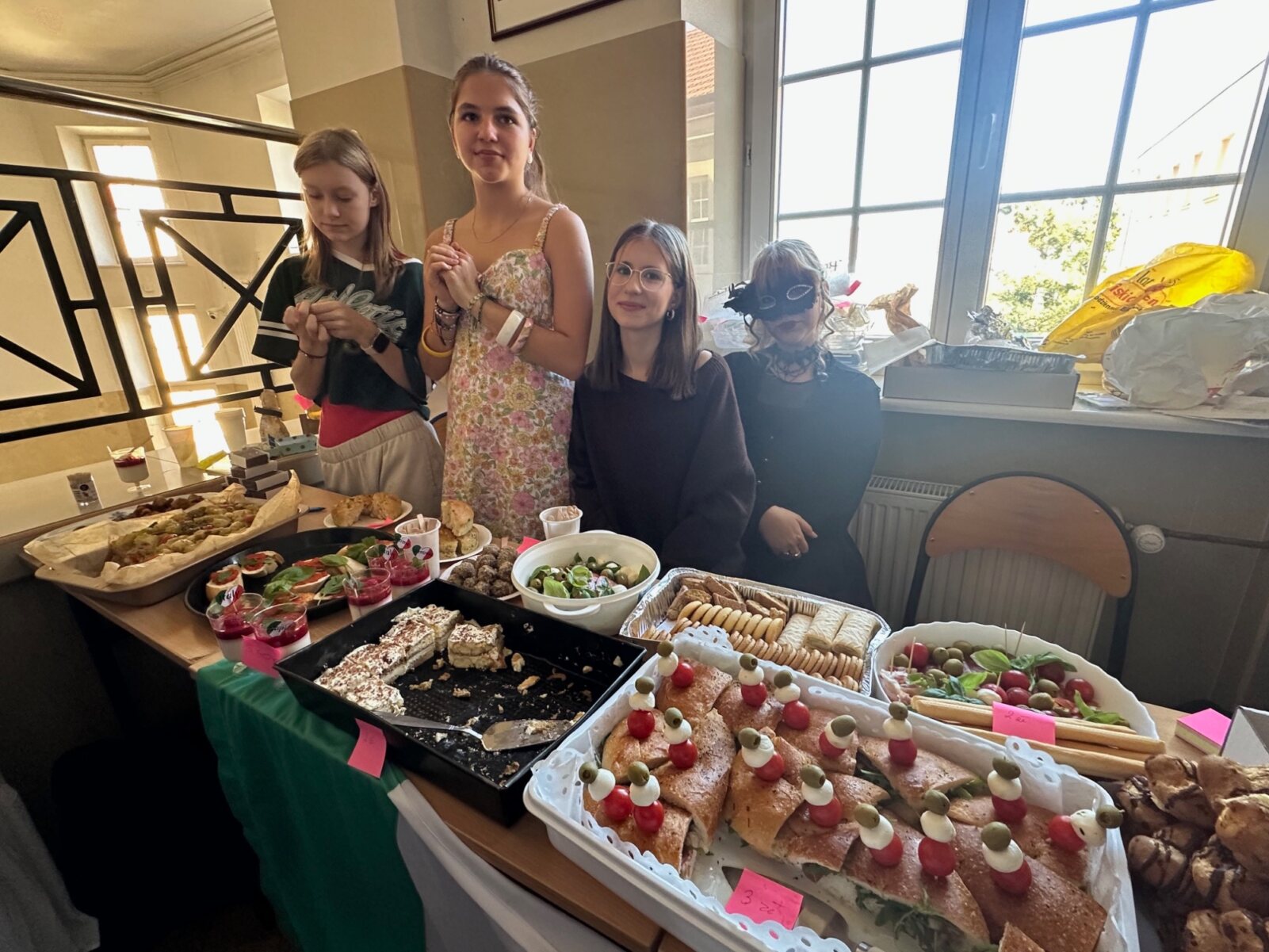 Kącik kulinarny – czyli coś dla ciała i ducha! Uczniowie (i nauczyciele!) mieli okazję skosztować potraw z różnych stron Europy. Były włoskie makarony, greckie sałatki i niemieckie precle. Jeden z uczestników próbując francuskiego przysmaku stwierdził: “C’est bizarre, mais délicieux!” („To dziwne, ale pyszne!”), czym rozbawił wszystkich dookoła.