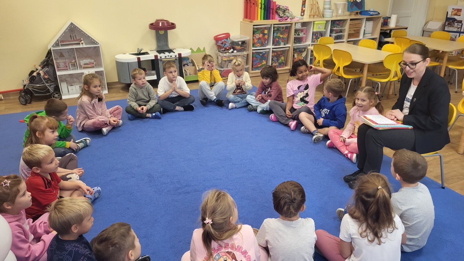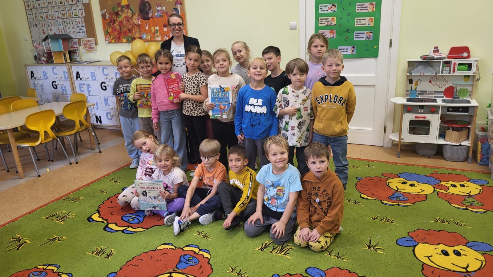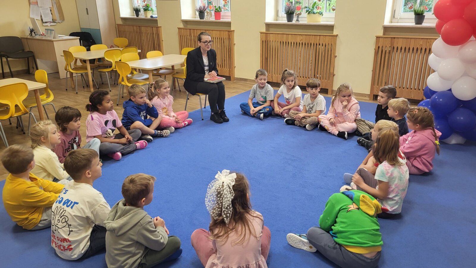 29 września obchodzimy Ogólnopolski Dzień Głośnego Czytania. Celem tego święta jest promowanie czytelnictwa już od najmłodszych lat. Głośne czytanie ma wiele zalet: rozbudza ciekawość świata, pomaga zrozumieć siebie i innych, ćwiczy koncentrację i ułatwia naukę. Pomimo, że czytanie bajek towarzyszy naszym przedszkolakom niemal każdego dnia, tym razem zajęcia czytelnicze wśród najmłodszych poprowadziła nasza szkolna pani bibliotekarka.