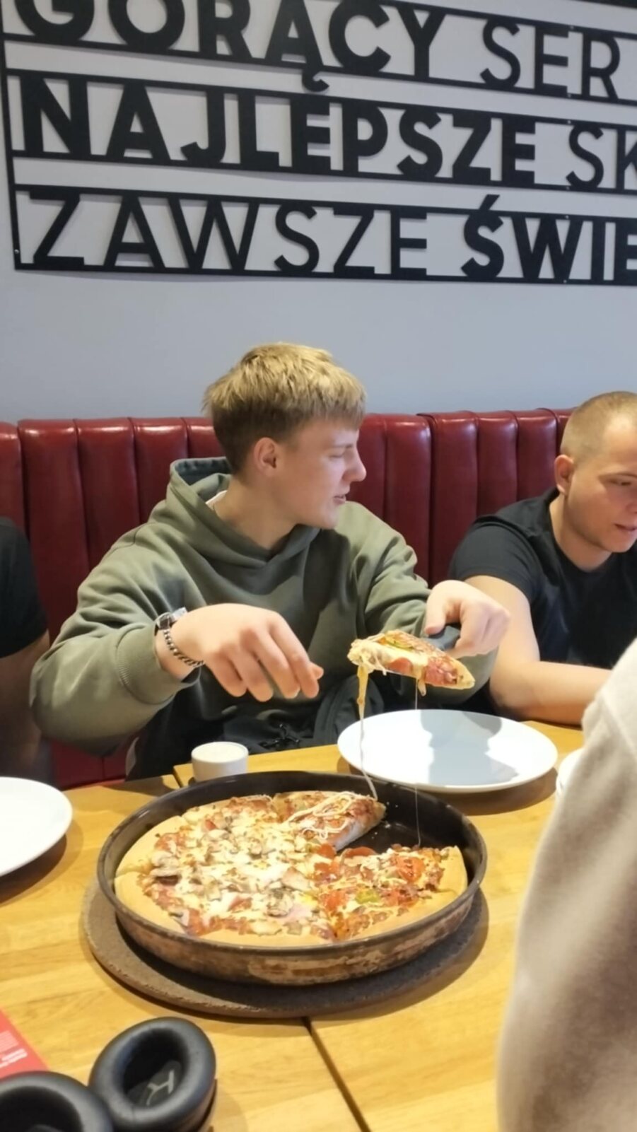 Z okazji Dnia Chłopaka uczniowie klasy 4a LO wraz z wychowawczynią panią Katarzyną Kwiatkowską oraz Panem Dawidem Pacholskim wybrali się do pizzerii Pizza Hut. Spotkanie miało wyjątkowy charakter – wszyscy mieliśmy świadomość, że jesteśmy ostatnią klasą liceum i że to nasze ostatnie świętowanie Dnia Chłopaka we wspólnym gronie.