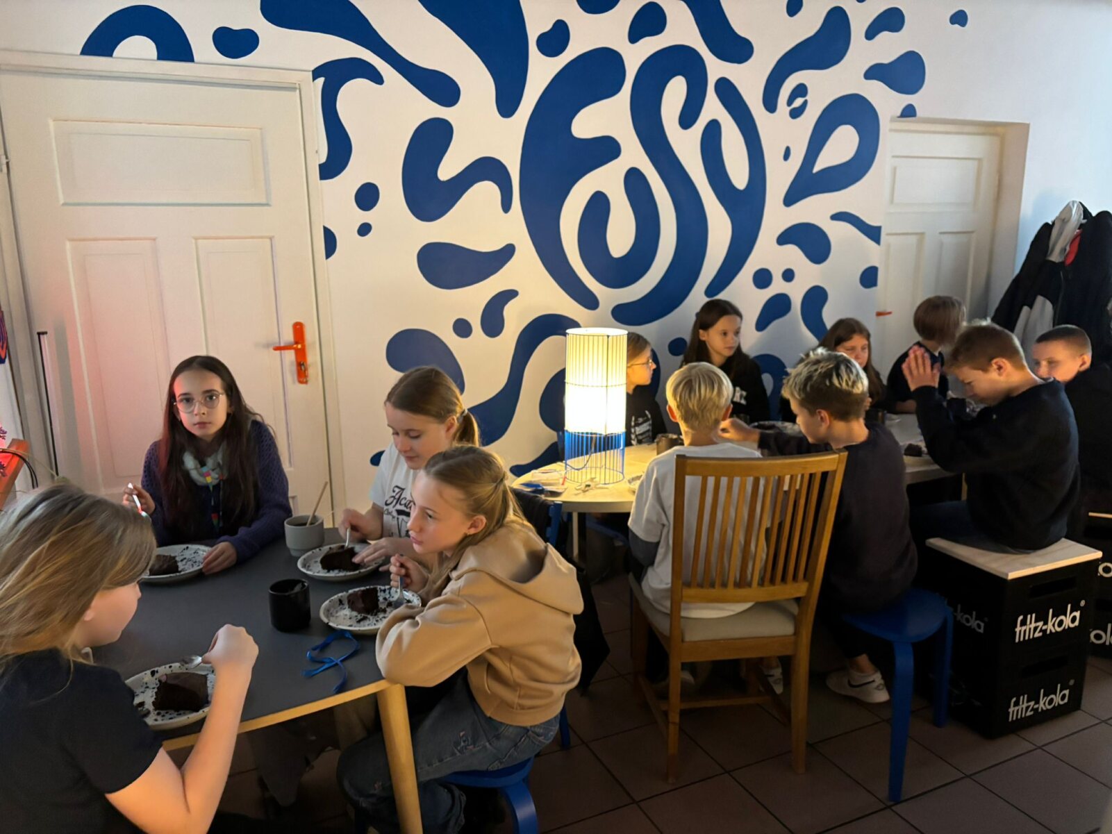30 września 2025 r. uczniowie klasy 4a SP świętowali Dzień Chłopaka. Z tej okazji wybrali się wraz z wychowawczynią panią Darią Hybą oraz panią Natalią Jaworską do kawiarni „Fusy” we Włocławku.