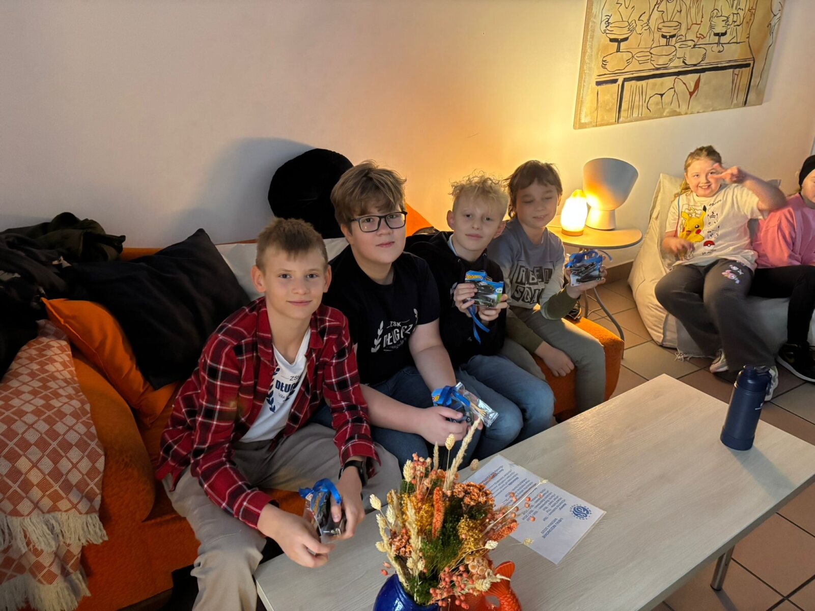 Na wszystkich czekały smakołyki – ciasta, lody i ulubione napoje. Dzieci miały także okazję spędzić wspólnie czas przy grach planszowych. Dziewczynki zorganizowały dla swoich kolegów niespodziankę, wręczyły upominki i złożyły piękne życzenia.