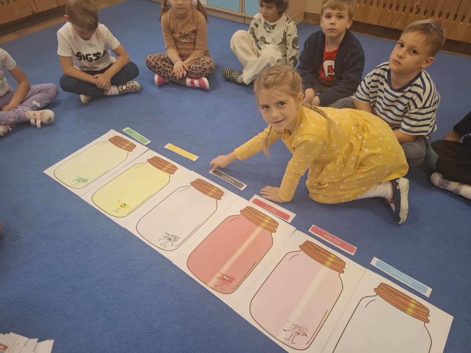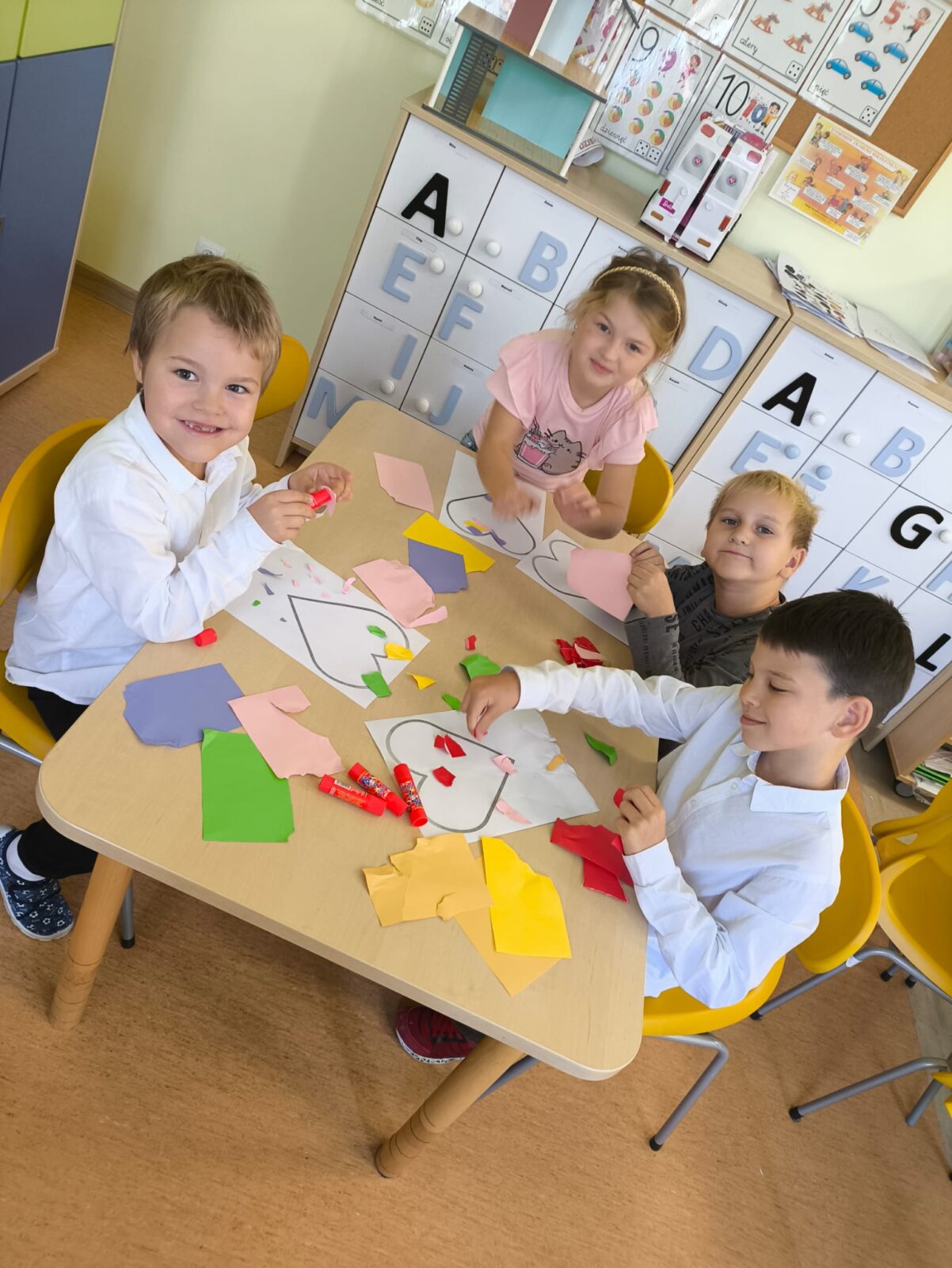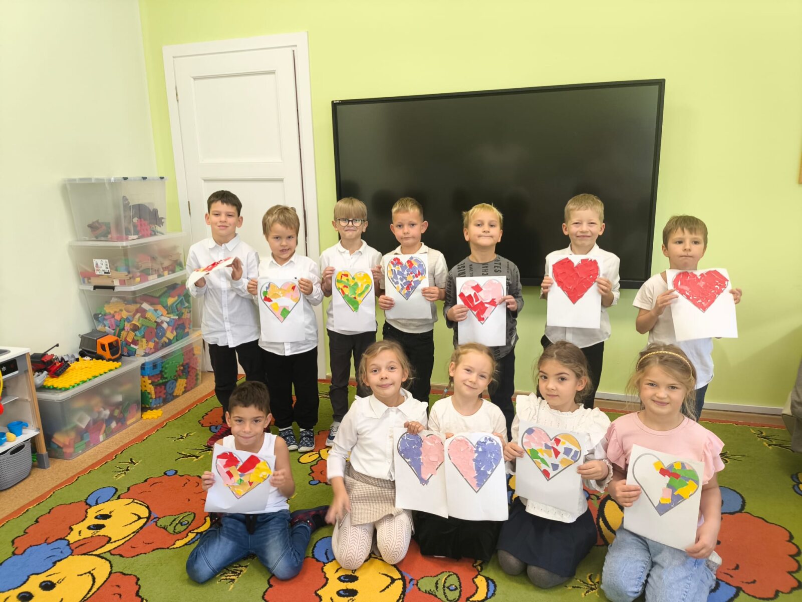 Przedszkolaki z każdej grupy uczestniczyły w zajęciach, których zadaniem było wspomaganie rozwoju wspierających kompetencji społecznych, takich jak wrażliwość na zachowania innych, umiejętność określania zachowań życzliwych i nieżyczliwych oraz pomoc dzieciom reagować adekwatnie w trudnych sytuacjach i budować życzliwy, wspierający klimat w grupie na podstawie scenariusza „Metamorfoza serduszka”.