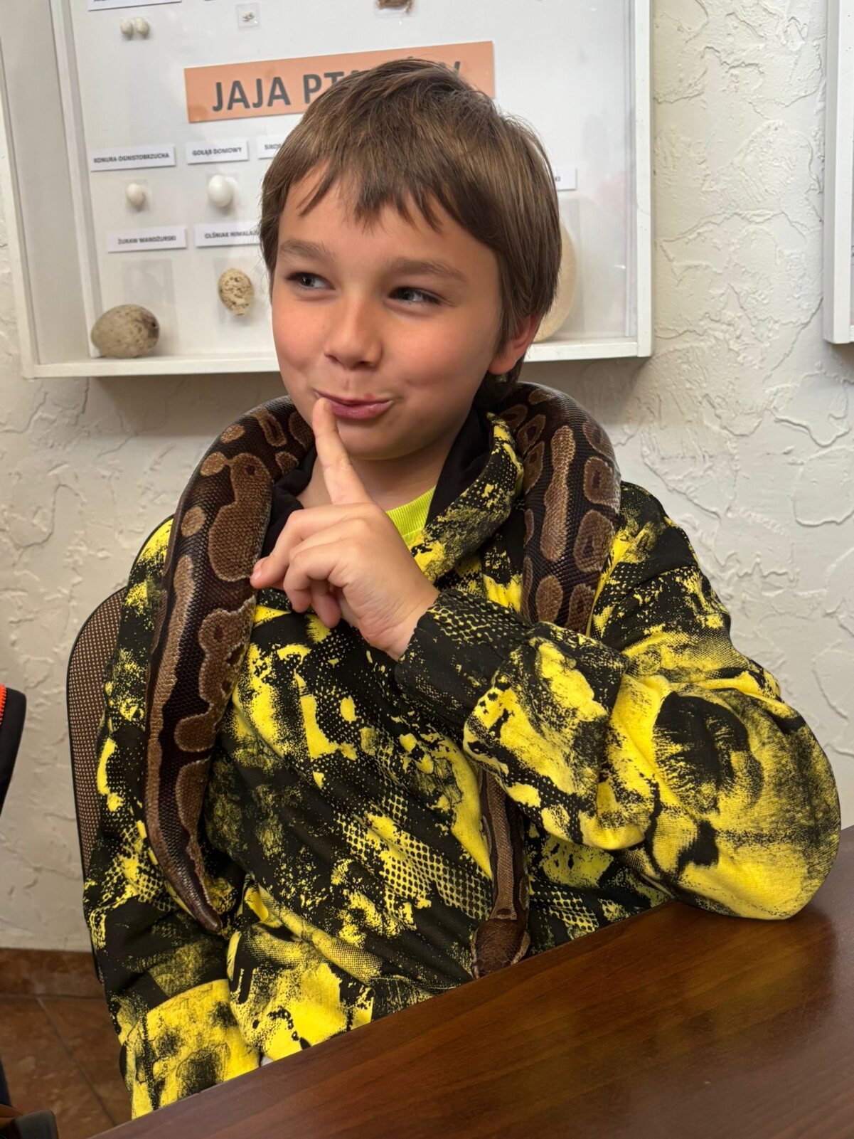Podczas wizyty dzieci mogły podziwiać różnorodne gatunki zwierząt, a szczególną atrakcją okazały się być warsztaty edukacyjne poświęcone płazom i gadom. Uczniowie mieli okazję dowiedzieć się wielu ciekawostek o ich życiu, a także przekonać się, że pełnią one ważną rolę w przyrodzie. Czwartoklasiści zobaczyli także na żywo żaby, jaszczurki, żółwie i węże, co wywołało wiele emocji i niezapomnianych wrażeń.