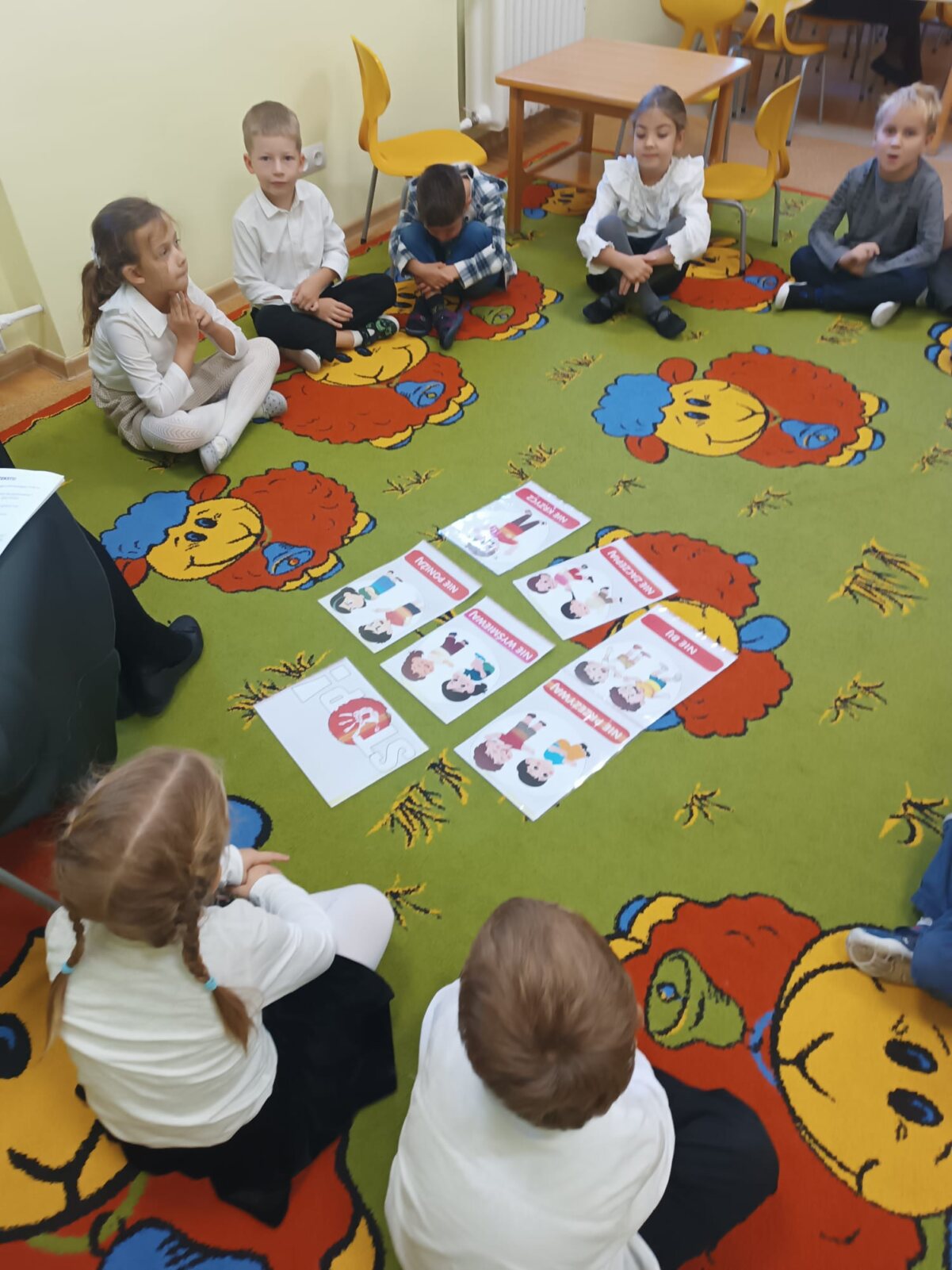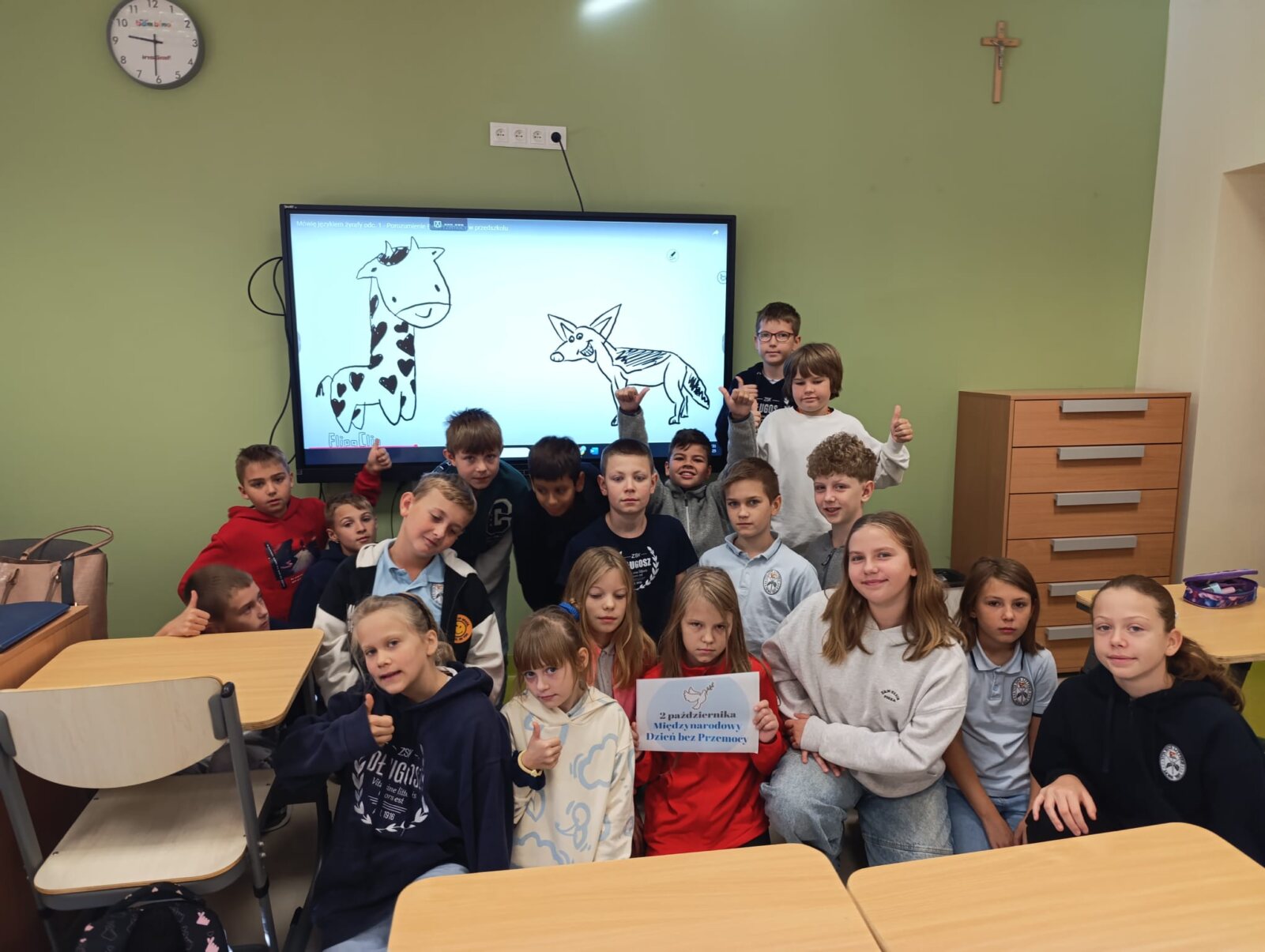 1. Lekcje w klasach 1-4 SP oraz w grupach przedszkolnych – przeprowadzono zajęcia edukacyjne, podczas których uczniowie uczyli się, jak mówić i słuchać „językiem żyrafy” w duchu Porozumienia bez Przemocy. Dzieci poznawały także różnice między postawą „szakala” a postawą „żyrafy” i ćwiczyły praktyczne sposoby rozwiązywania konfliktów.