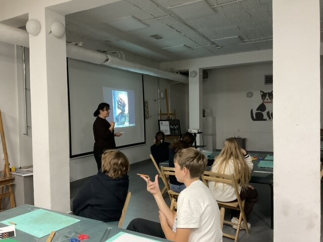 Uczniowie klasy 6b w ramach lekcji plastyki uczestniczyli w warsztatach pt. „Rytmy”, które odbyły się w Galerii Sztuki Współczesnej we Włocławku przy ul. Miedzianej 2/4. Celem zajęć była edukacja artystyczna oraz kształtowanie pożądanych postaw poprzez sztukę i działania twórcze.