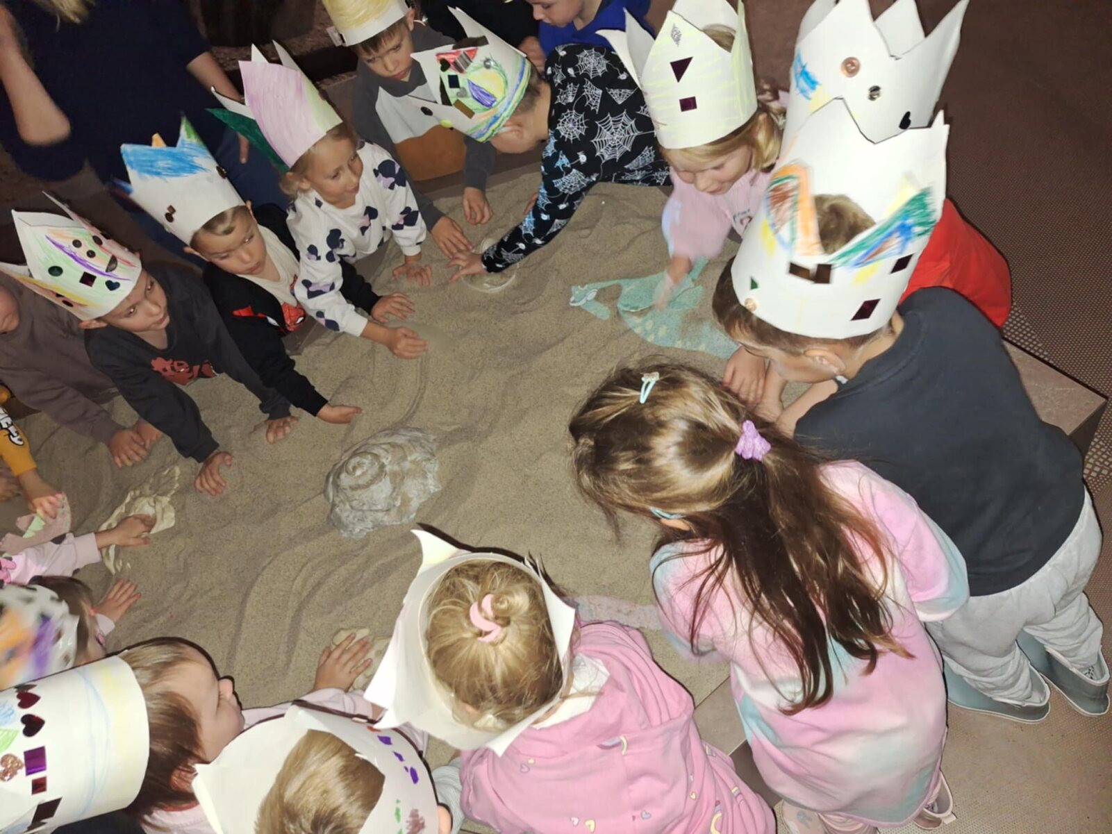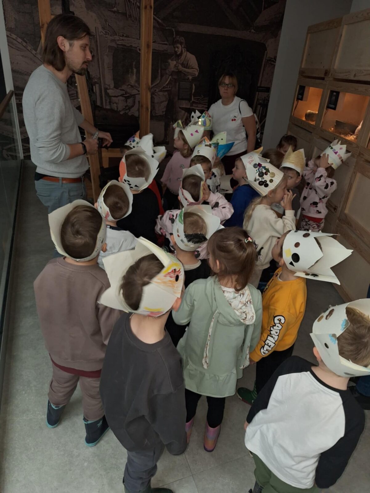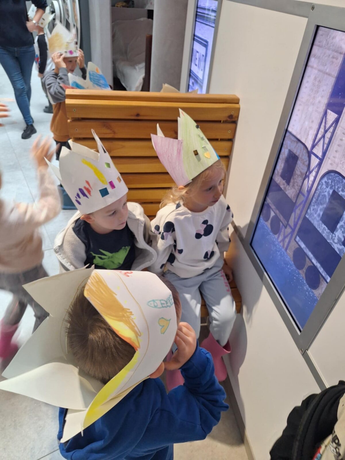 Dnia 08.10 grupa 5-latków wybrała się do brzeskiego Centrum Kultury i Historii. Celem wycieczki były warsztaty plastyczne oraz wystawa interaktywna pt ” Wehikuł Czasu”. Podczas warsztatów plastycznych dzieci wykonywały, jeden z atrybutów królewskich – koronę . Swoja prace rozpoczęli od starannego wycięcia koron, następnie pięknie je przyozdobili – kolorowymi wycinkami ,guzikami , diamentami. Każde z dzieci włożyło w to wiele serca ,aby korona wyglądała okazale. Końcowym efektem było założenie korony na głowę aby, każdy mógł poczuć się iście królewsko.