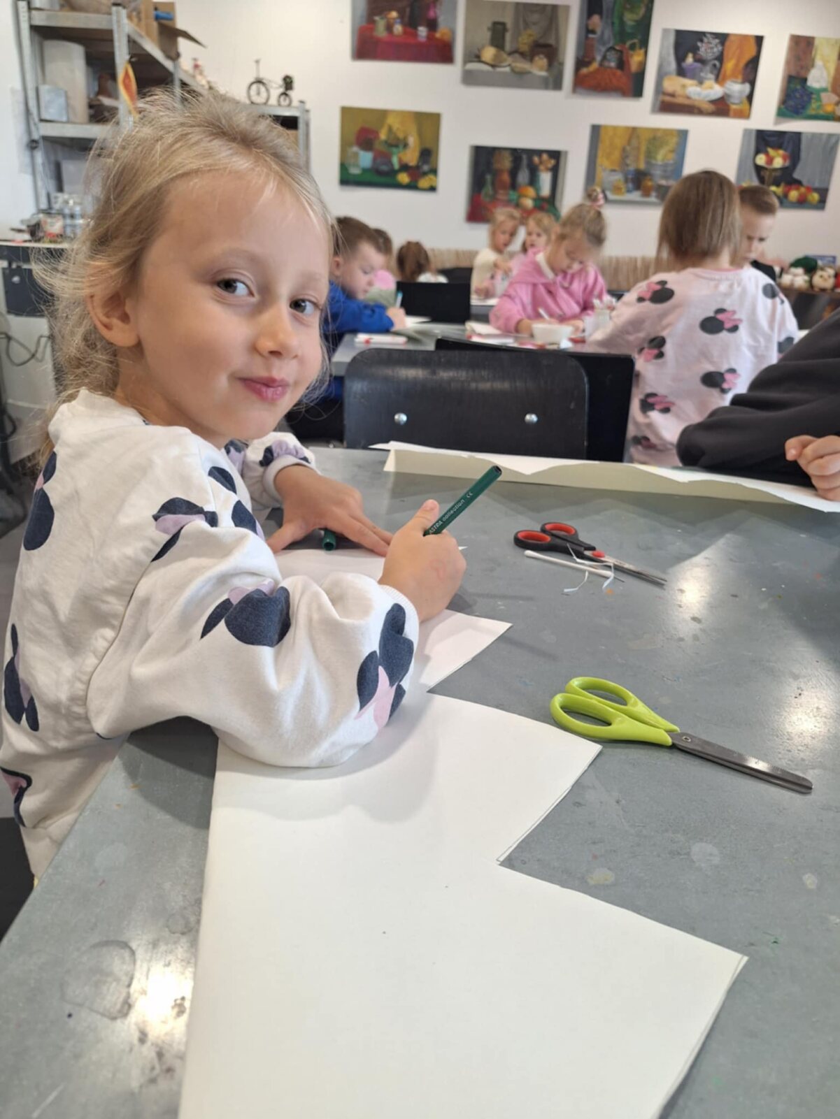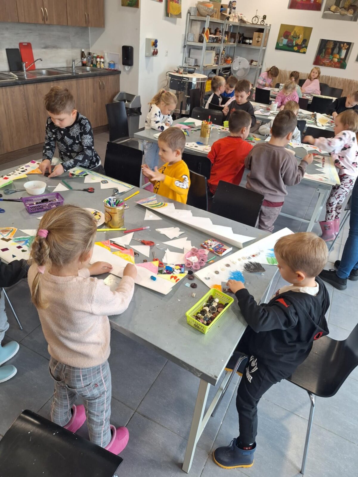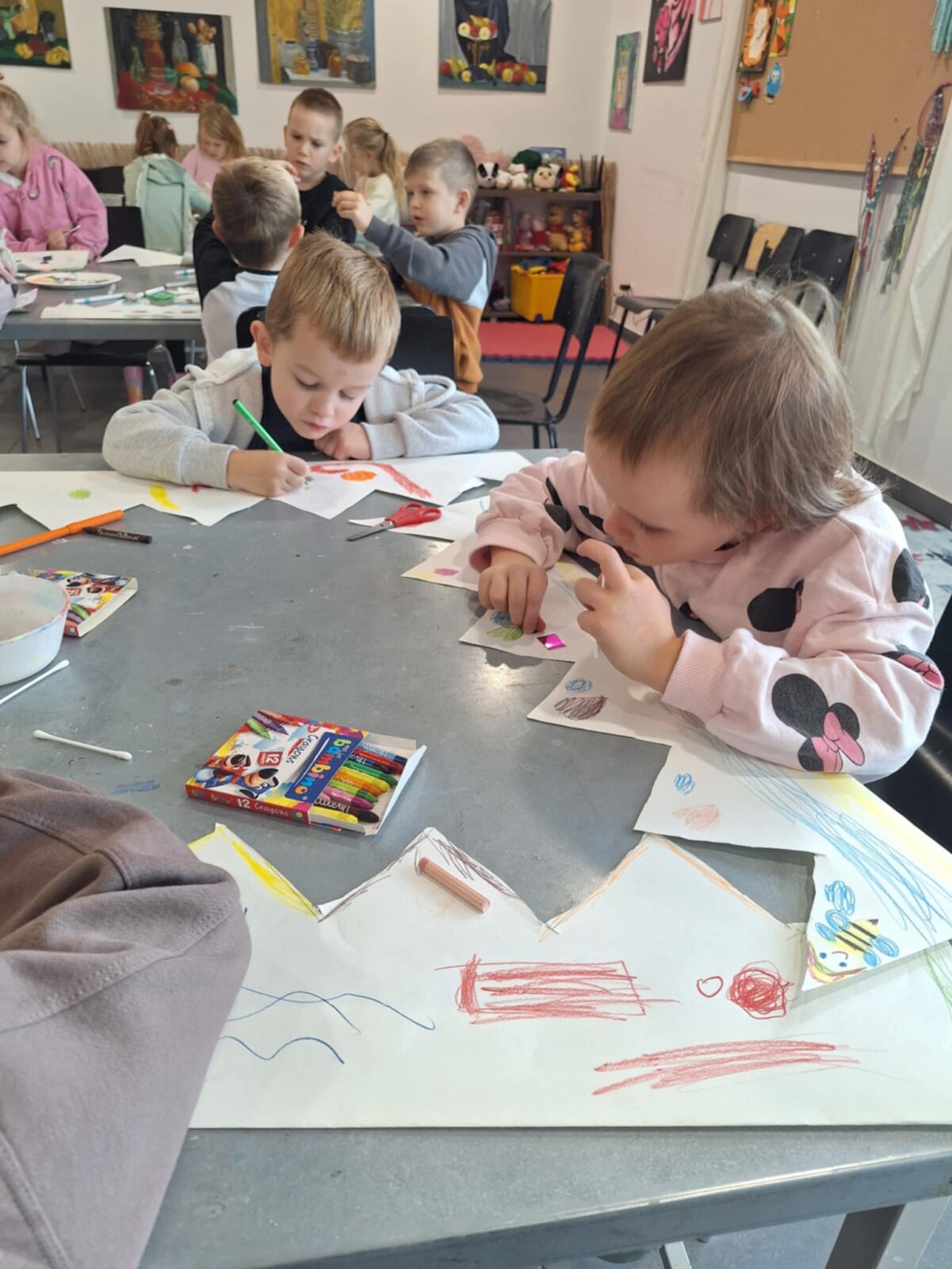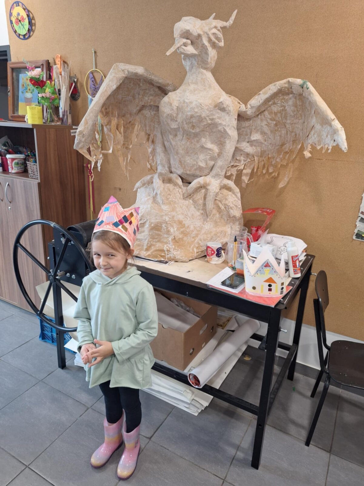 Dnia 08.10 grupa 5-latków wybrała się do brzeskiego Centrum Kultury i Historii. Celem wycieczki były warsztaty plastyczne oraz wystawa interaktywna pt ” Wehikuł Czasu”. Podczas warsztatów plastycznych dzieci wykonywały, jeden z atrybutów królewskich – koronę . Swoja prace rozpoczęli od starannego wycięcia koron, następnie pięknie je przyozdobili – kolorowymi wycinkami ,guzikami , diamentami. Każde z dzieci włożyło w to wiele serca ,aby korona wyglądała okazale. Końcowym efektem było założenie korony na głowę aby, każdy mógł poczuć się iście królewsko.