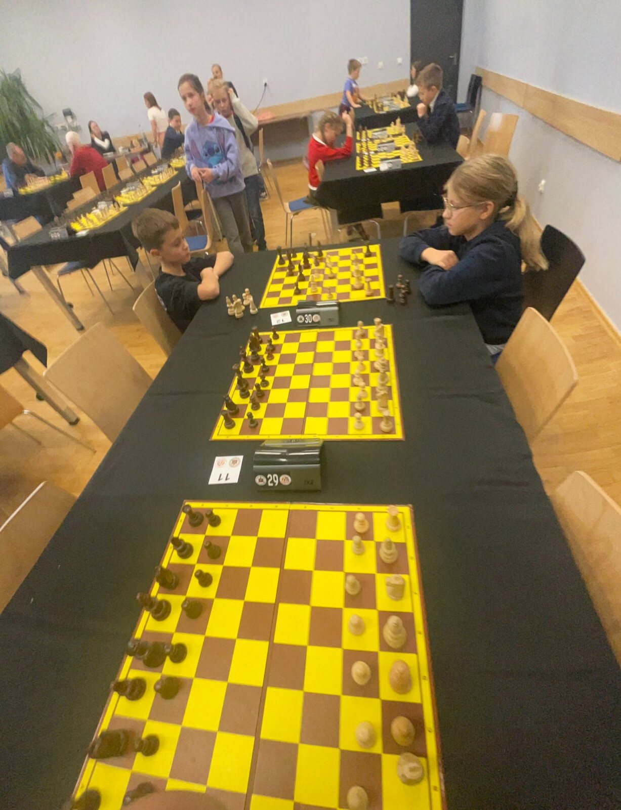 Z wielką radością należy podkreślić udział dwóch uczniów – Wiktora Gulina z kl. 1b oraz Franciszka Polaka z kl. 2a – którzy po raz pierwszy uczestniczyli w turnieju szachowym. Dla obu uczniów był to bardzo udany debiut. Liderem naszej reprezentacji został Miłosz Lewandowski z kl. 4a – zajął I miejsce w turnieju.