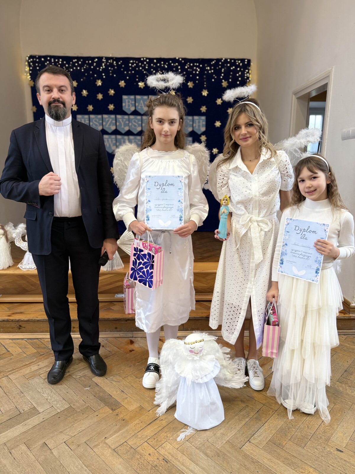 Serdecznie gratuluję zwycięzcom oraz dziękuję wszystkim uczestnikom za udział i twórczy wysiłek. Wasze anioły wniosły do naszej szkoły wiele dobra, światła i inspiracji.
