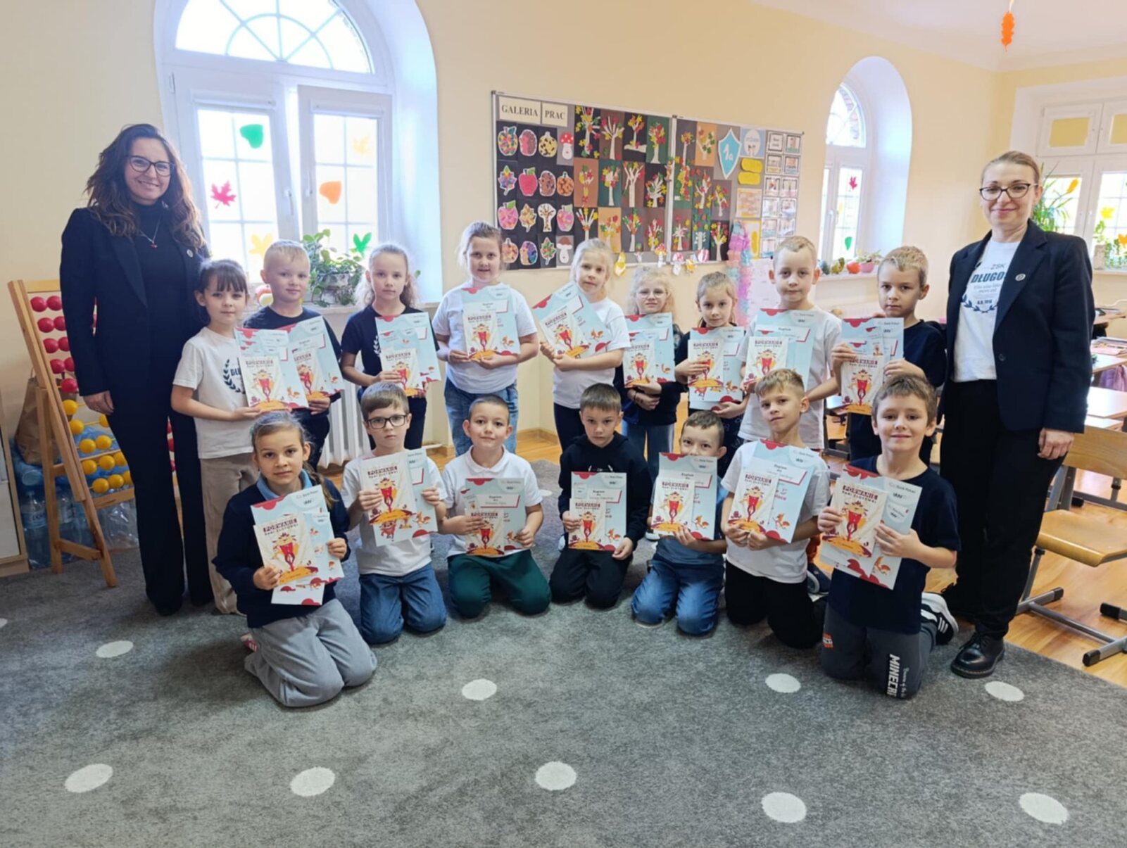Do rąk uczniów trafiły książeczki „Porwanie Pani Złotówki” autorstwa Justyny Bednarek, zapraszające do nauki czytania i liczenia. W pakiecie każdy uczeń otrzymał również zakładkę, naklejki, dyplom oraz broszurę przeznaczoną dla rodziców.