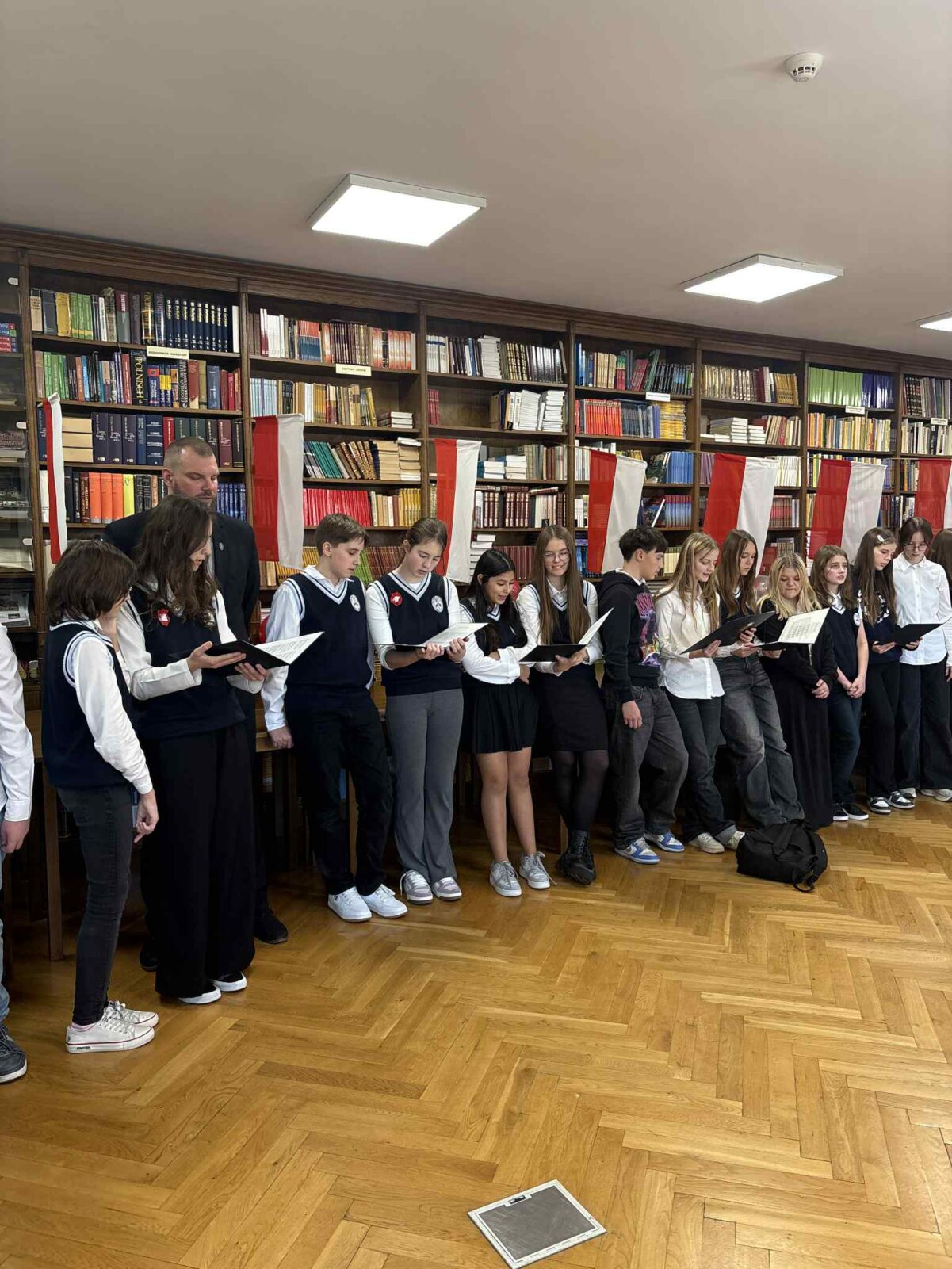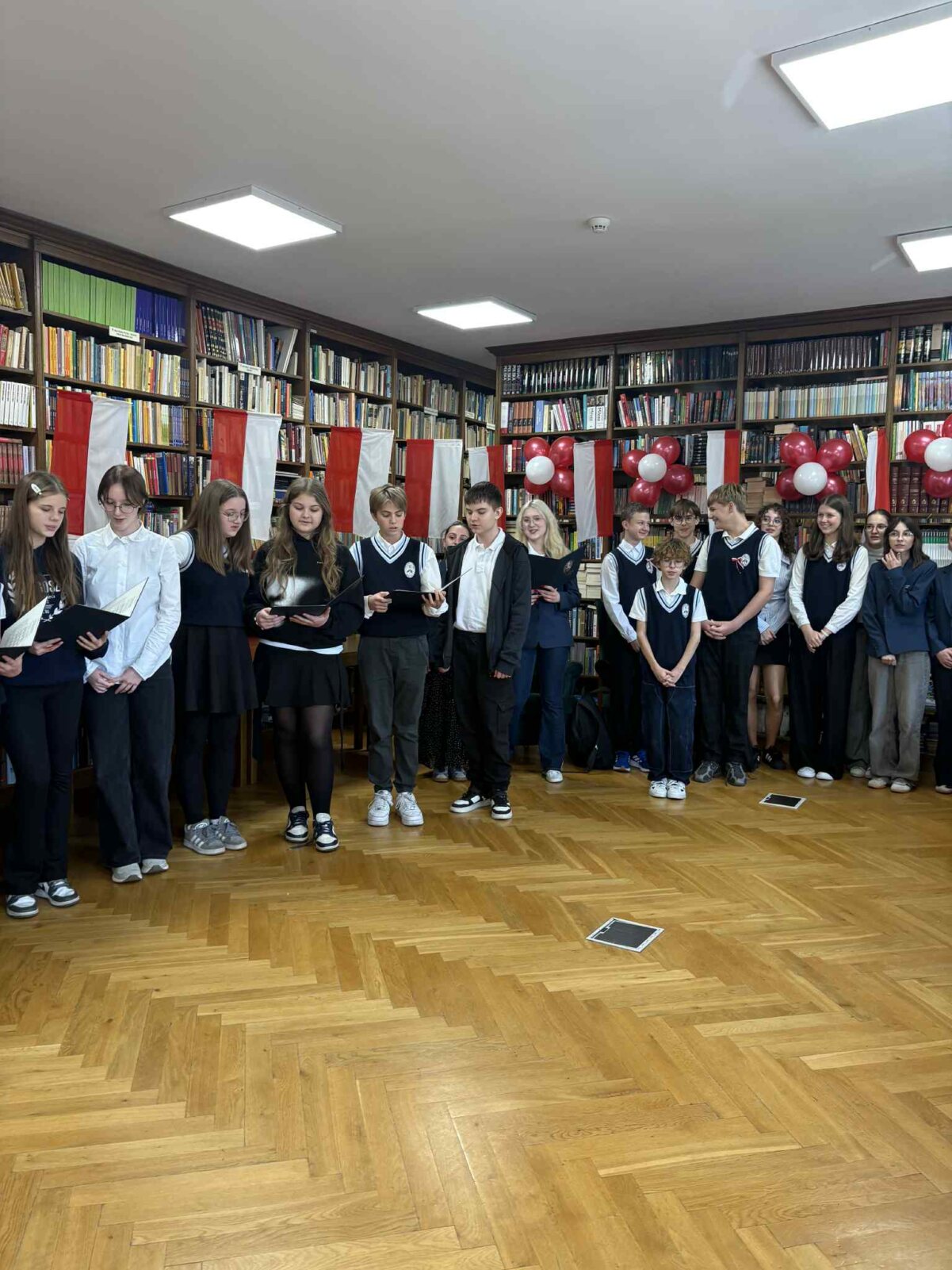 11 listopada 1918 roku Polska odzyskała Niepodległość – aby uczcić ten wyjątkowy dzień w historii Polski, Samorząd Uczniowski Szkoły Podstawowej kl. 5-8 zorganizował kolejną edycję „Śpiewania Pieśni Patriotycznych” przy akompaniamencie pianina w bibliotece szkolnej.