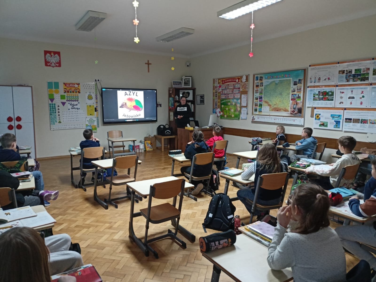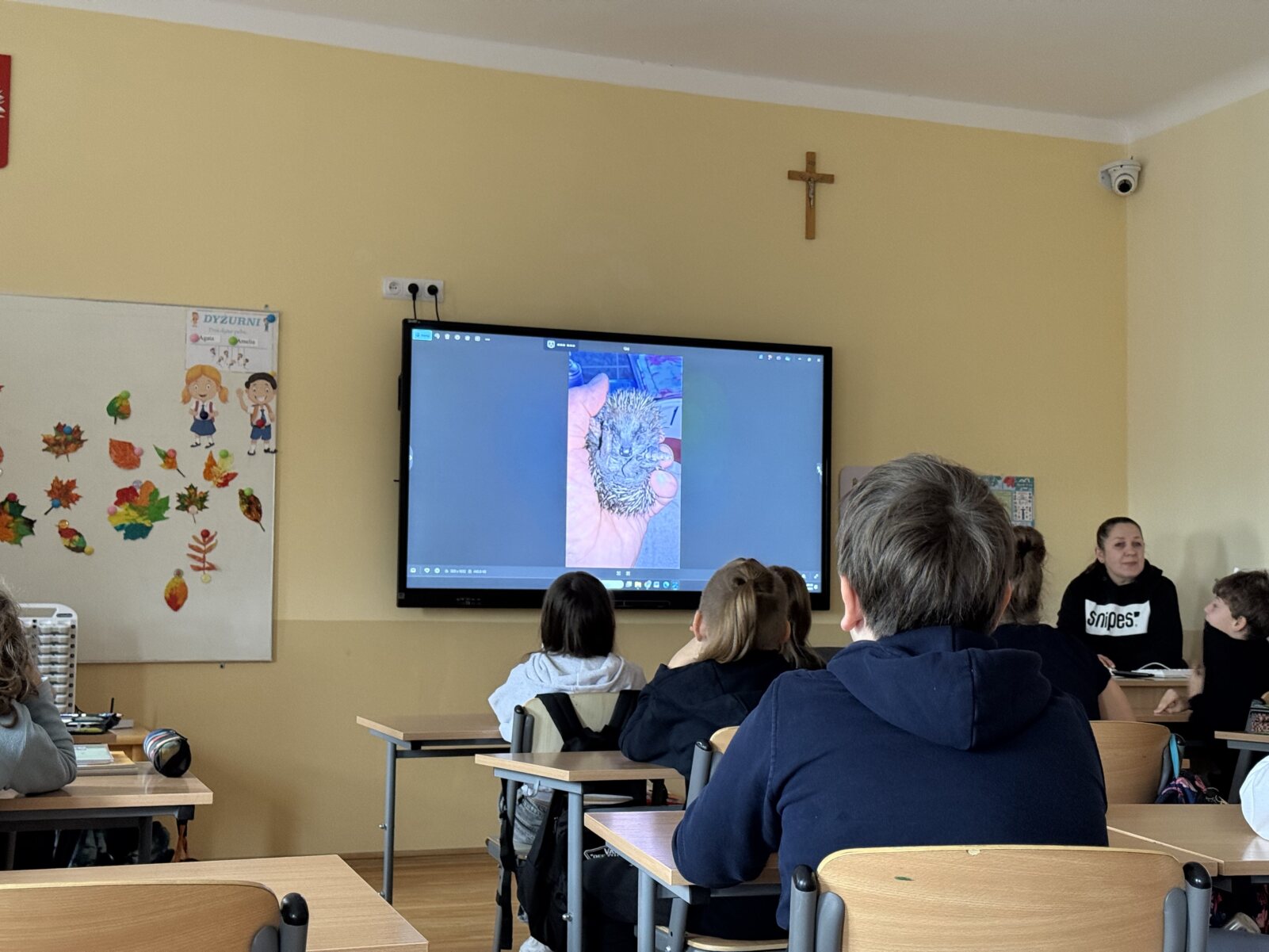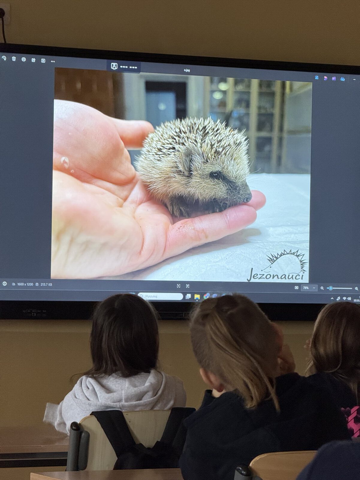 W dniu 12 listopada 2025 r. doskonałą okazję do poznania życia jeży mieli uczniowie klas: 3a, 3b i 3c SP. W tym dniu bowiem odwiedziła nas p. Katarzyna Paliwoda, która zajmuje się ochroną jeży. Pani Katarzyna opowiedziała dzieciom o życiu jeży, pokazała ciekawą prezentację i cierpliwie odpowiadała na wszystkie nasze pytania. Teraz już wszyscy trzecioklasiści z małego Długosza wiedzą, co zrobić, gdy spotkają jeża.