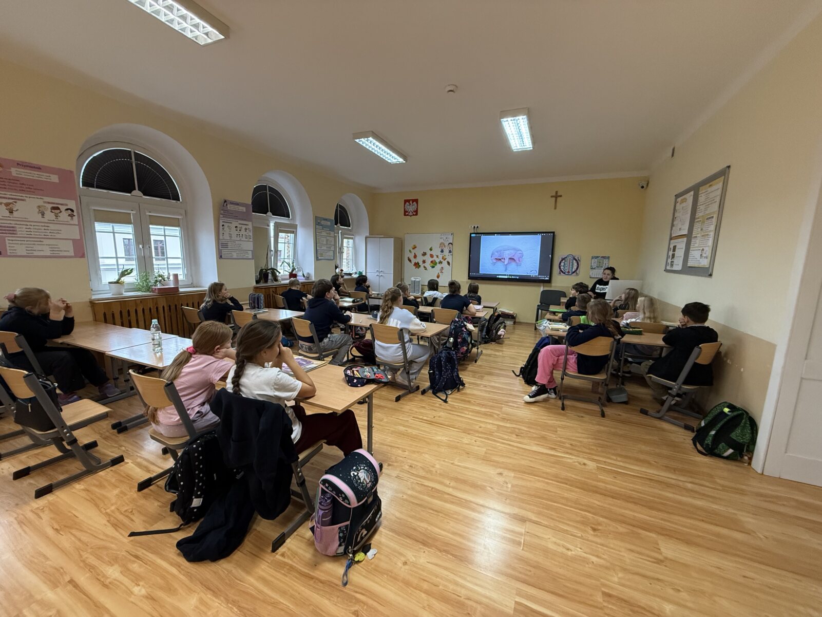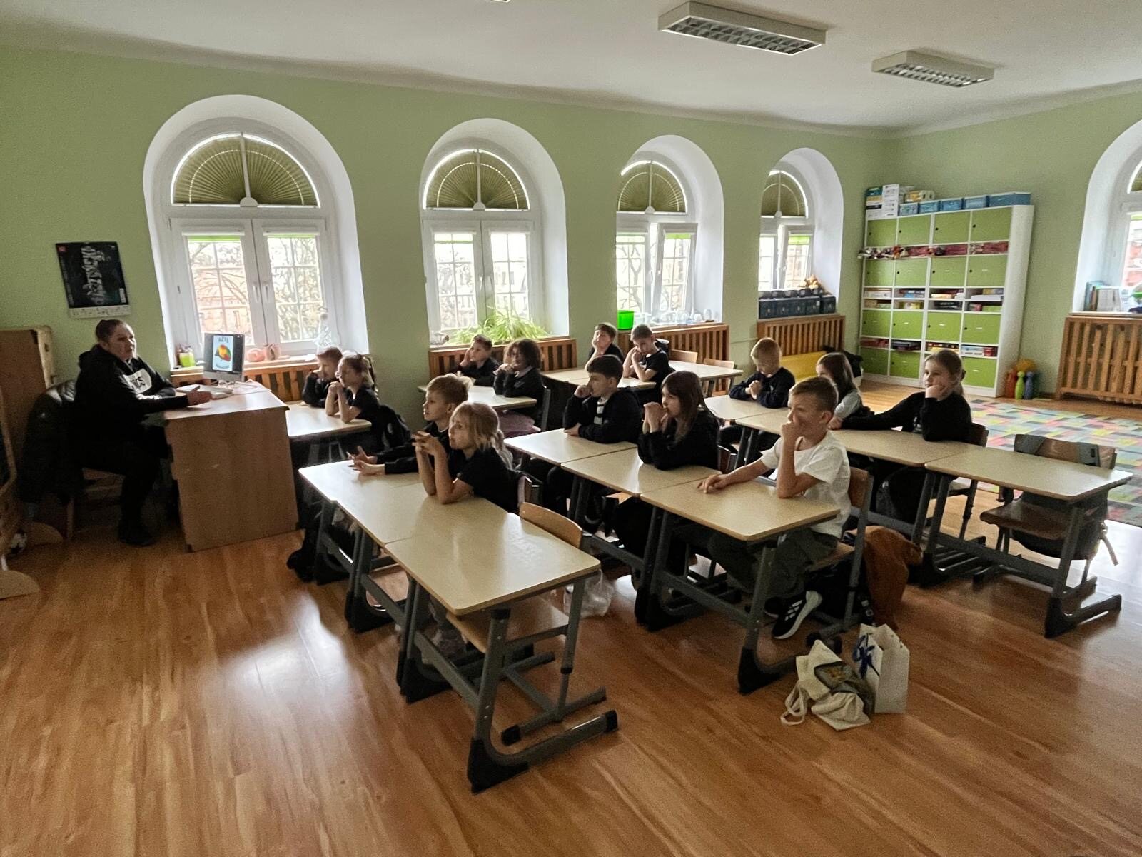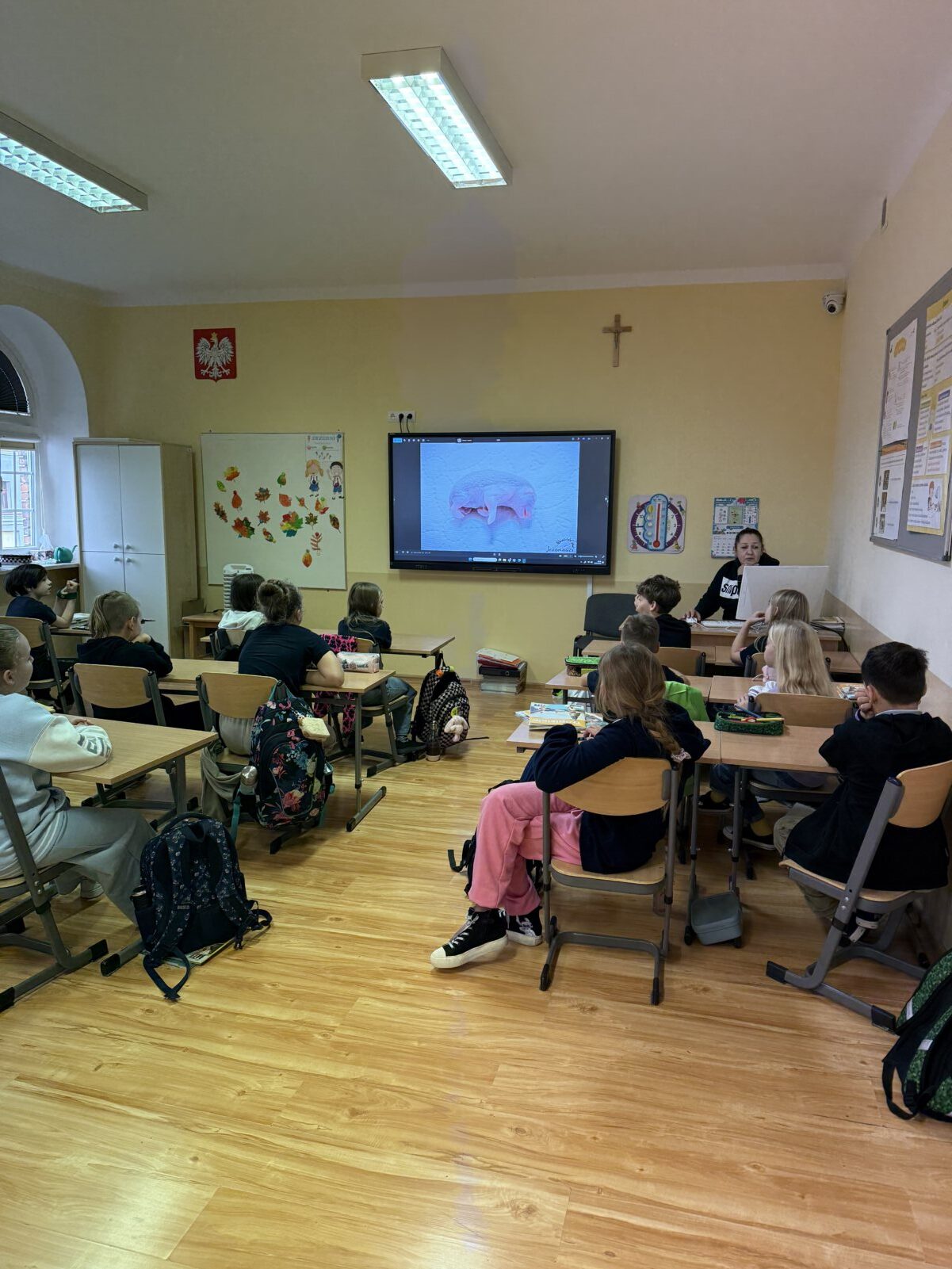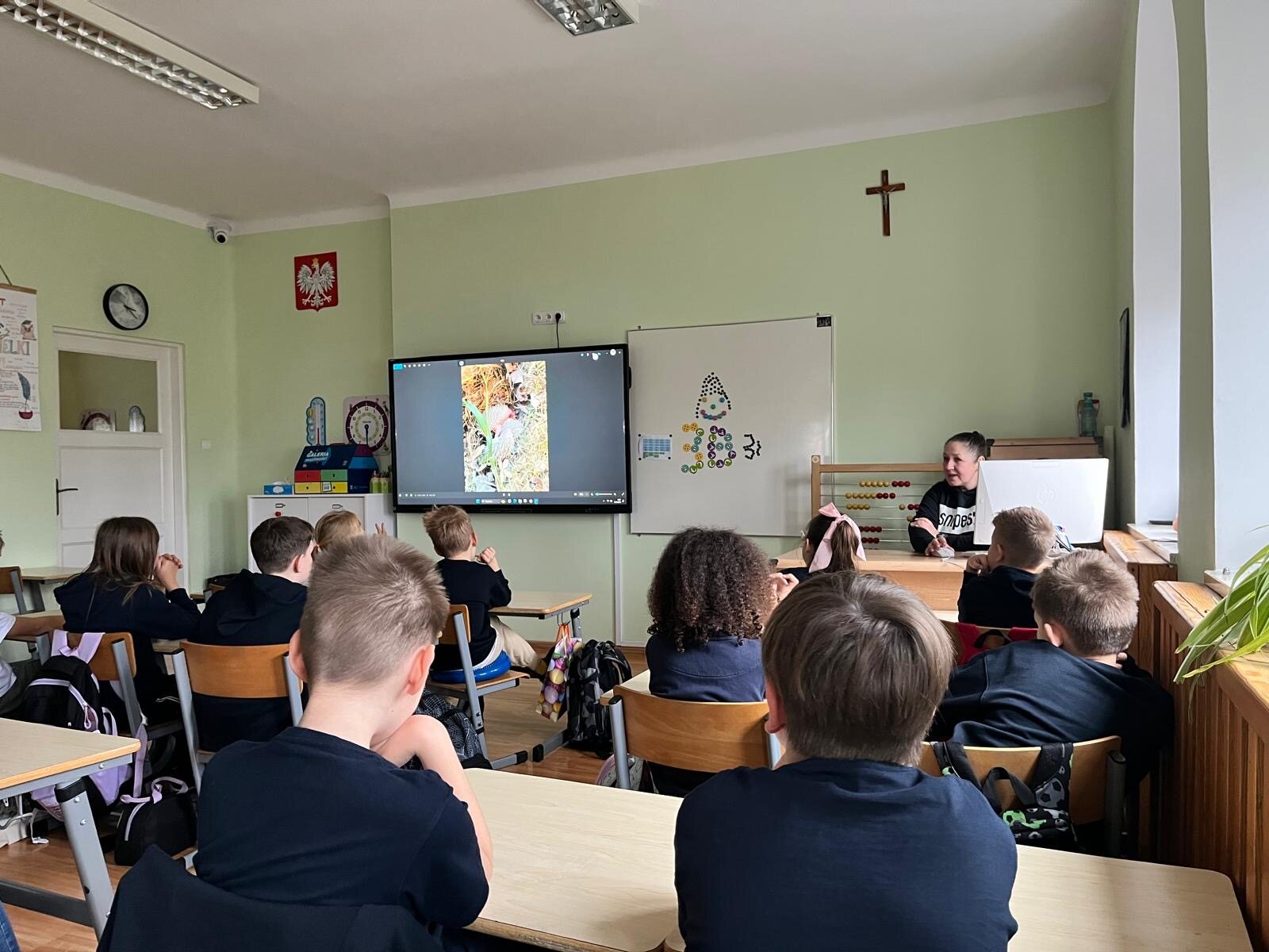 W dniu 12 listopada 2025 r. doskonałą okazję do poznania życia jeży mieli uczniowie klas: 3a, 3b i 3c SP. W tym dniu bowiem odwiedziła nas p. Katarzyna Paliwoda, która zajmuje się ochroną jeży. Pani Katarzyna opowiedziała dzieciom o życiu jeży, pokazała ciekawą prezentację i cierpliwie odpowiadała na wszystkie nasze pytania. Teraz już wszyscy trzecioklasiści z małego Długosza wiedzą, co zrobić, gdy spotkają jeża.