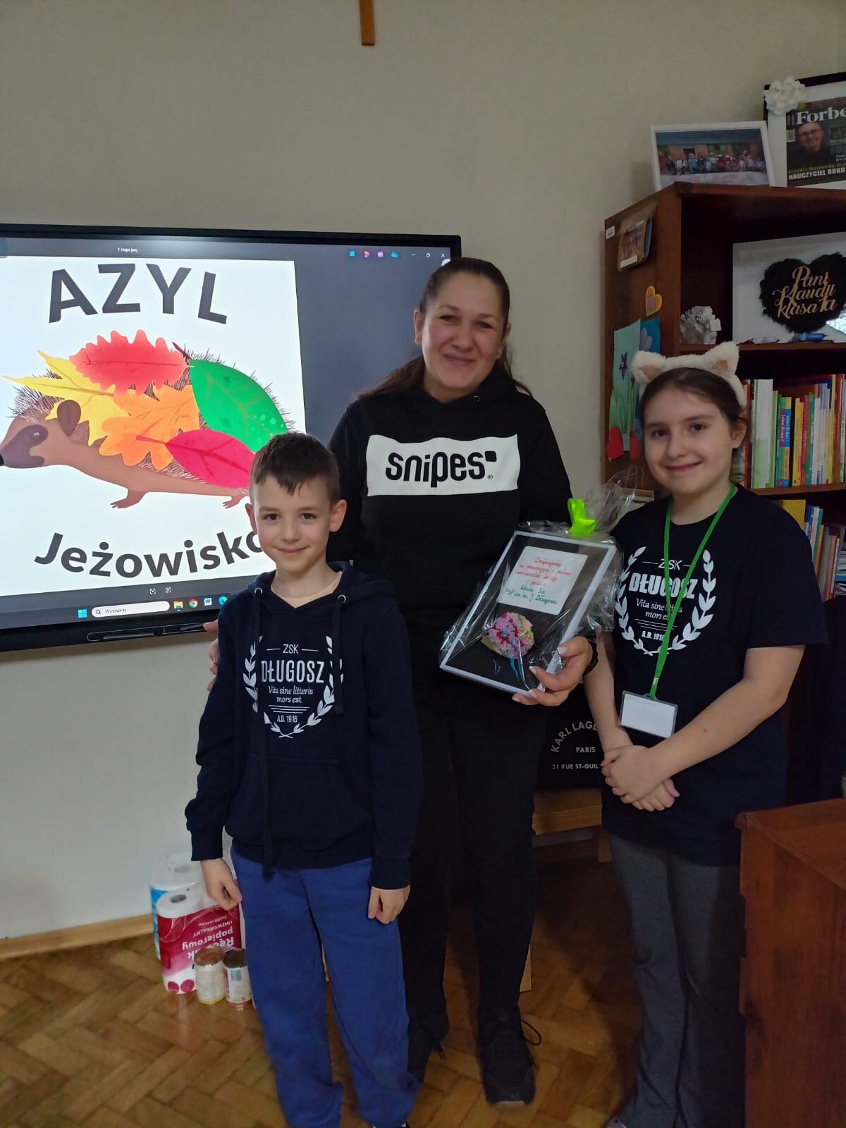 Serdecznie dziękujemy Pani Katarzynie za wizytę w naszej szkole. Miło nam, że mogliśmy wesprzeć działalność azylu dla jeży i przekazać karmę i materiały higieniczne. Dziękujemy również pani Katarzynie Fechner (mamie Karolinki z klasy 3a) za pomoc w organizacji tego wydarzenia.