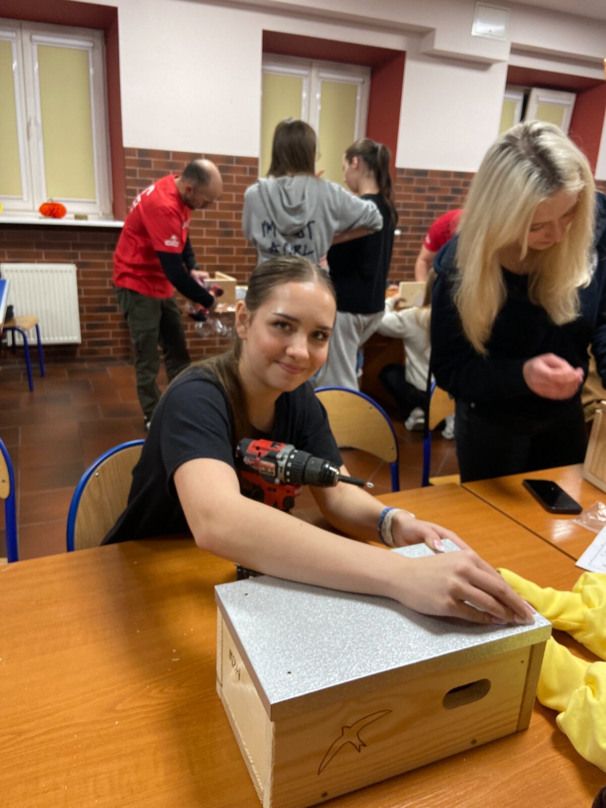 Praca nad budkami pozwoliła wychowankom nie tylko poszerzyć wiedzę ekologiczną, ale również rozwijać umiejętności praktyczne i nauczyć się współpracy w grupie.