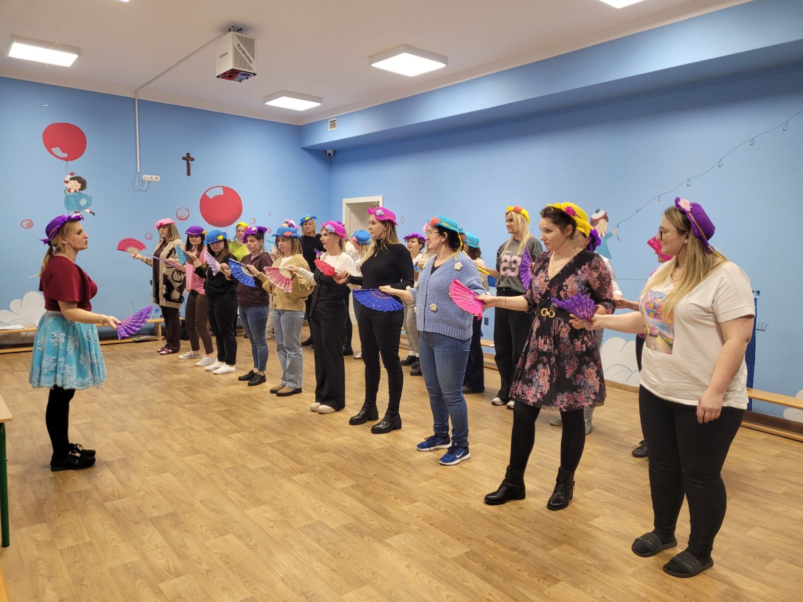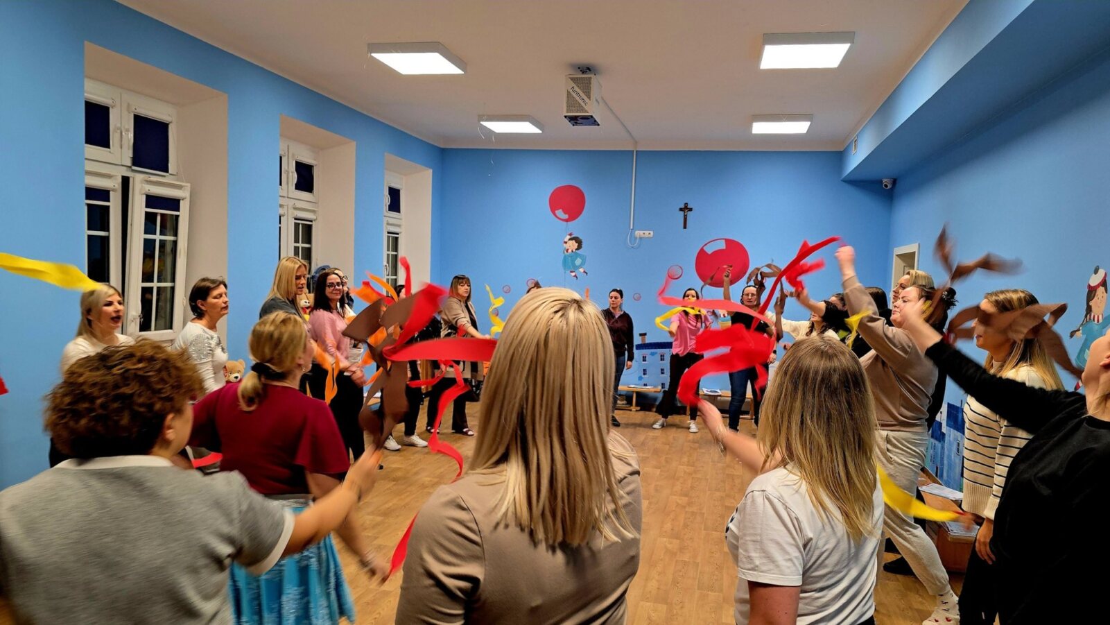 Atmosfera spotkania była niezwykle twórcza, pełna energii i radości. Uczestnicy aktywnie angażowali się w proponowane ćwiczenia, dzięki czemu mogli poczuć się jak dzieci i samodzielnie doświadczyć, jak wielki potencjał niosą za sobą zabawy muzyczno-ruchowe. Każdy z nich otrzymał również materiały szkoleniowe – płyty, konspekty oraz pomoce dydaktyczne, które ułatwią praktyczne wykorzystanie zdobytej wiedzy.