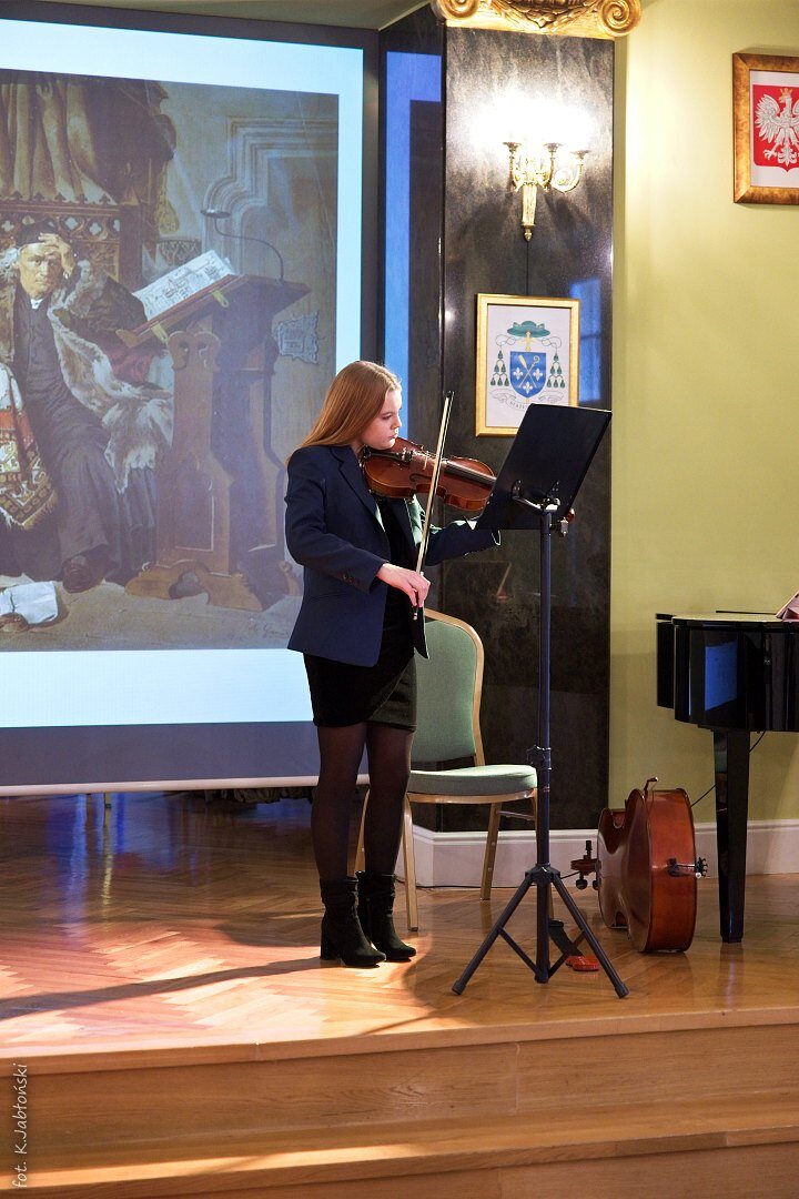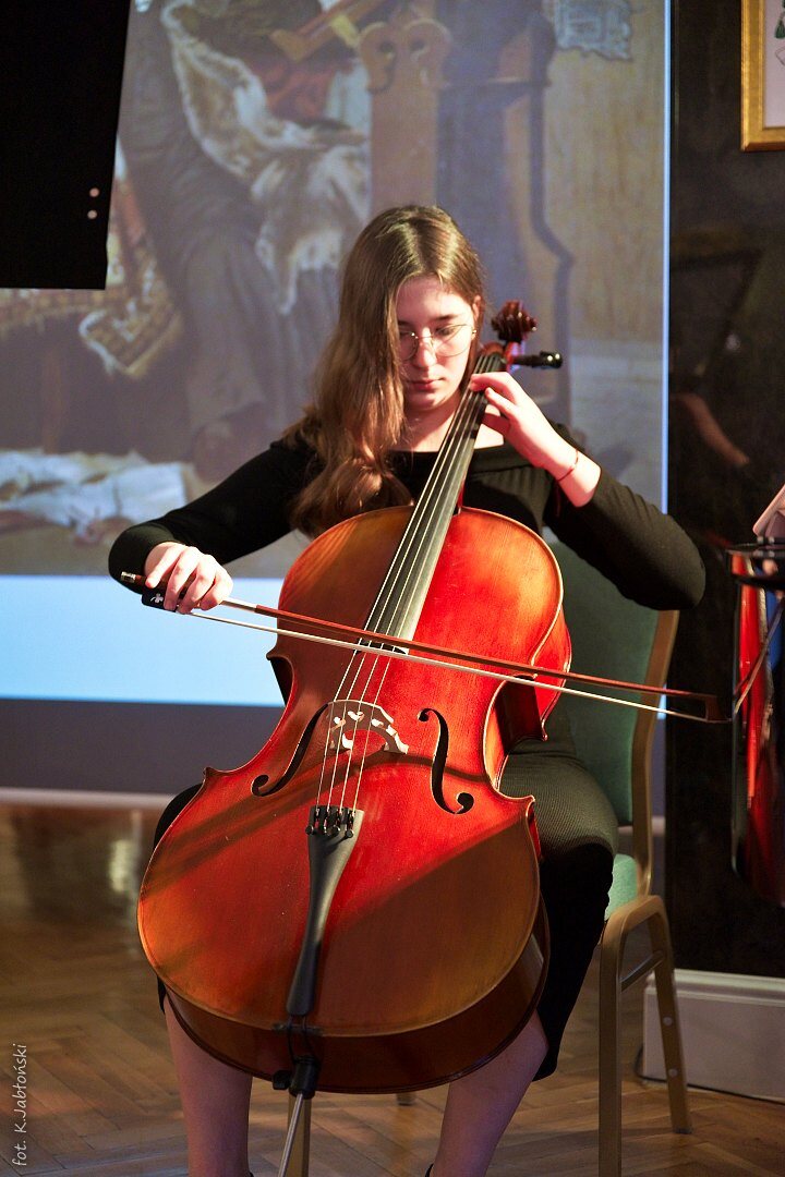Liliana Rumuńska z klasy 2C – w utworze „Gaude Matter Polonia” na wiolonczeli, której głęboki, nastrojowy ton podkreślił powagę chwili,