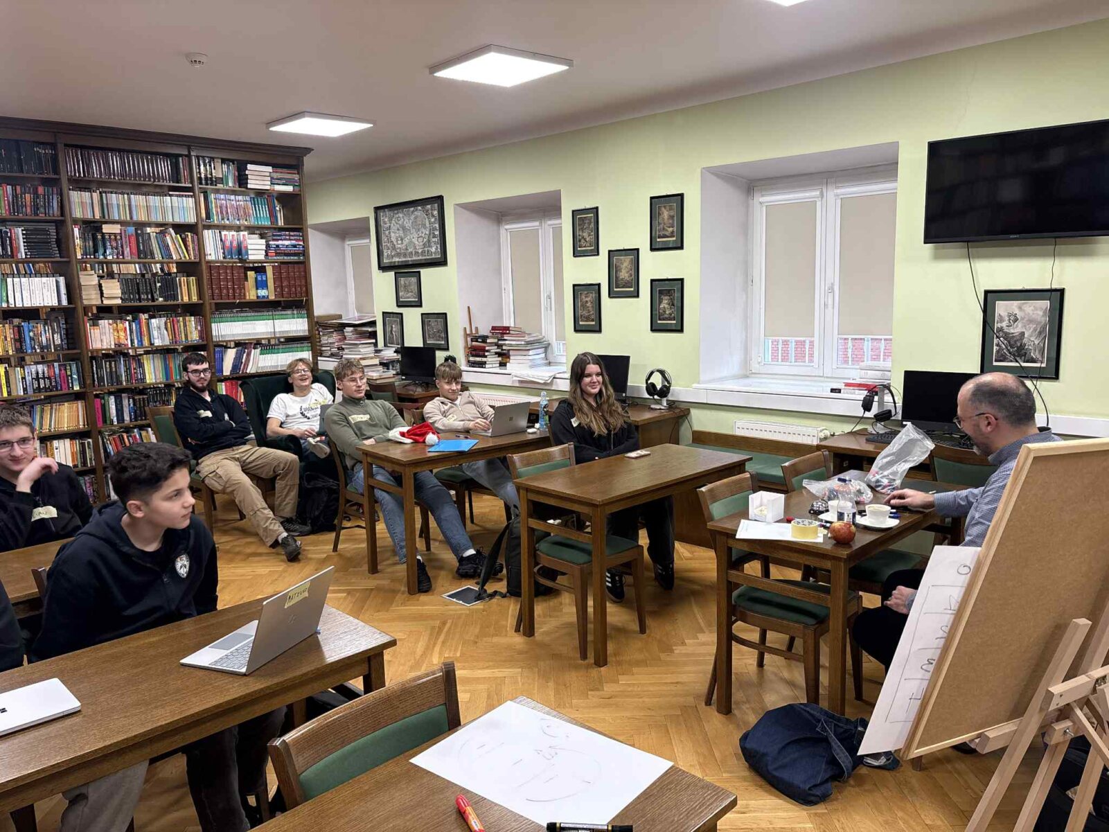 W poniedziałek, 8 grudnia 2025 roku, uczniowie naszego liceum wzięli udział w wyjątkowym szkoleniu prowadzonym przez prezesa Fundacji „Projekty Edukacyjne” pana Jana Piosika, działacza społecznego i trenera wystąpień publicznych. Spotkanie poświęcone było tematyce debat oksfordzkich, które już wkrótce staną się dla młodzieży ważnym wyzwaniem — w związku ze zbliżającą się Włocławską Ligą Debat, będącą częścią ogólnopolskiego projektu promującego kulturę dialogu i sztukę argumentacji.
