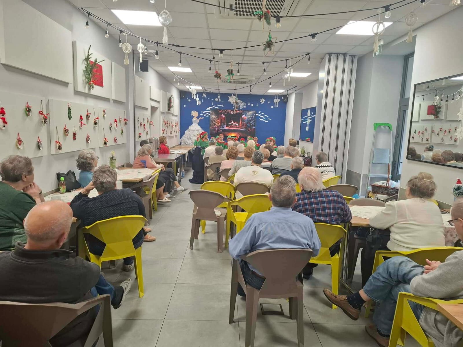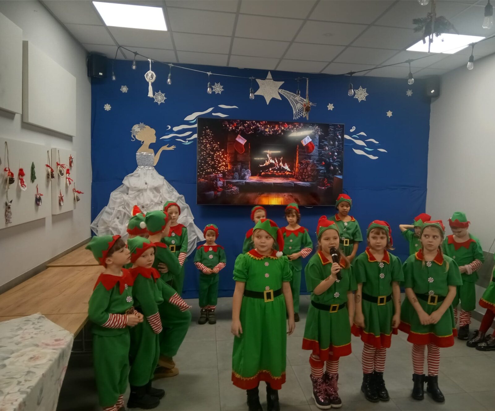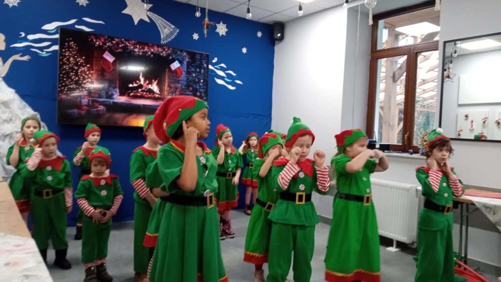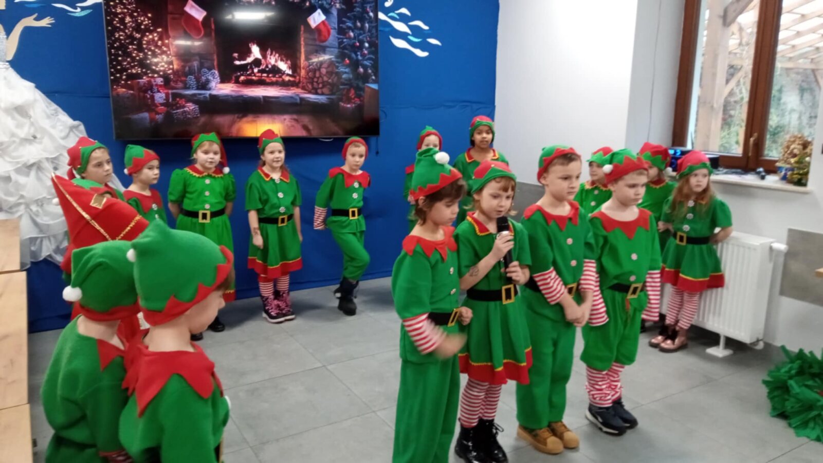 8 grudnia 2025 roku grupa 0 A „Aniołki” z Katolickiego Publicznego Przedszkola „Pod Aniołem Stróżem” odwiedziła z przedstawieniem pt. „W fabryce Świętego Mikołaja” seniorów z Centrum Wsparcia Społecznego we Włocławku. Dzieci ubrane w barwne stroje elfów śpiewały piosenki, tańczyły i recytowały wiersze, tworząc świąteczną atmosferę. Przedstawienie to miało na celu przybliżenie wszystkim zebranym postaci Świętego Mikołaja oraz wprowadzenie w wigilijny i niezastąpiony czas Świąt Bożego Narodzenia. Zarówno Mikołajki jak i Święta Bożego Narodzenia to czas prezentów i niespodzianek, ale również czas pamiętania o innych. Dzieci poprzez to wystąpienie, chciały sprawić wszystkim seniorom odrobinę radości a także podziękować za tak ważną rolę, jaką odgrywają w ich życiu. To był szczególny dzień, dzięki któremu dzieci mogły śmiać się, śpiewać i wspólnie z seniorami tworzyć miłe wspomnienia oraz niezapomniane chwile. Na koniec dzieci złożyły seniorom i pracownikom Centrum Wsparcia serdeczne życzenia świąteczne, po których na dzieci czekała świąteczna herbatka oraz pyszne słodkości.