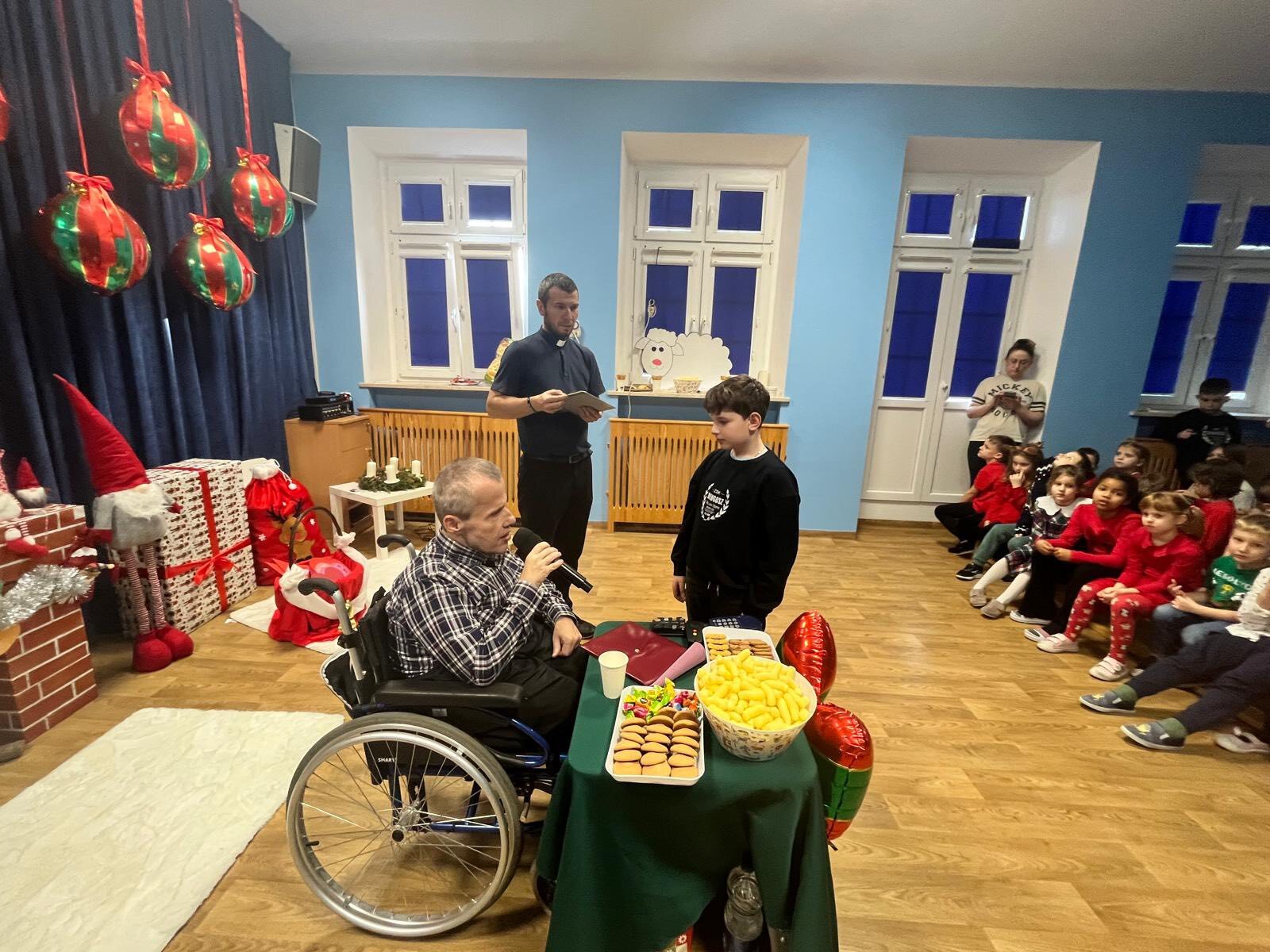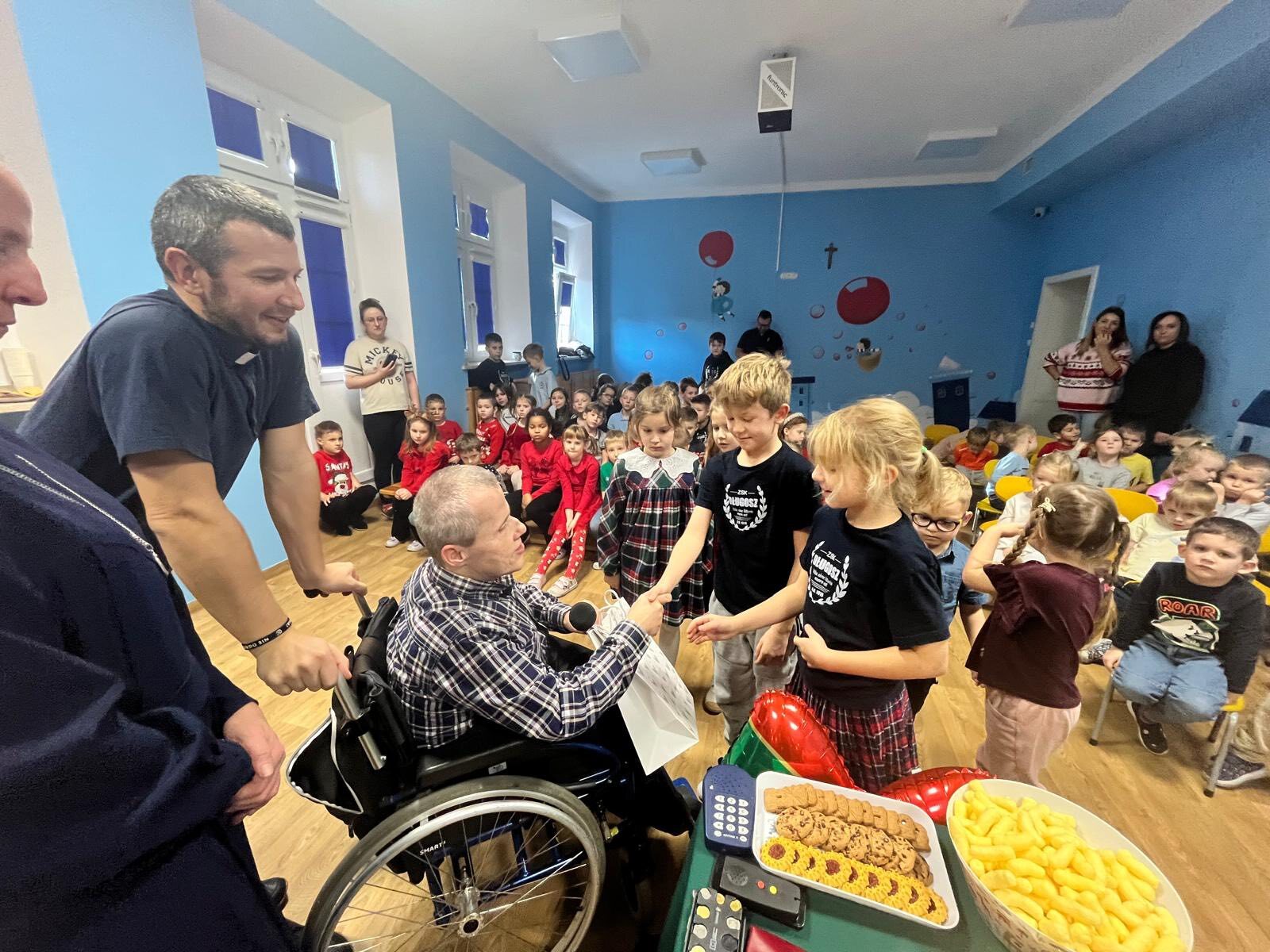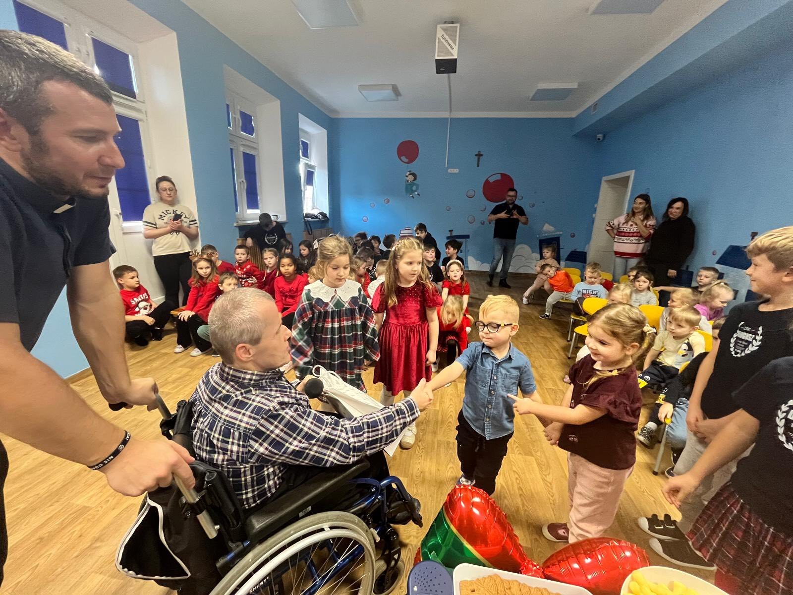 5 grudnia 2025 r. obchodzimy Międzynarodowy Dzień Wolontariusza – święto osób, które bezinteresownie poświęcają swój czas, energię i serce, by pomagać innym. W świetlicy przedszkolnej, 10 grudnia 2025 roku, odwiedził nas wyjątkowy gość. Pan Wiesław Miętkiewicz, człowiek wielkiego serca i empatii, długoletni pielgrzym, od urodzenia niewidomy, który porusza się na wózku inwalidzkim.
