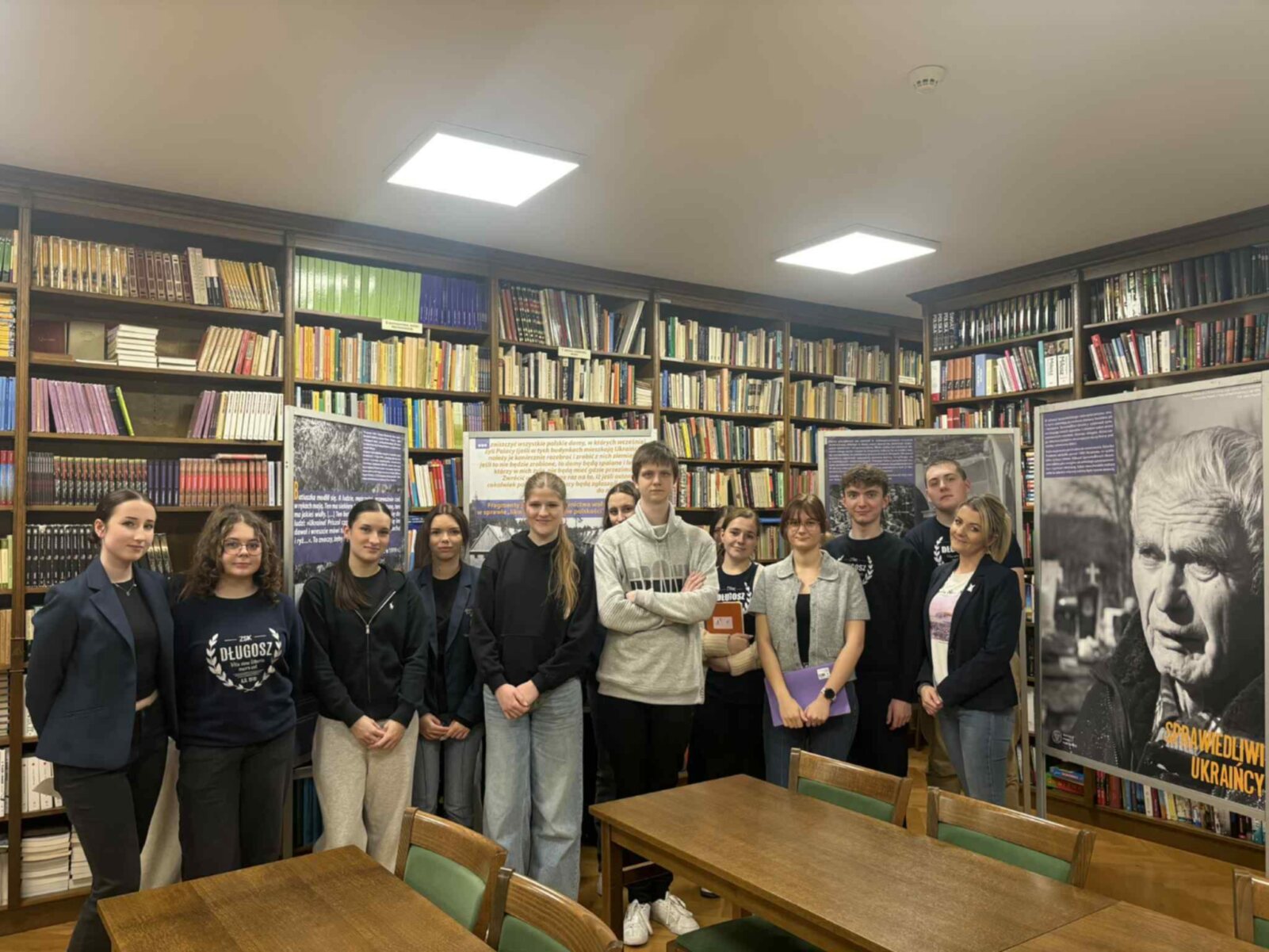 Na szczególne podziękowania zasługuje Pani Lena Chmielewska, za udostępnienie przestrzeni biblioteki na potrzeby wystawy, a także za techniczne i komputerowe opracowanie materiałów dydaktycznych, niezbędnych do przeprowadzenia lekcji historii w tej formie. Jej zaangażowanie i pomoc organizacyjna w znacznym stopniu przyczyniły się do wysokiej wartości edukacyjnej tego wydarzenia.