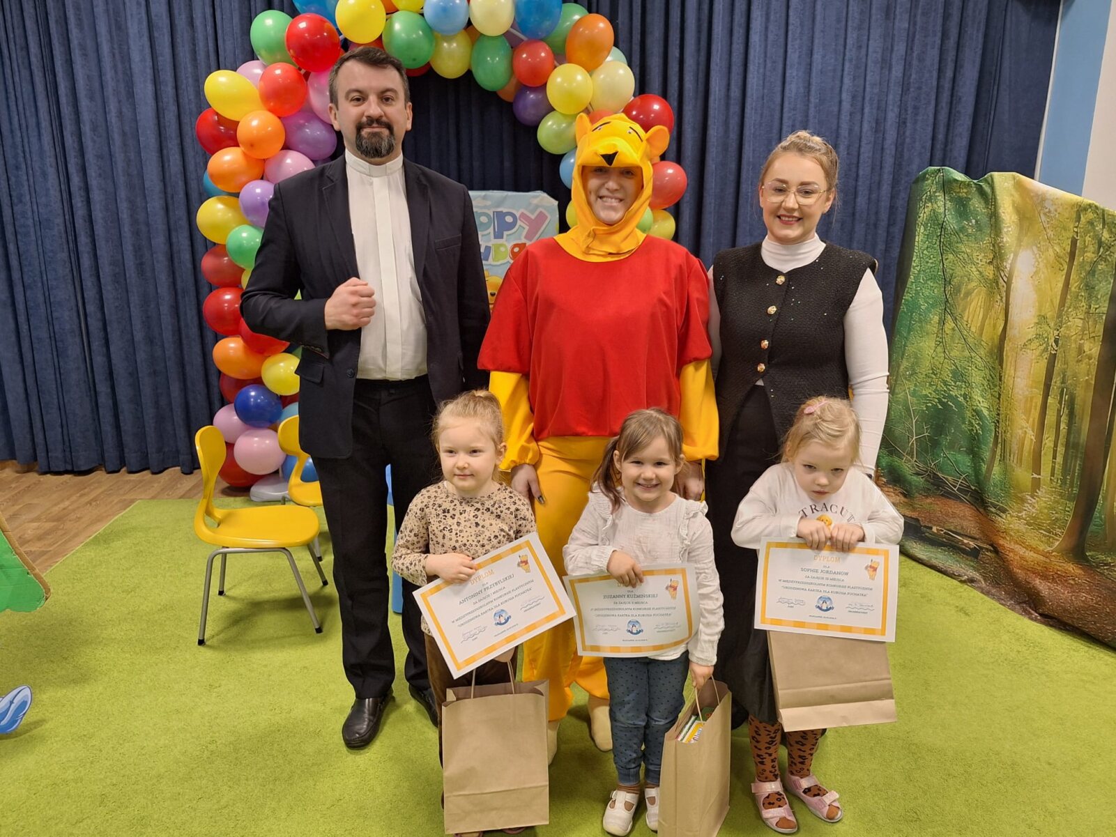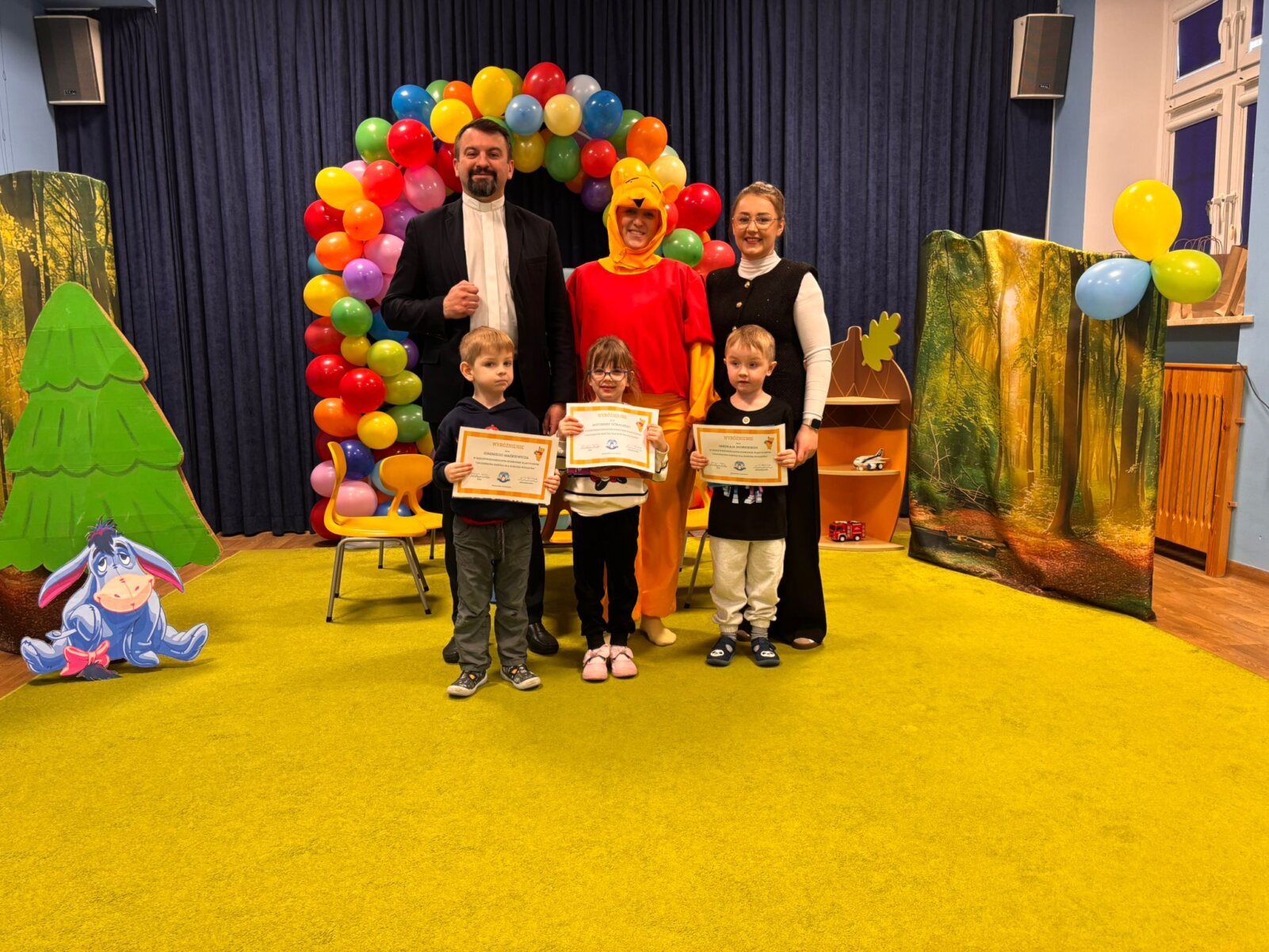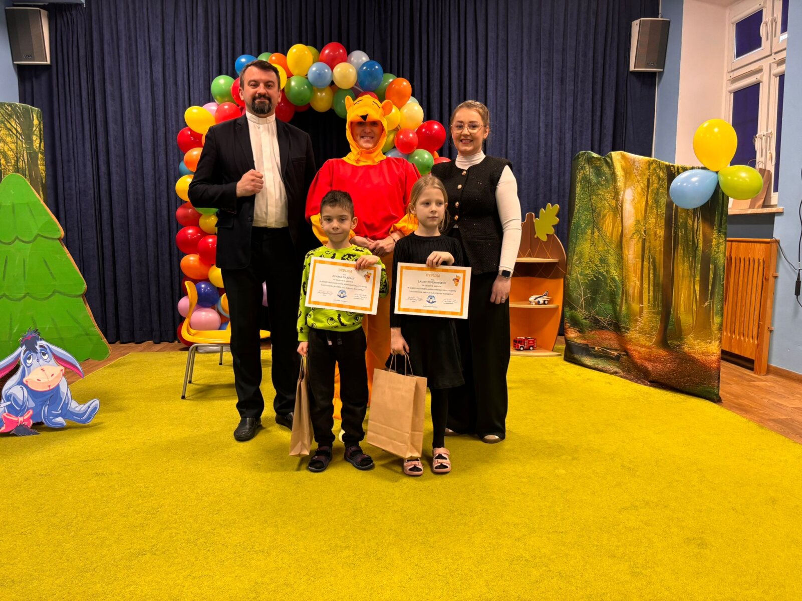 20 stycznia 2026 r. w naszym przedszkolu odbyła się wyjątkowa uroczystość ,wręczenie nagród w Międzyprzedszkolnym Konkursie „Urodzinowa Kartka dla Kubusia Puchatka”. Wydarzenie zostało zorganizowane z okazji Dnia Kubusia Puchatka i było pełne radości, wzruszeń oraz dziecięcej dumy z wykonanych prac. Kolorowe, pomysłowe kartki zachwyciły swoją starannością i kreatywnością, a mali artyści pokazali ogromne serce włożone w swoje dzieła.
