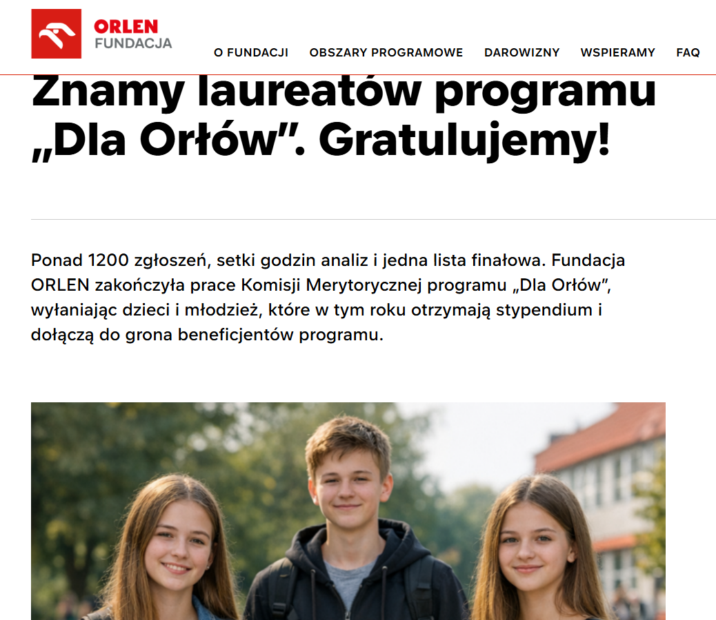 Miło nam poinformować, iż Kornelia Głąbicka, uczennica klasy 2ab LO, została po raz kolejny stypendystką Fundacji Orlen w ramach programu Dla Orłów.
