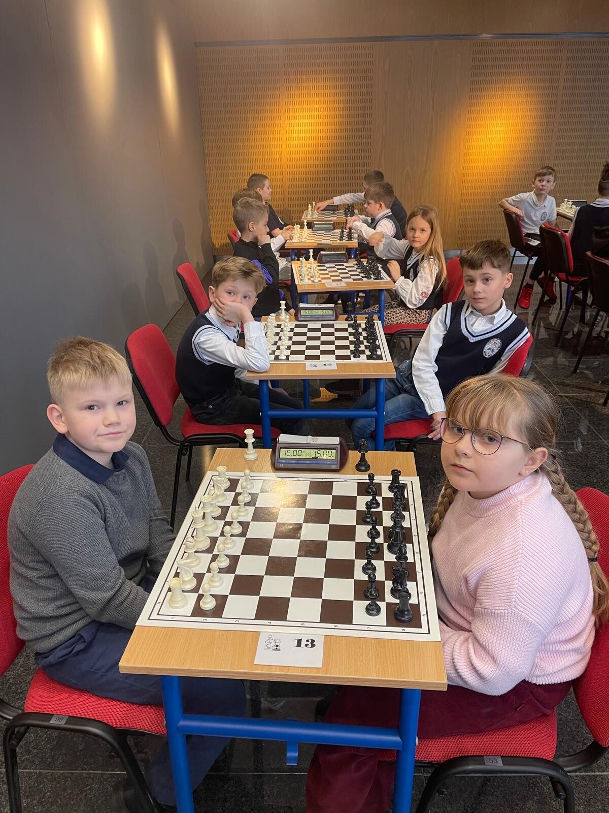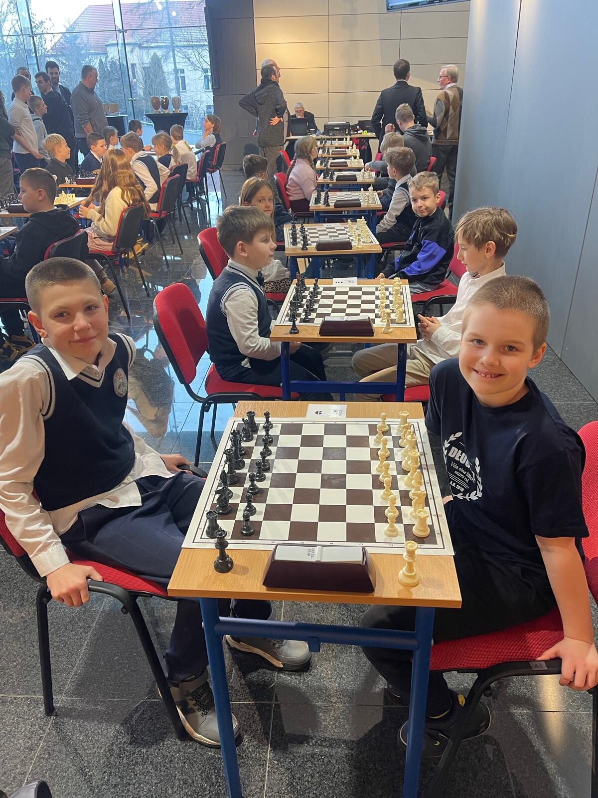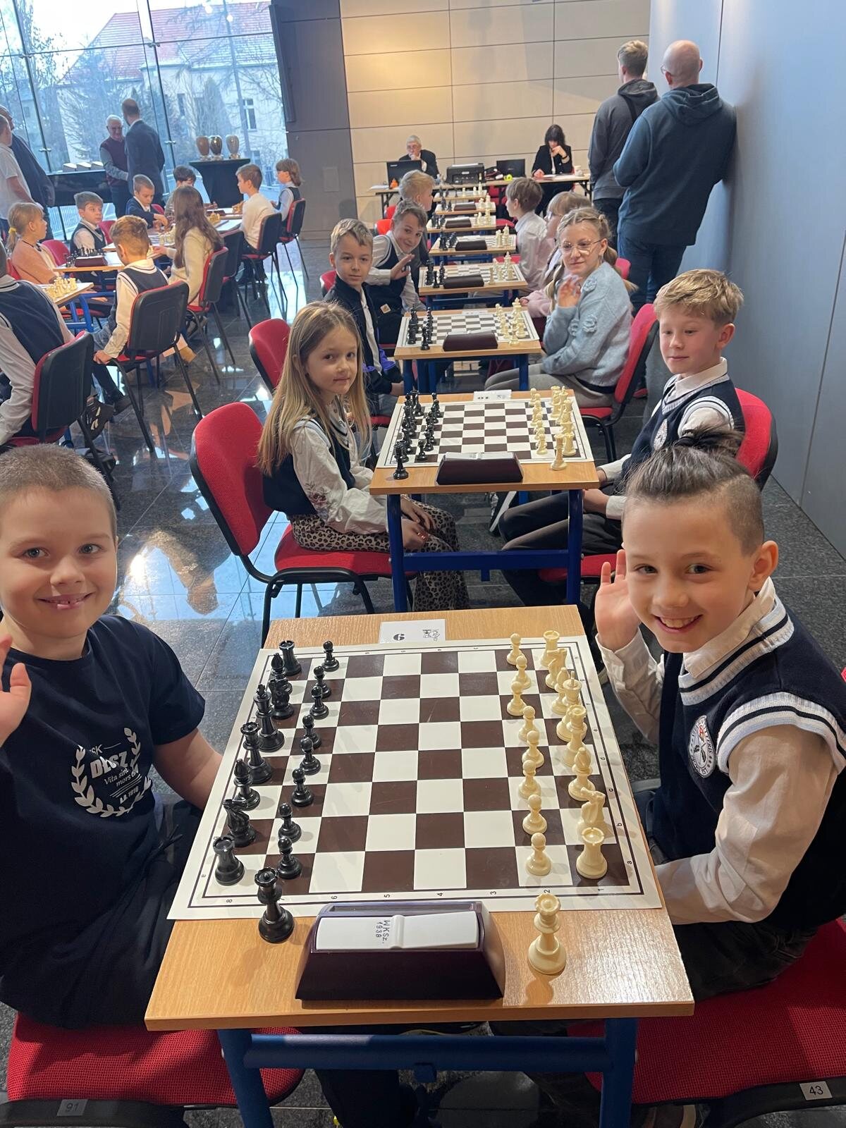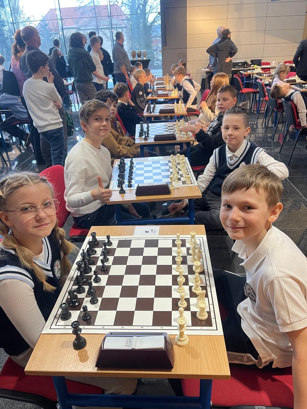 W zawodach wzięła udział liczna, 20-osobowa reprezentacja uczniów klas 1–4 z naszej szkoły. Na szczególną uwagę zasługuje obecność rodzinnych drużyn – rodzeństwa Klary (kl. 1a) i Franciszka (kl. 3b) Pawłowskich oraz Igora (kl. 1b) i Stanisława (kl. 3c) Wilińskich. Los sprawił, że bracia i siostry mieli okazję rozegrać między sobą bezpośrednie partie turniejowe.