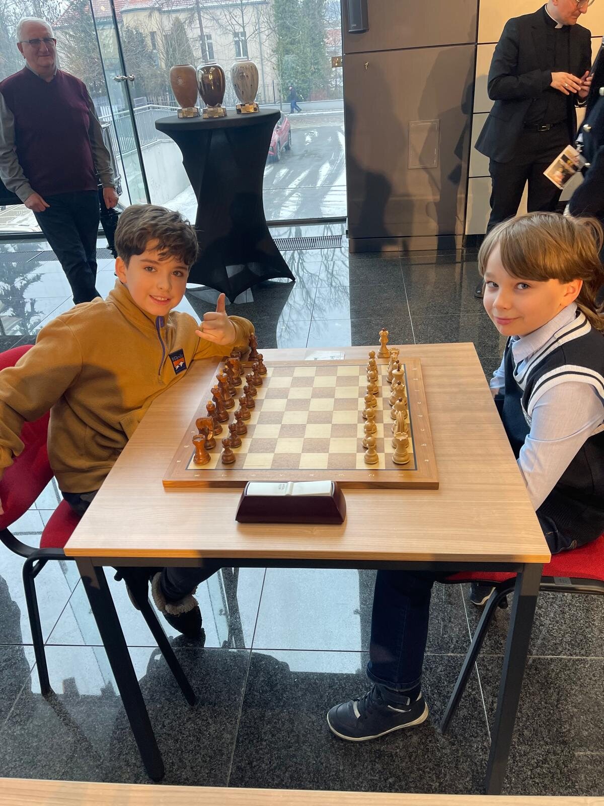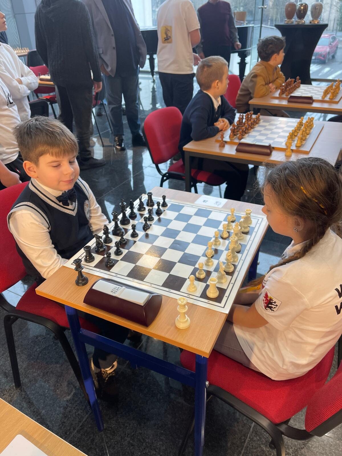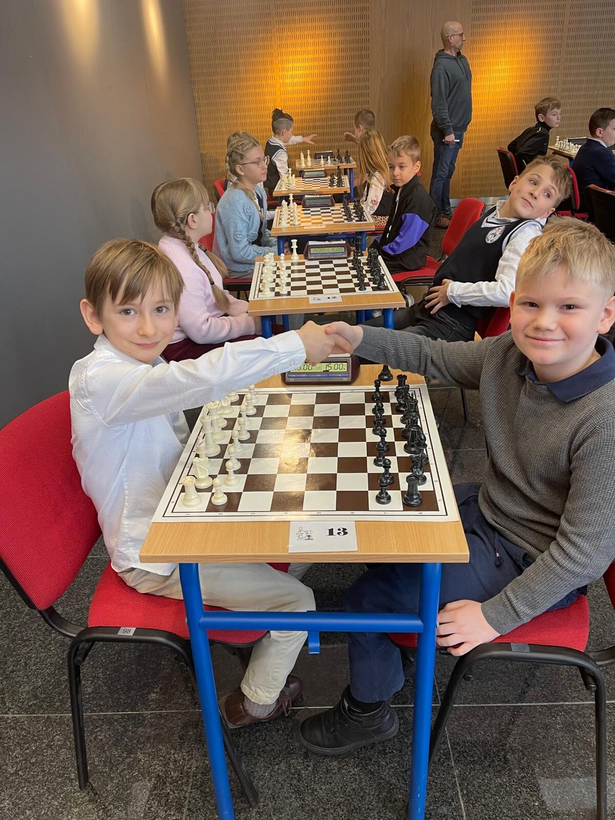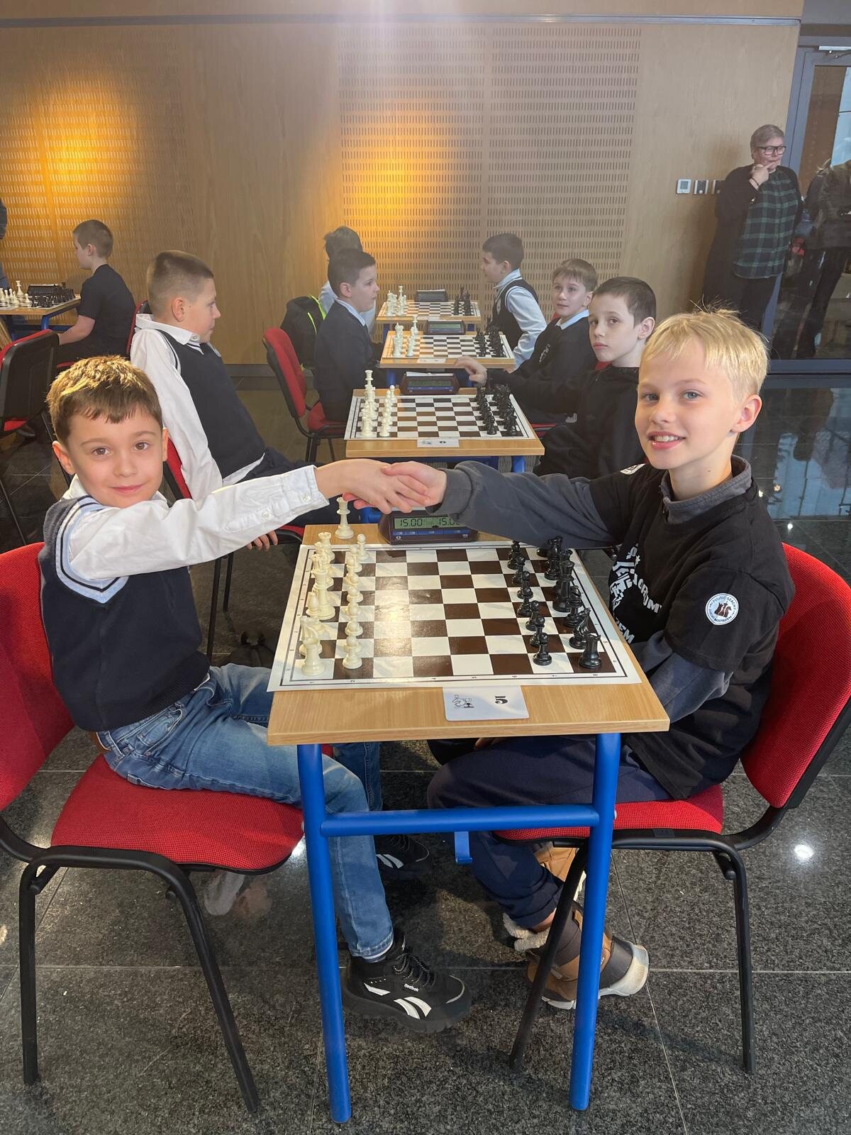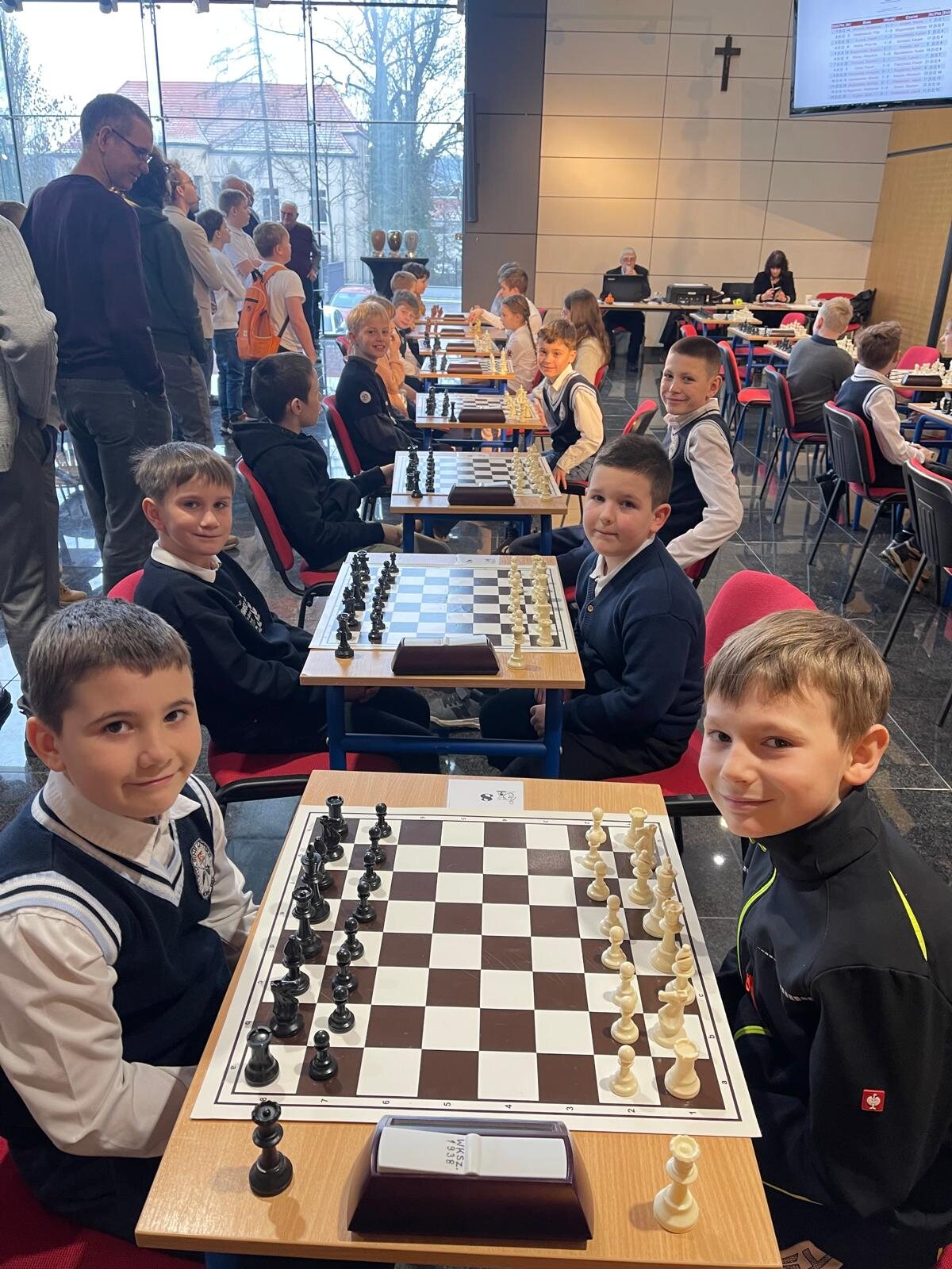 W zawodach wzięła udział liczna, 20-osobowa reprezentacja uczniów klas 1–4 z naszej szkoły. Na szczególną uwagę zasługuje obecność rodzinnych drużyn – rodzeństwa Klary (kl. 1a) i Franciszka (kl. 3b) Pawłowskich oraz Igora (kl. 1b) i Stanisława (kl. 3c) Wilińskich. Los sprawił, że bracia i siostry mieli okazję rozegrać między sobą bezpośrednie partie turniejowe.