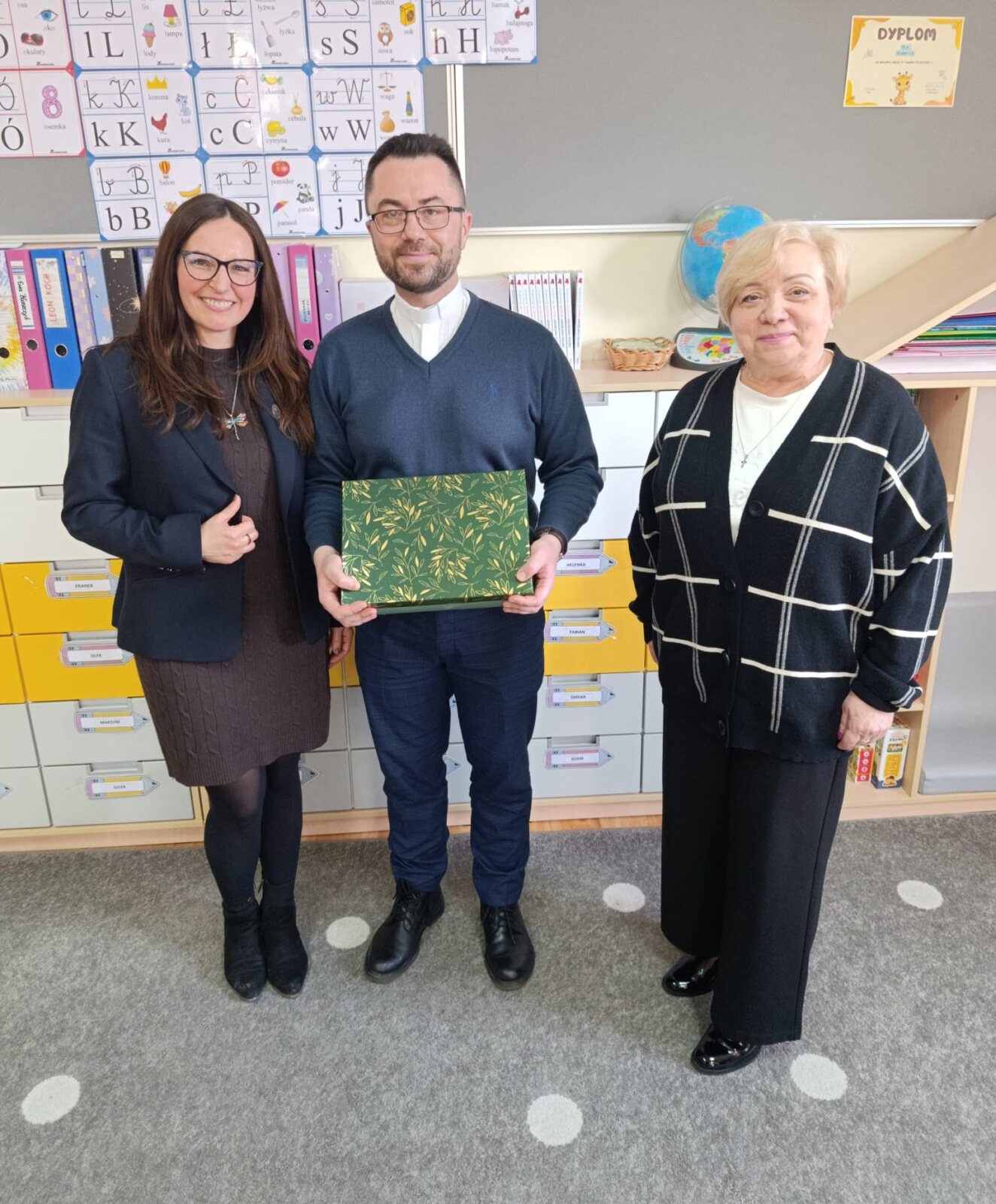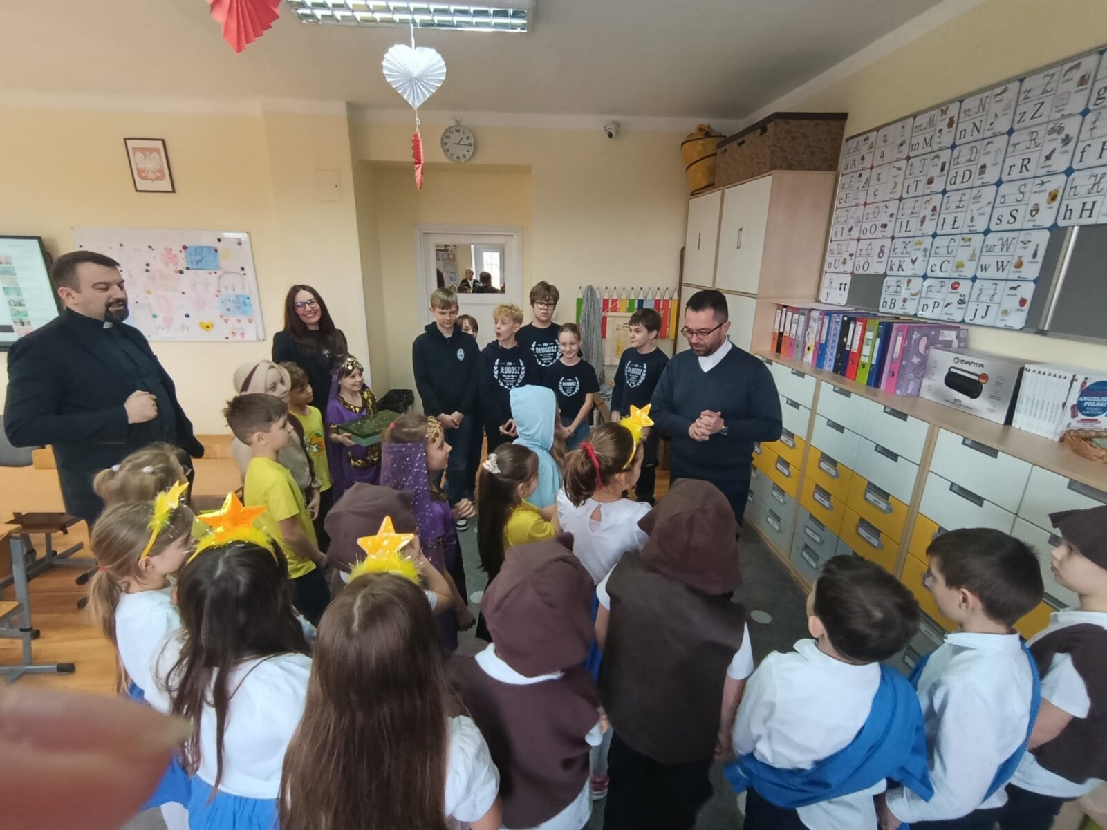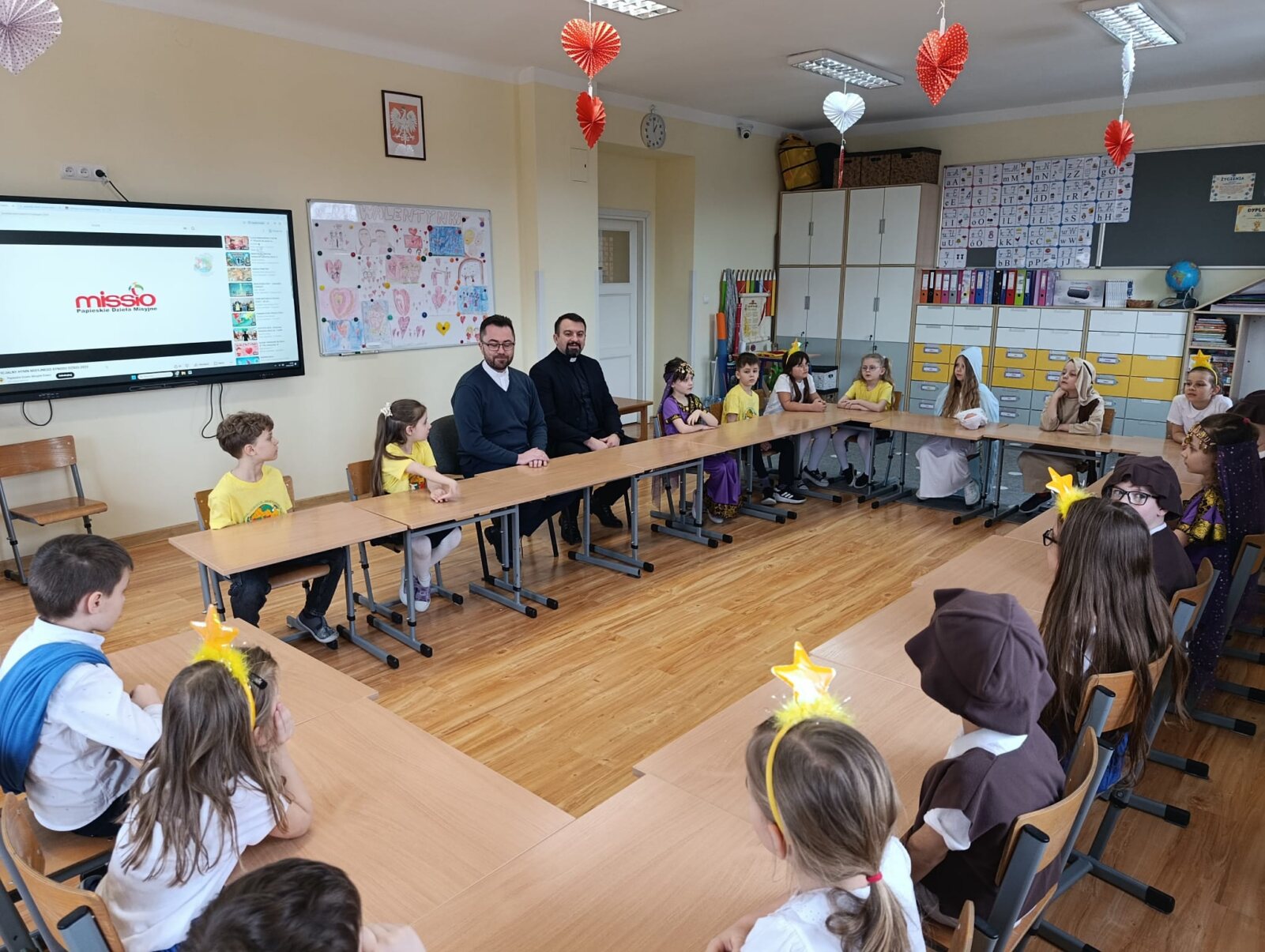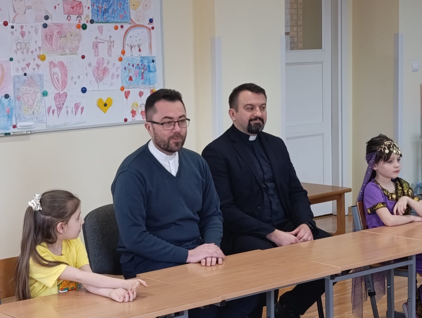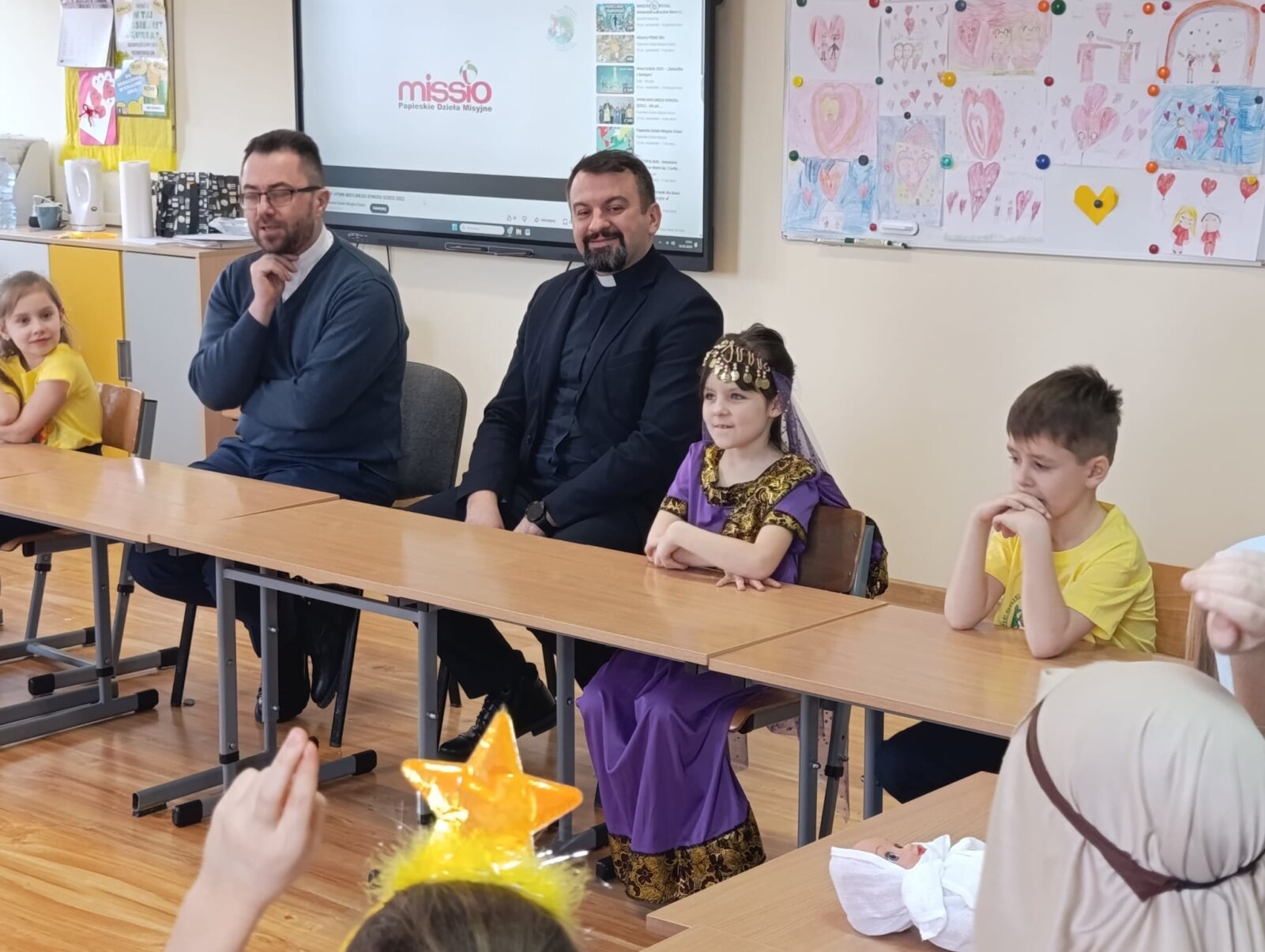 Ksiądz Maciej spotkał się z naszym księdzem wicedyrektorem Sebastianem Tomczakiem, który pełni również funkcję dyrektora Papieskich Dzieł Misyjnych w diecezji włocławskiej oraz z uczniami klasy 1a oraz 4a, którzy należą do koła misyjnego.