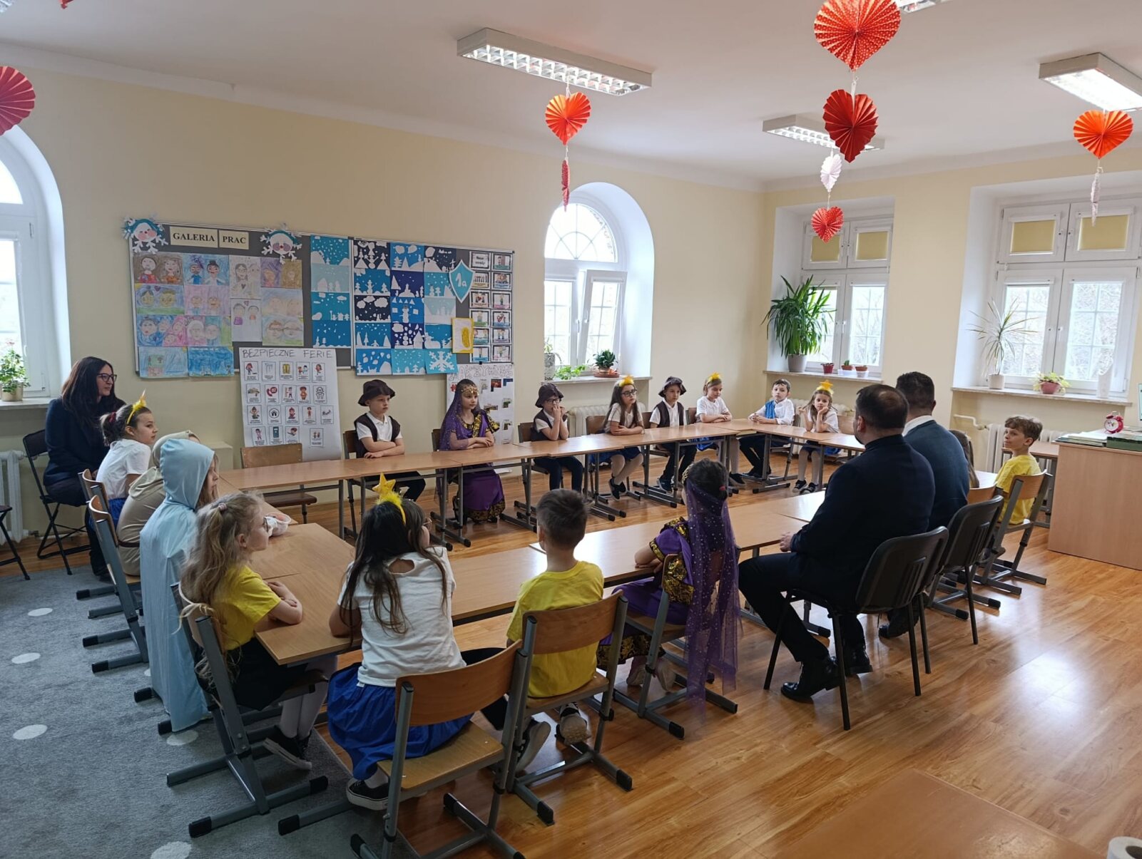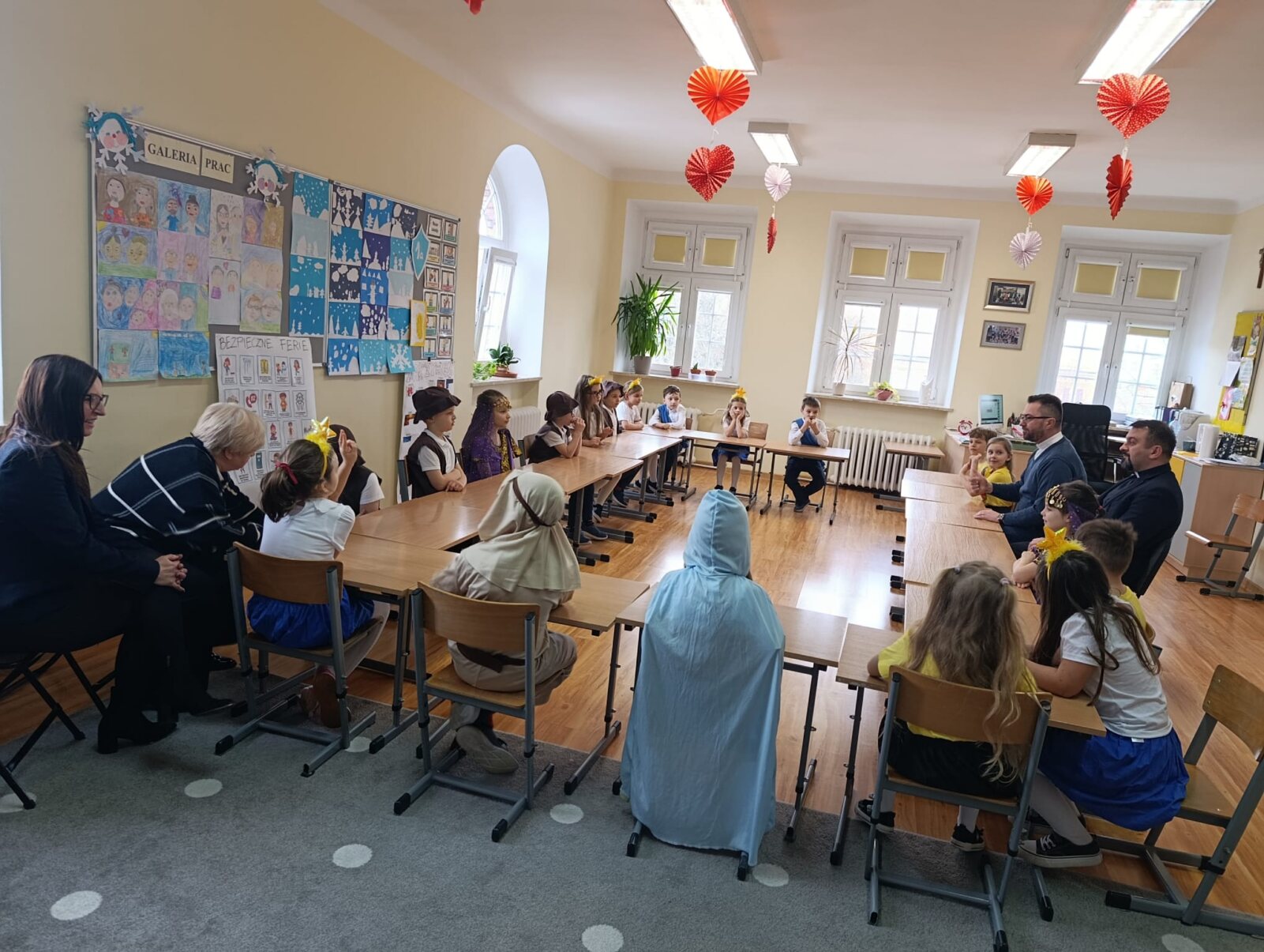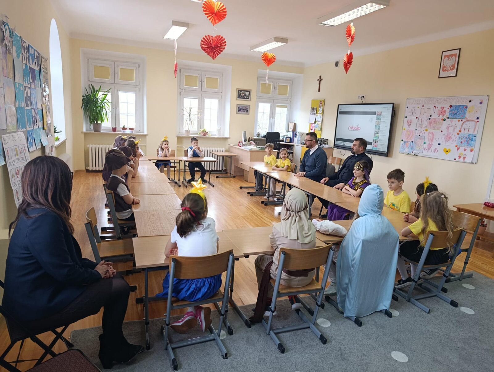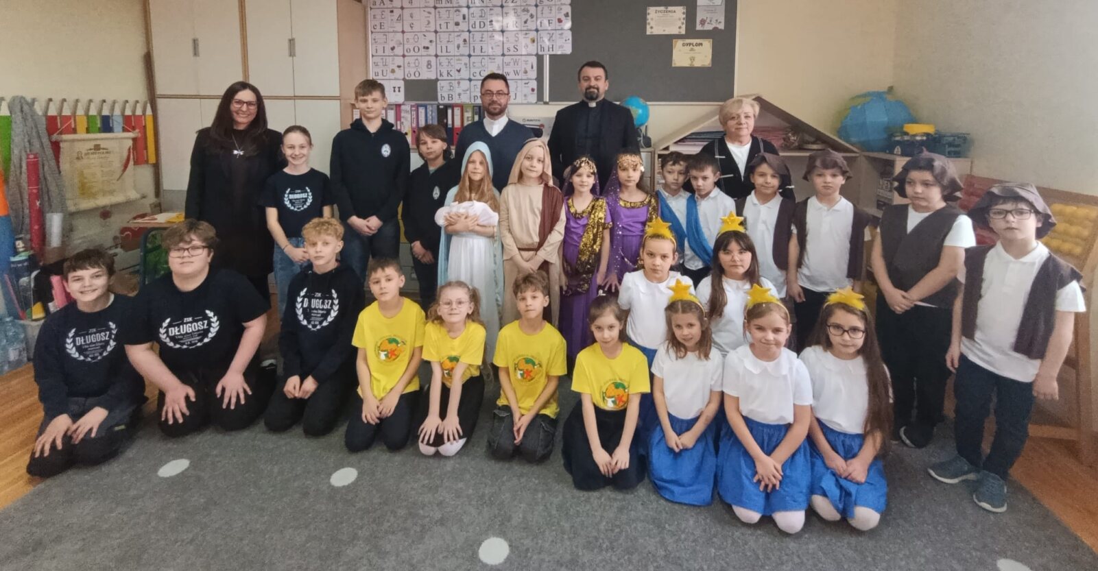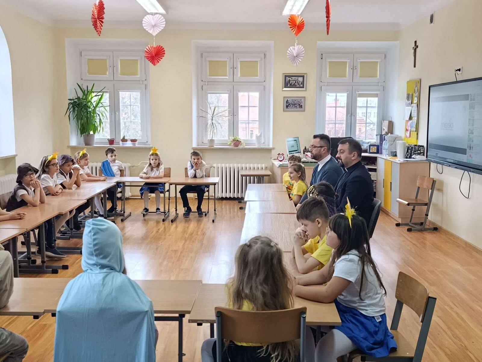 Dyrektor krajowy PDM wyraził wdzięczność za trud, który podejmują dzieci, radość, że włączają się w dzieła misyjne. Uczniowie chętnie odpowiadali na zadane pytania, dzielili się wrażeniami z tegorocznego kolędowania. Podczas spotkania Mali Długoszacy wspólnie zaśpiewali Hymn Synodu Dzieci „Z Ojcem Świętym budzimy do misji”. Wspominaliśmy również nasze niezwykłe spotkania, zarówno w Belwederze u Pierwszej Damy Agaty Kornhauser-Dudy oraz u Nuncjusza Apostolskiego, u których w ubiegłych latach gościliśmy na zaproszenie właśnie księdza Macieja Będzińskiego. Przedstawiciele koła misyjnego wręczyli przygotowany wcześniej prezent. Na koniec spotkania wykonane zostały zdjęcia, które będą pamiątką z tego wyjątkowego spotkania.