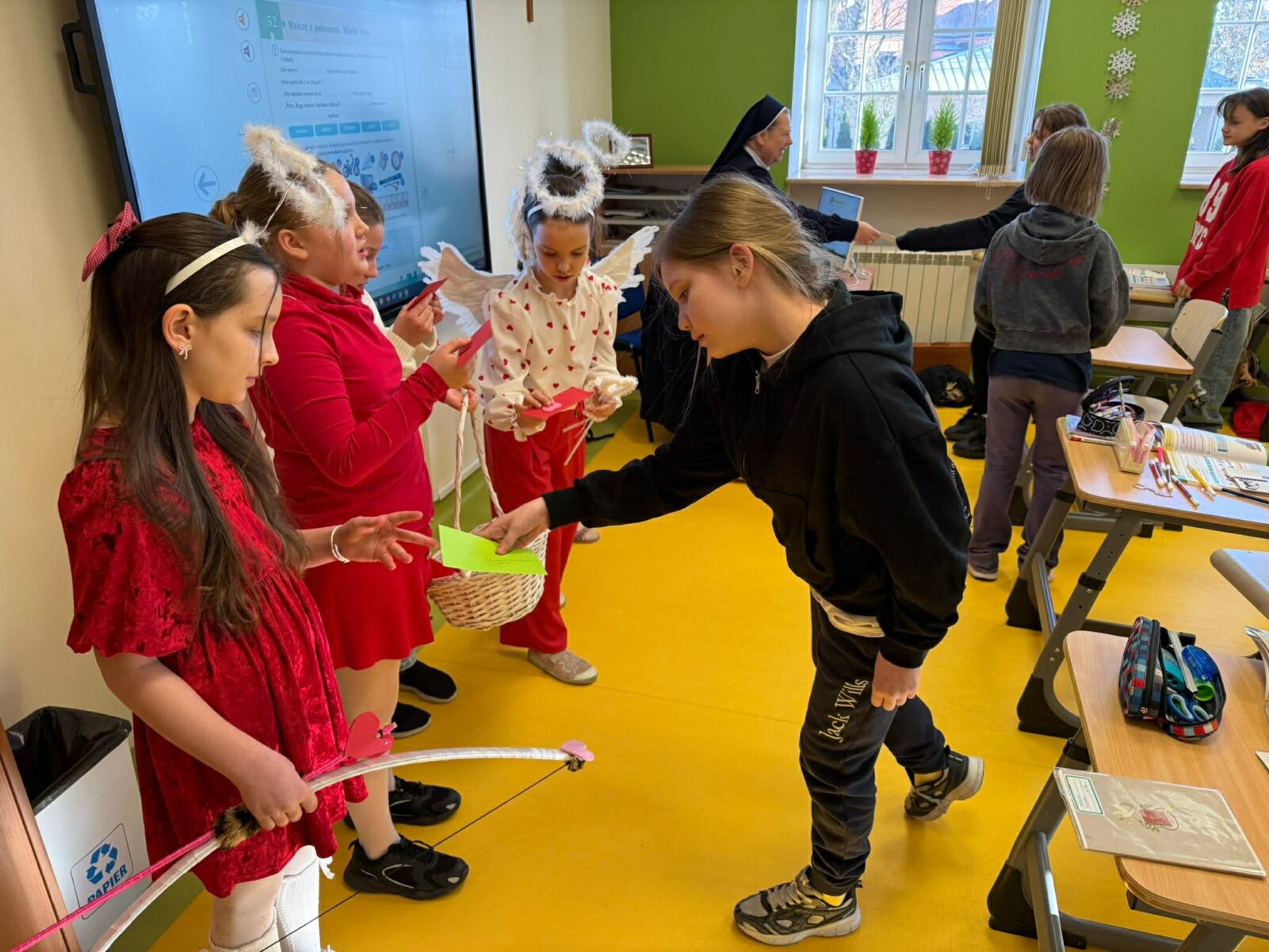 Szkolne Amorki miały pełne ręce pracy, dostarczając dziesiątki kartek, liścików i dowodów sympatii. Co najważniejsze, w tym roku świętowaliśmy wspólnie jako cała społeczność. Uczniowie wymieniali się dowodami koleżeństwa i przyjaźni, nauczyciele otrzymali mnóstwo ciepłych słów wdzięczności za swoją cierpliwość, pasję i uśmiech. Natomiast Pracownicy administracji i obsługi zostali obdarowani życzliwymi życzeniami, które przypominają, jak ważna jest ich codzienna praca dla funkcjonowania naszej szkoły. Dziękujemy wszystkim za włączenie się do zabawy! To był idealny start nowego semestru – pełen dobrych słów i wzajemnej życzliwości, którą postaramy się zachować nie tylko od święta, ale przez cały rok szkolny.