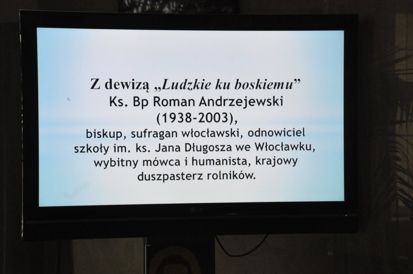 W holu naszej szkoły prezentujemy wystawę poświęconą ks. bp. Romanowi Andrzejewskiemu — odnowicielowi „Długosza” w 2000 r., w 25. rocznicę reaktywacji szkoły, biskupowi sufraganowi, synowi ziemi kujawskiej, znawcy literatury antycznej. Jego życie i działalność są przykładem niezłomnej wiary, głębokiej mądrości oraz nieustannego poświęcenia dla dobra wspólnoty.