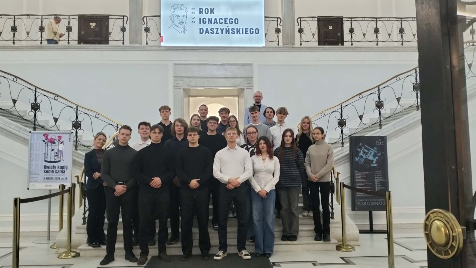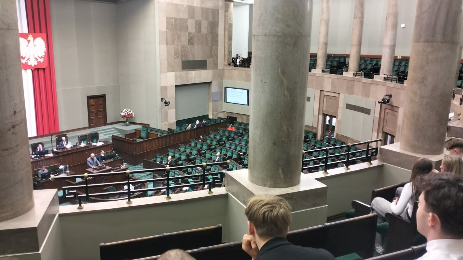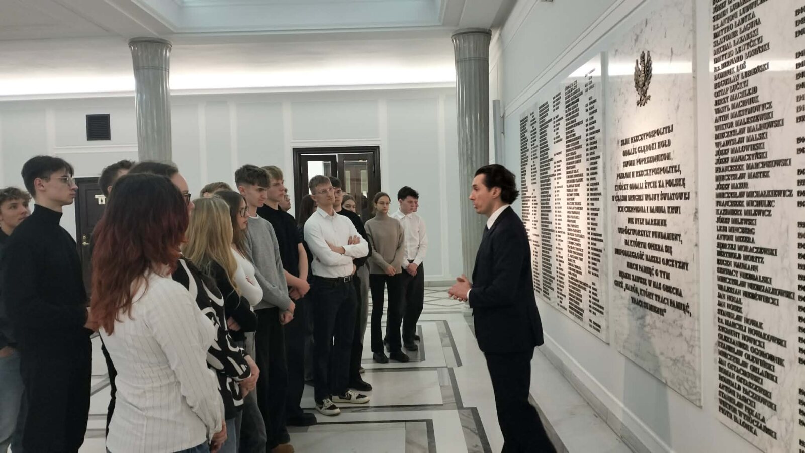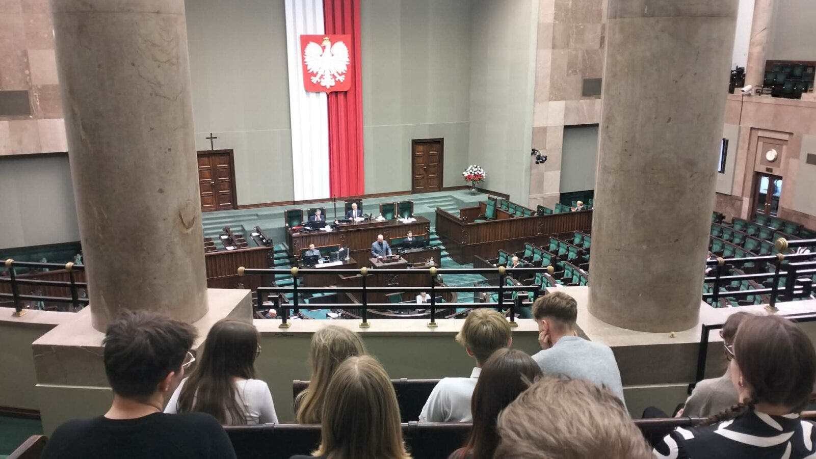 Drugą częścią wyjazdu była wizyta przy ulicy Wiejskiej w gmachu Sejm Rzeczypospolitej Polskiej. Podczas zwiedzania uczniowie poznali historię polskiego parlamentaryzmu, dowiedzieli się, na czym polega praca posłów oraz jak przebiega proces legislacyjny. Mieli także okazję zobaczyć salę obrad i z bliska przyjrzeć się miejscu, w którym zapadają najważniejsze decyzje dotyczące państwa.