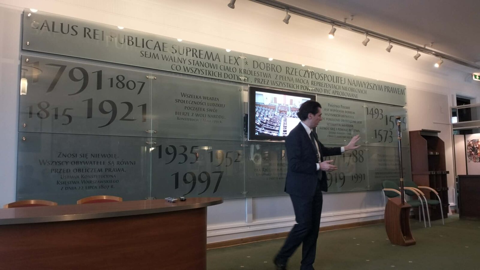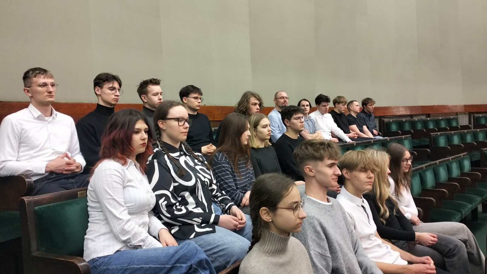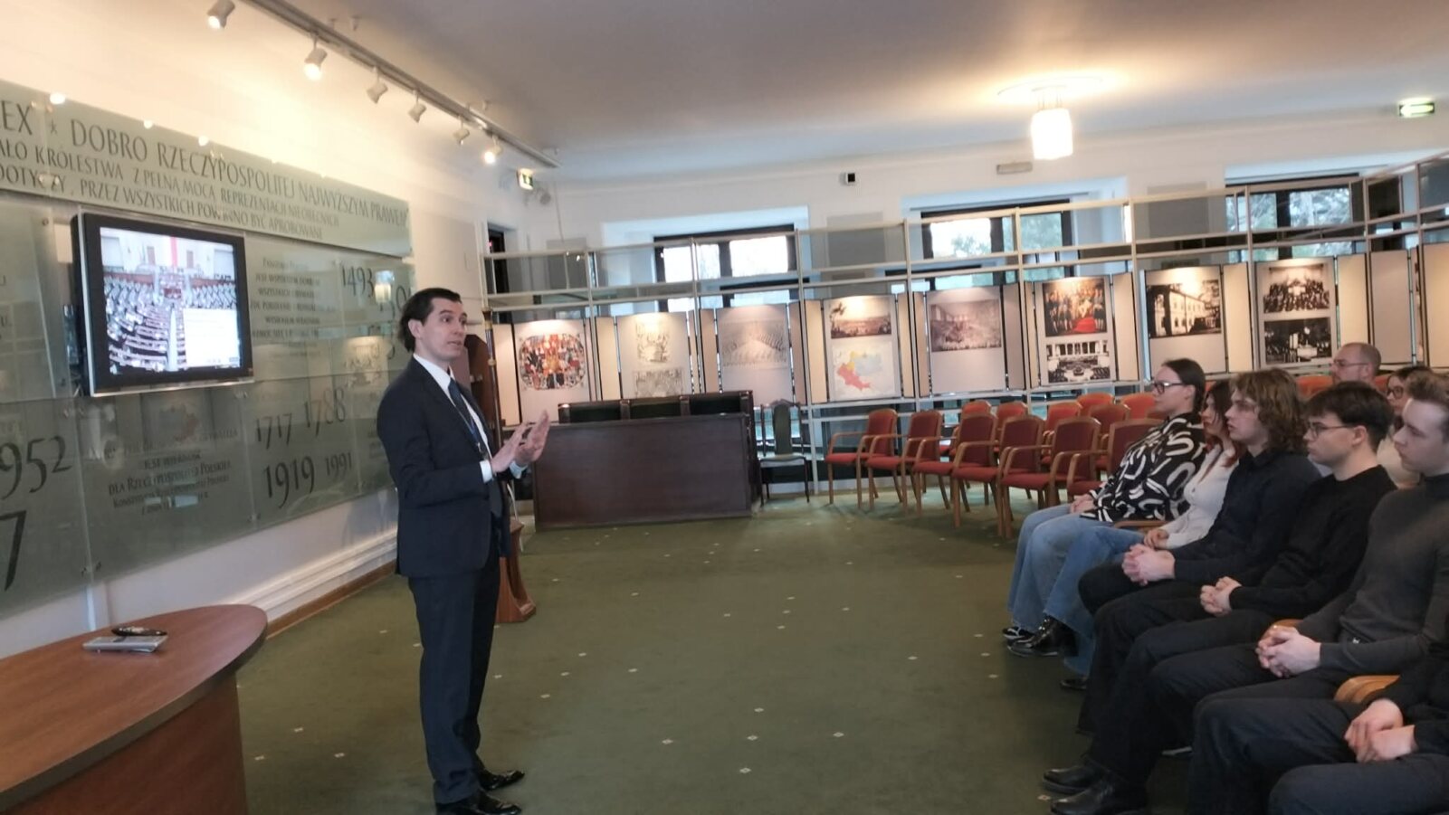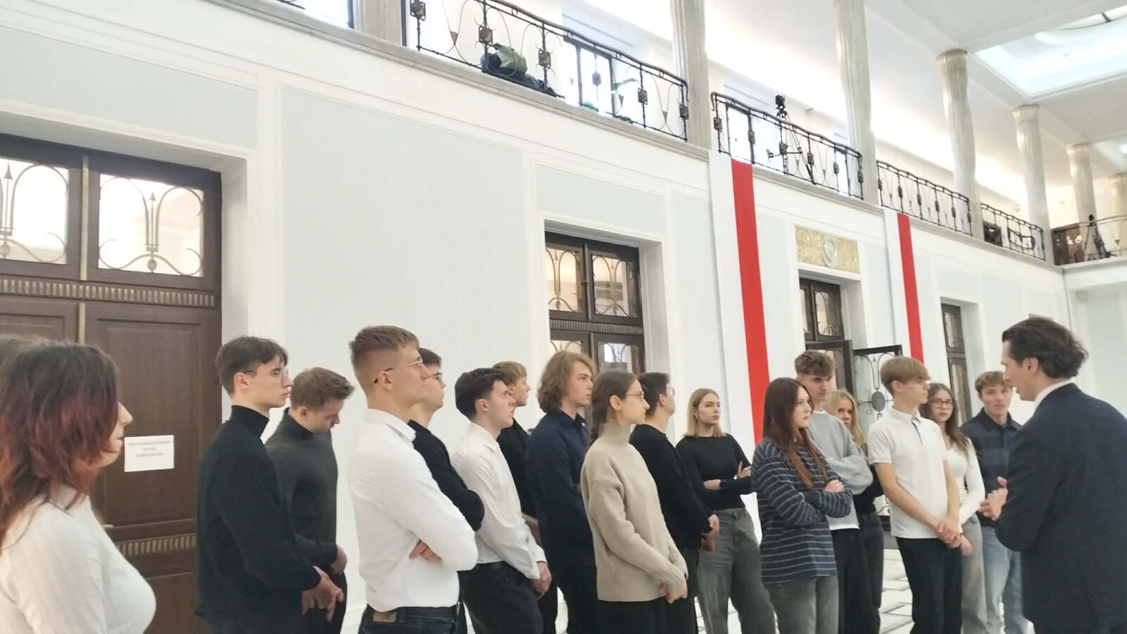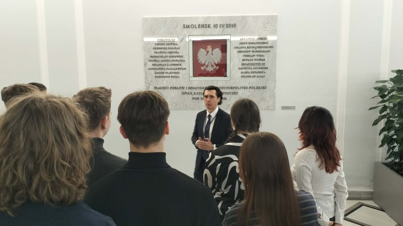 Drugą częścią wyjazdu była wizyta przy ulicy Wiejskiej w gmachu Sejm Rzeczypospolitej Polskiej. Podczas zwiedzania uczniowie poznali historię polskiego parlamentaryzmu, dowiedzieli się, na czym polega praca posłów oraz jak przebiega proces legislacyjny. Mieli także okazję zobaczyć salę obrad i z bliska przyjrzeć się miejscu, w którym zapadają najważniejsze decyzje dotyczące państwa.